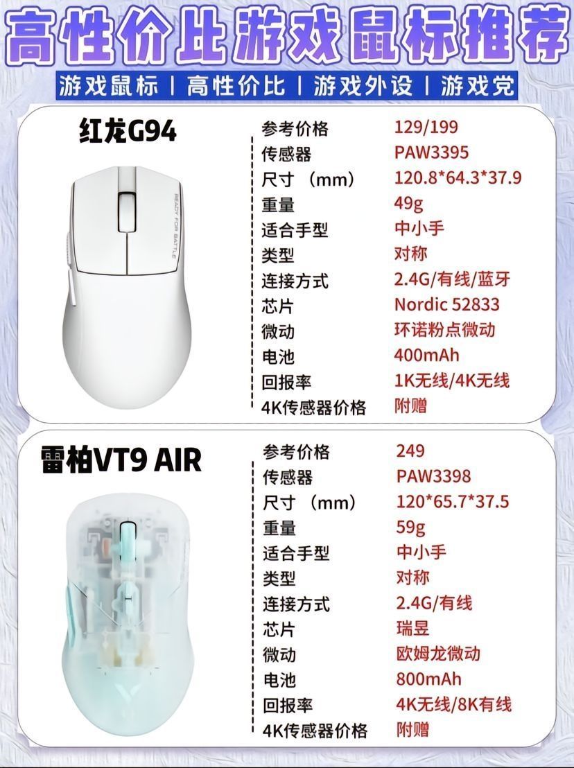 🖱️高性价比游戏鼠标选购清单🧾。本期从价格以及大小手使用的尺寸,还有其他方面做了非常详细的对比🆚!有需要的小伙伴【自行收藏】