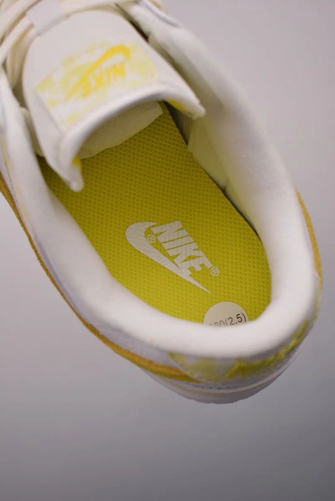 最近太爱这双柠檬味的dunk了 独特的拼接水洗色套染皮革Swoosh,是采用的绒面皮革打造的,后跟的绣标也是保留刺绣工艺,很特别的是鞋带在阳光下看也跟鞋子一样呈现黄白混色的效果,细节加分了不少,看起来是很夏天的配色,个人觉得一年四季都很百搭!