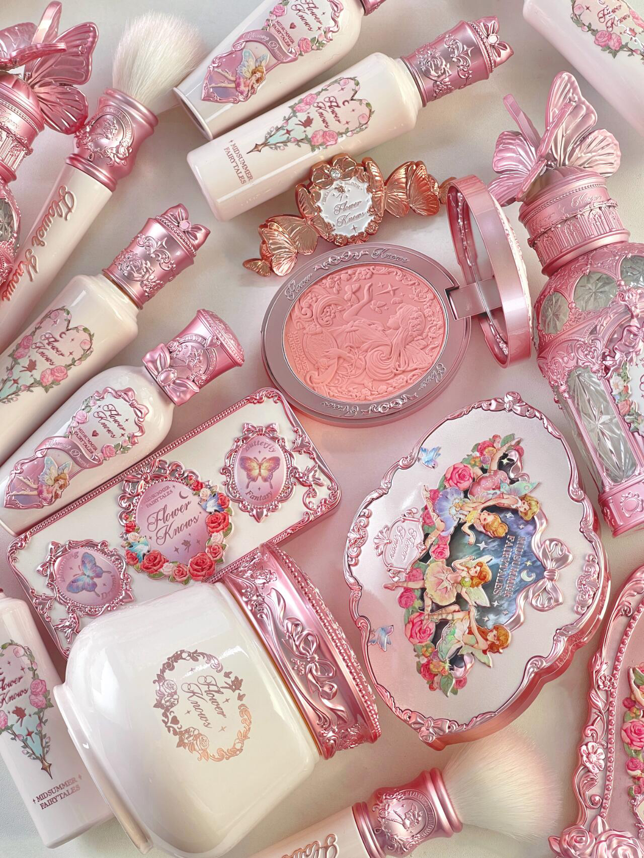 花知晓真的太会做包装啦!!! 里面有两只口红 一个散粉 一盘腮红 一盘眼影 一个液体眼影 还有镜子 小粉扑 发夹 很全套 又能用好久了 - 🦋仲夏夜系列成膜唇蜜 仲夏夜系列羊绒浮雕腮红 仲夏夜系列浮雕五色眼影盘 仲夏夜系列眉粉 仲夏夜系列提亮遮瑕液 仲夏夜系列卸妆膏 仲夏夜系列香水 仲夏夜系列手拿镜、气垫梳、腮红刷、发夹等各色精致周边! 拿到手真的很有质感,沉甸甸陶瓷瓶质感! 而且这次不光有颜 ...
