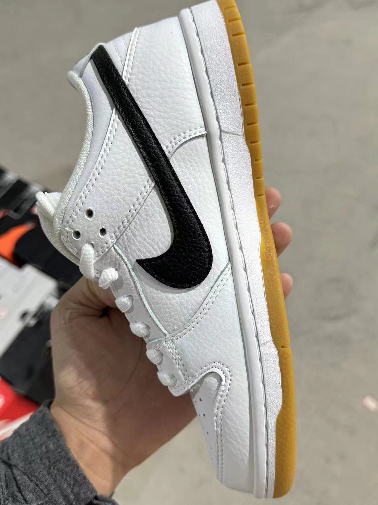 哈喽各位小伙伴,今天我要给大家分享一款潮级好看的小白鞋--Dunk SB白生胶!这款鞋子简直就是穿搭神鞋啊!全鞋身采 用头层牛皮、织物和橡胶材质,让整体质感提升了不少,皮质柔软细腻,两侧勾子为黑色牛皮革。留白中低加上浅棕色生胶大底,比之前的白生胶还要好看呢!鞋身以大面积白色为主,给人一种非常干净清爽简约的感觉。两侧勾子为黑色搭配,鞋舌以及后跟同样用黑色刺绣logo点缀,让整体配色不那么单调。尺码建...