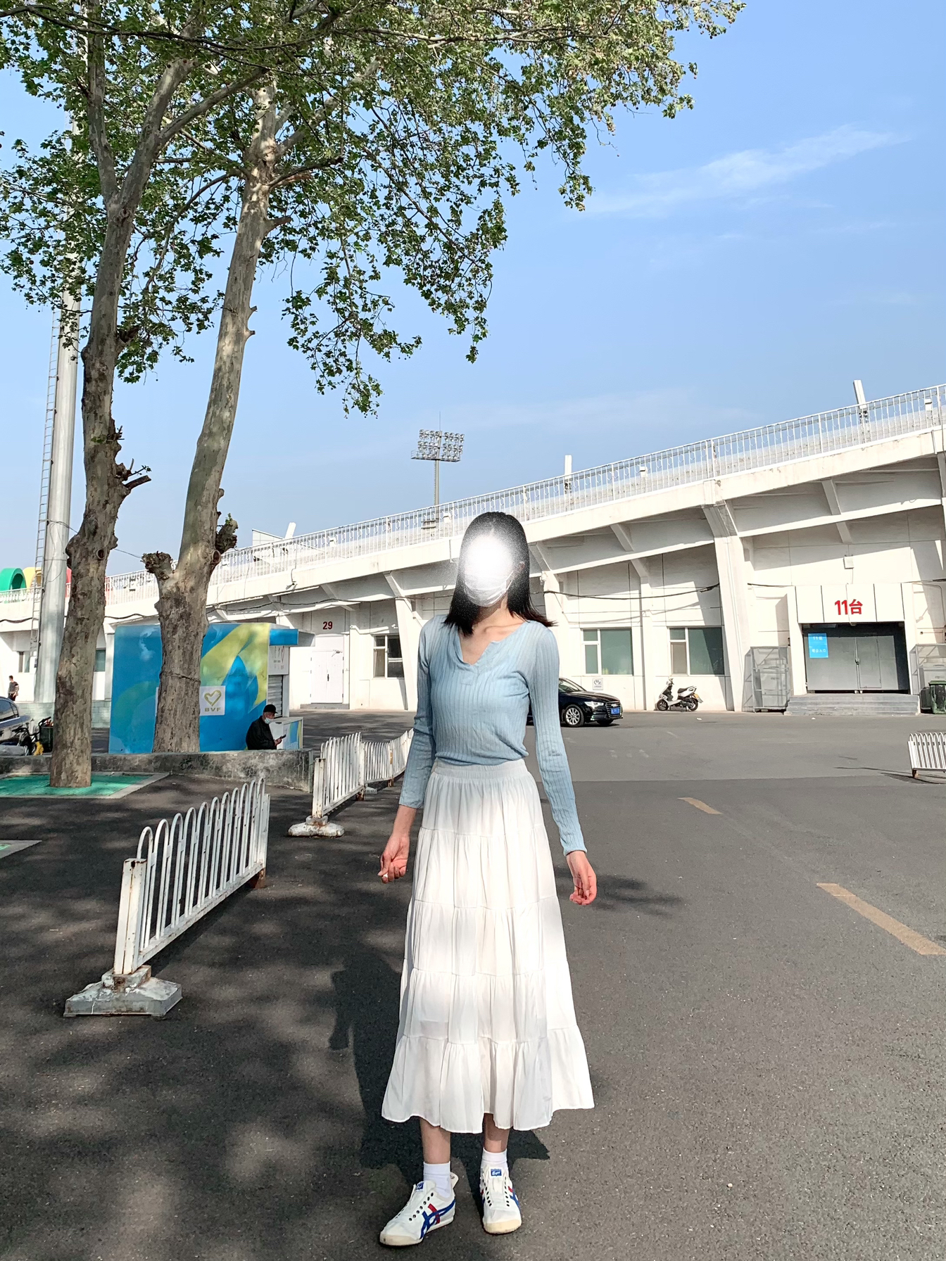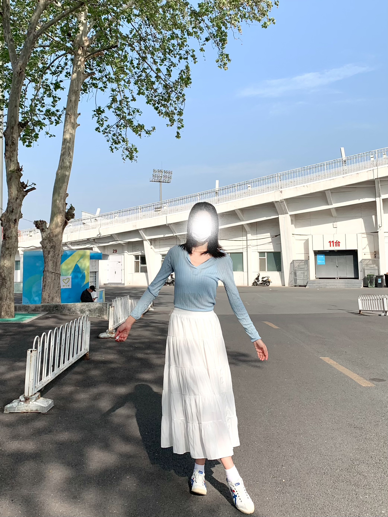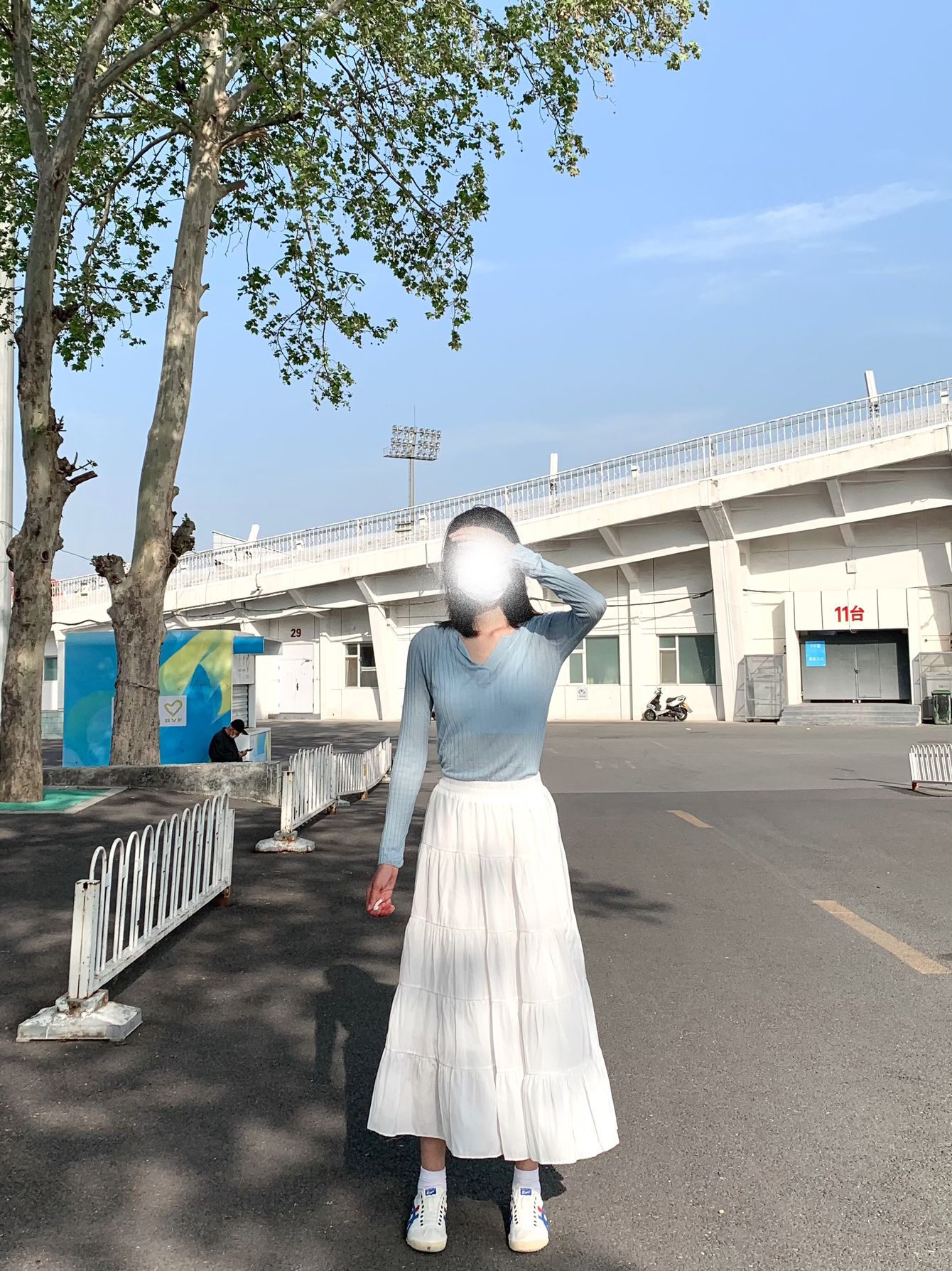 hi~这里是高高的穿搭分享📸 好喜欢出门拍照 今天没那么热🔥 火速出门 👕薄薄的蓝色长袖 像罩衫的感觉 👗搭配百搭的白色半身裙 滑滑的 穿着很舒服☁️ 里面有一层内衬 不会透 洗过也没有起皱缩水 姐妹们真的不妨试试这件 这一身好温柔