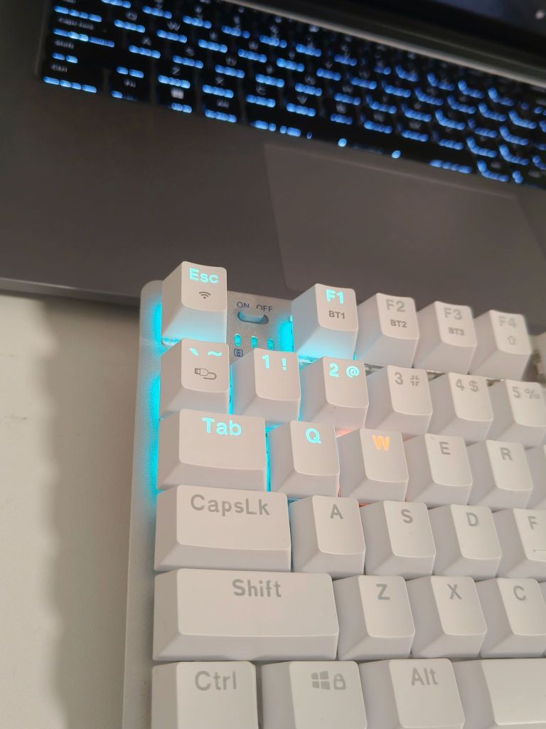我虽然不玩游戏 但是办公打字这块 有一个好的键盘真的也很舒服呀 这款#狼蛛 AULA 87键的键盘是我朋友推荐的 他买的这家的游戏键盘 质感更好 敲击真的很带感 当然价格也更贵 我个人办公用的话 87键更全,更符合办公打字的习惯,而且这款性价比更高呀 相比起来更适合我 这是三模的,一次可以连三个设备 平常可以手机平板电脑一起用,不用转来转去确实很方便 而且灯光好丰富啊 我还没完全摸索完,可以慢慢探...
