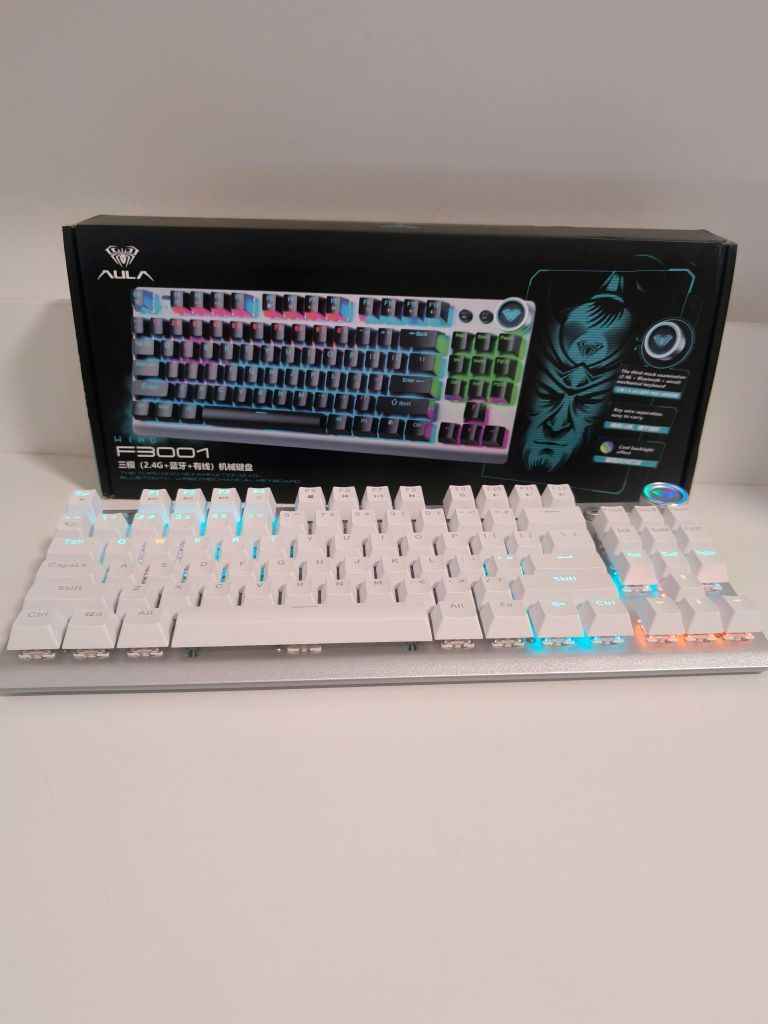 本篇笔记关联了AULA/狼蛛 F3001 三模 机械键盘 87键 旋钮 红茶轴 打字 下灯位 键线分离 炫彩灯效 背光 长续航 蓝牙 银白 游戏等商品,为用户提供真实的使用体验和购买参考。