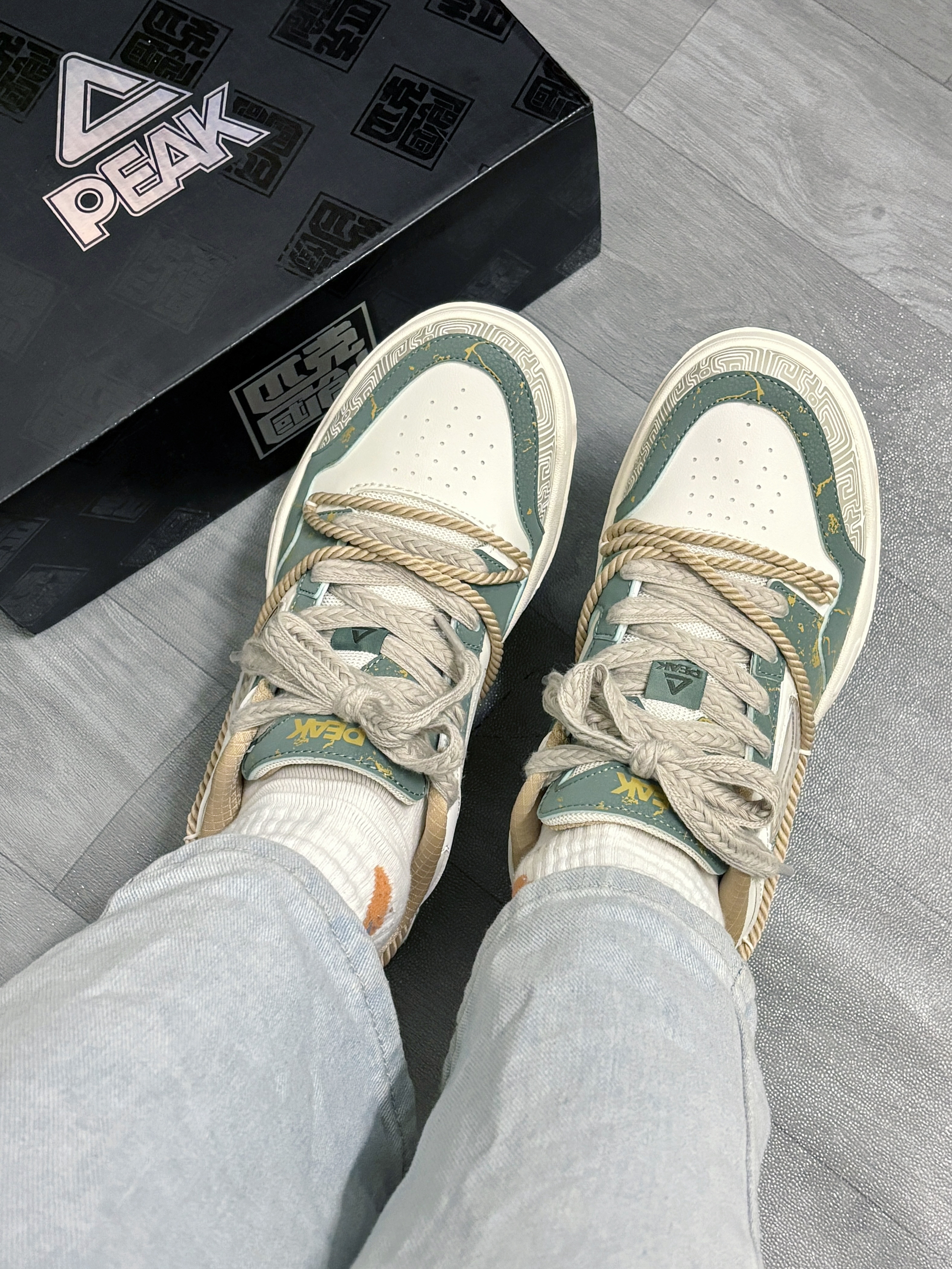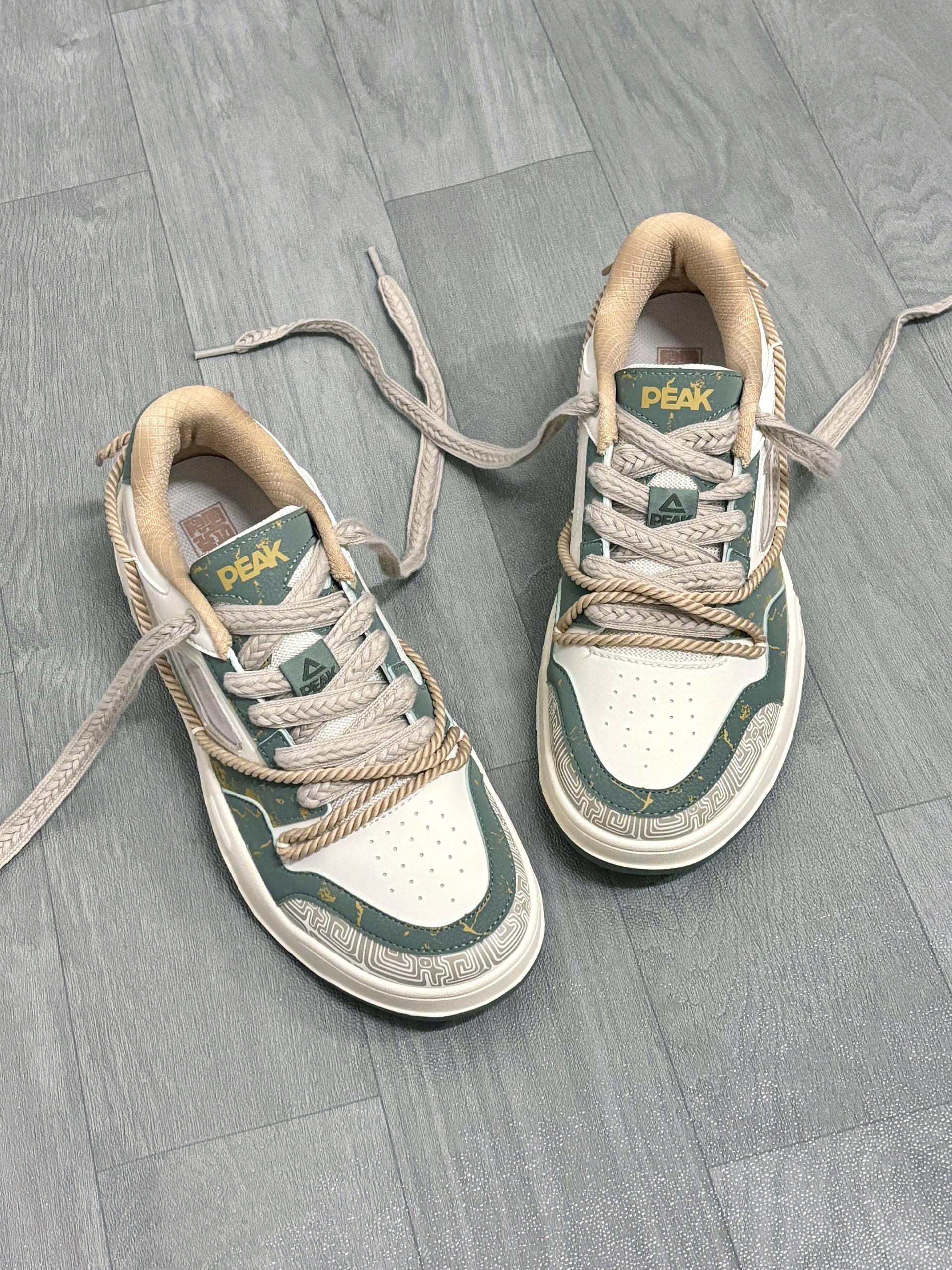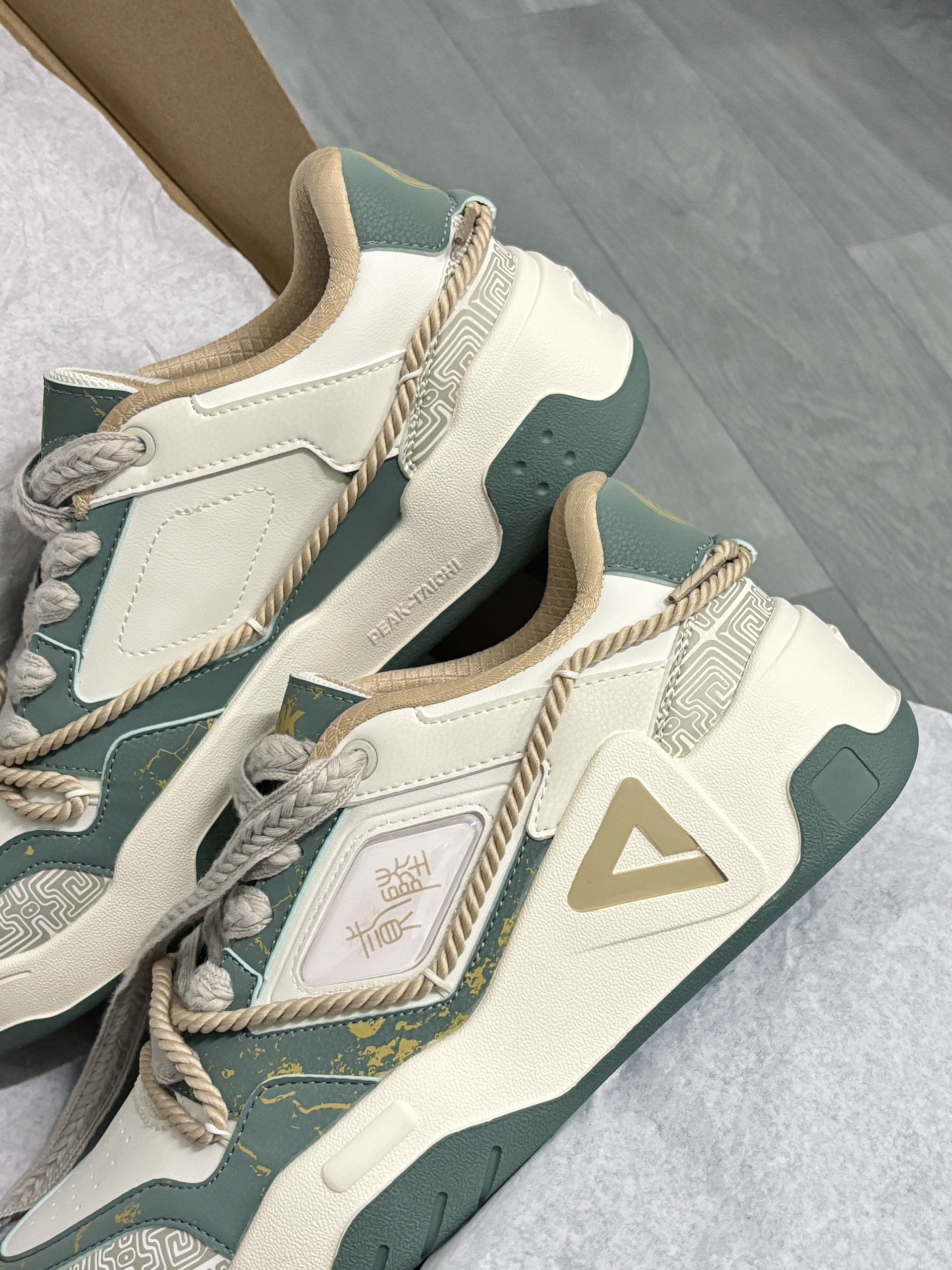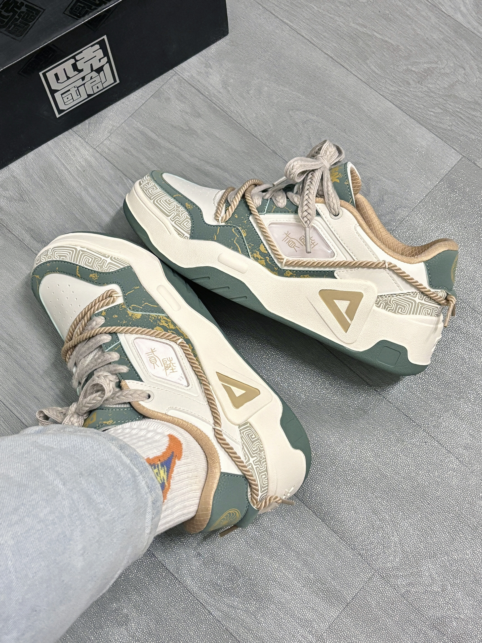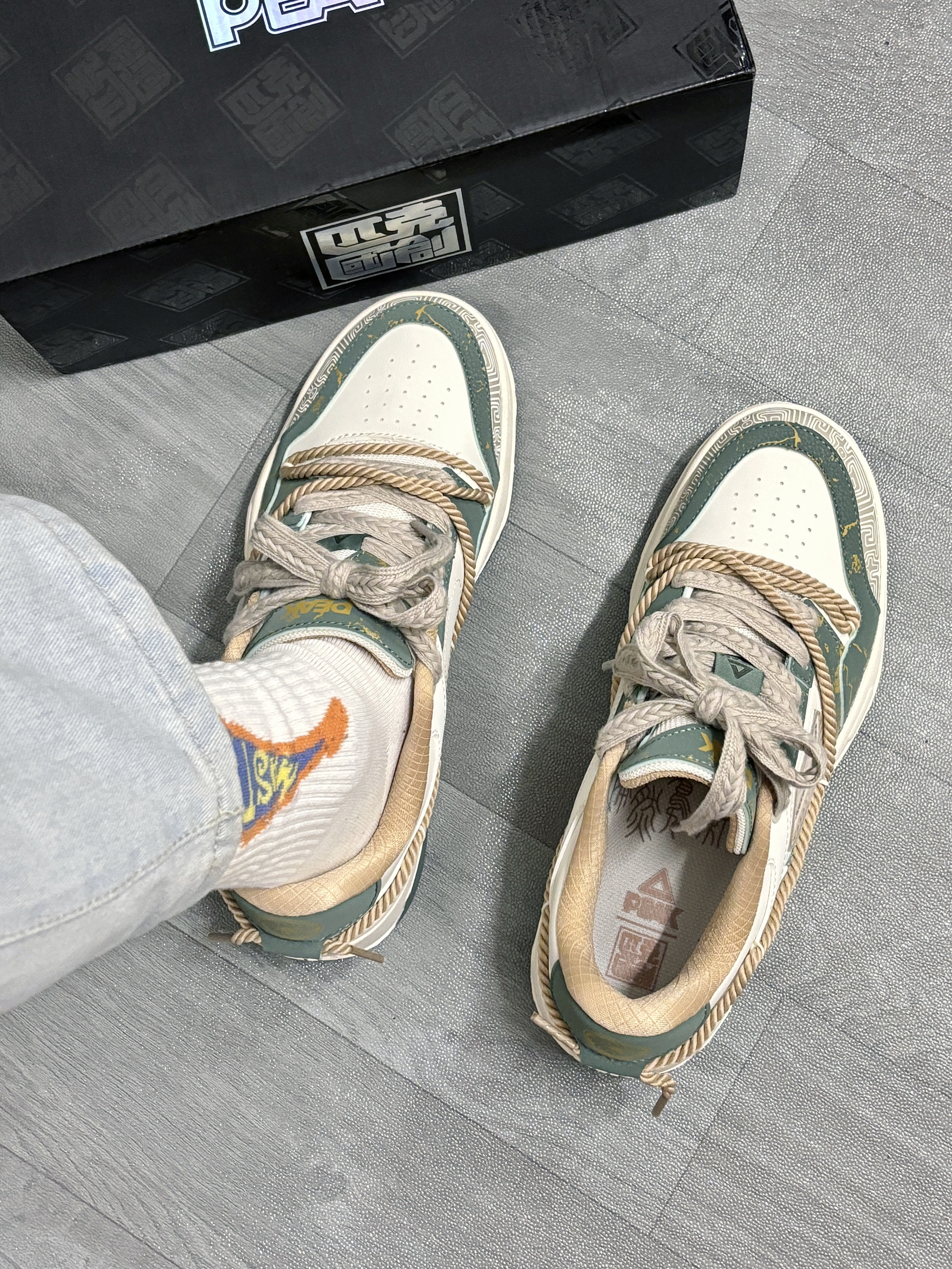 💁♂️:Hi~ 这里是大大纳mi~ 👟: 匹克 态极 纵目迷谭 白绿色板鞋 好看的鞋子千千万,唯独被这双惊艳到了! 复古的古蜀青铜器白绿配色🍃搭配上 鞋身绣痕图案印刷以及后跟青铜图案设计 🫰看起来好有质感,满满古文化底蕴! 侧面透明晃动标与鞋垫小篆文字对应 居然可以解出'匹克'二字!互动很有趣埃✔️ 除了设计,好看的版型+软糯态极中底 日常通勤出街穿都不错,脚感软弹不累脚! 尺码正不偏码,正常...