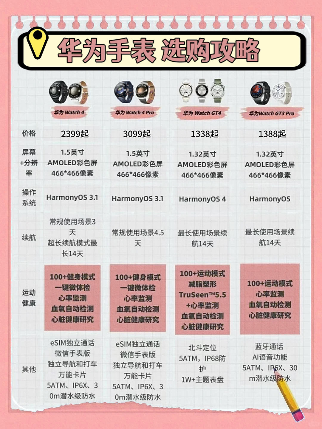 【华为手表选购攻略🌟一张图看懂热门款】,由用户 椭圆不太圆 分享,来自福建。这是一篇来自识货社区的真实用户分享笔记。