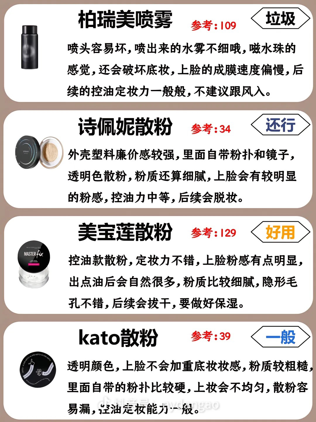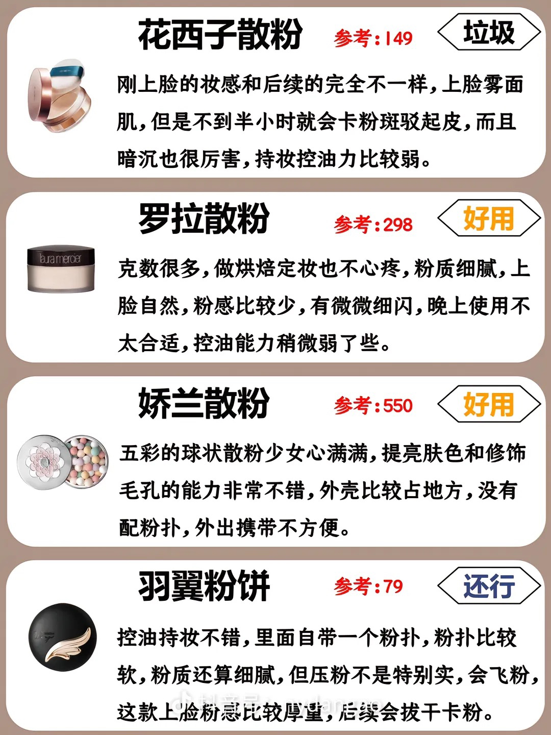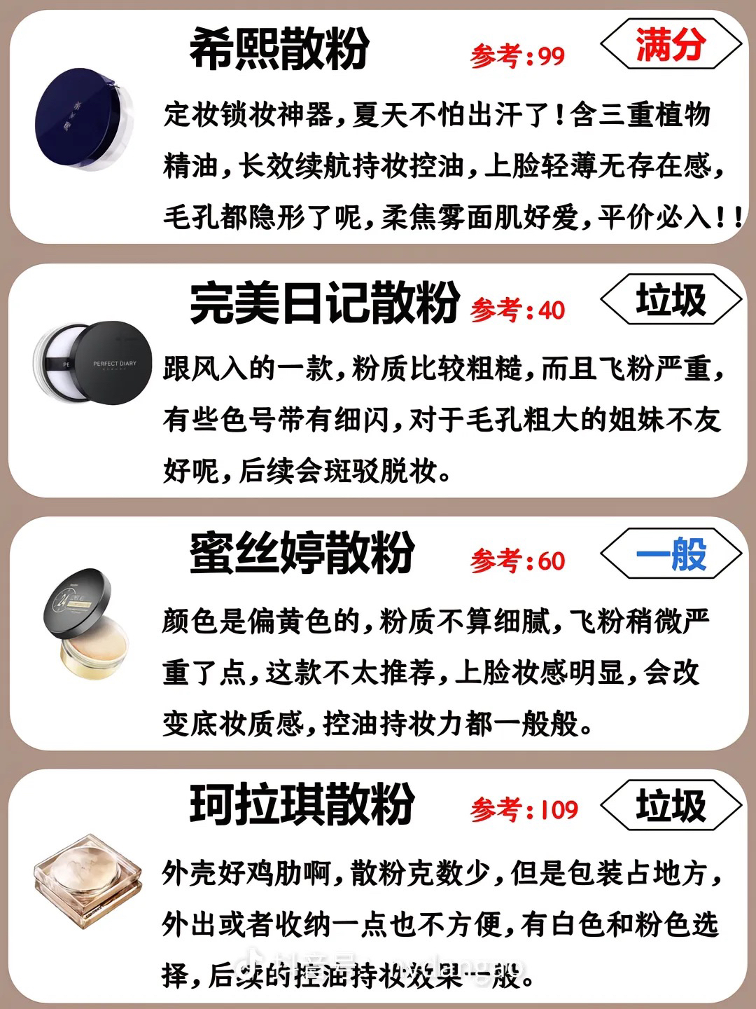 本篇笔记关联了希熙 空气感绒雾散粉 哑光 #空气感绒雾—适合任何肤质、Elegance/雅莉格丝 E大饼定妆蜜粉饼 哑光控油持妆保湿 1透明色 偏白肤色、MAKE UP FOR EVER/玫珂菲 轻烟高清晰蜜粉 哑光无痕 8.5g 经典版等商品,为用户提供真实的使用体验和购买参考。