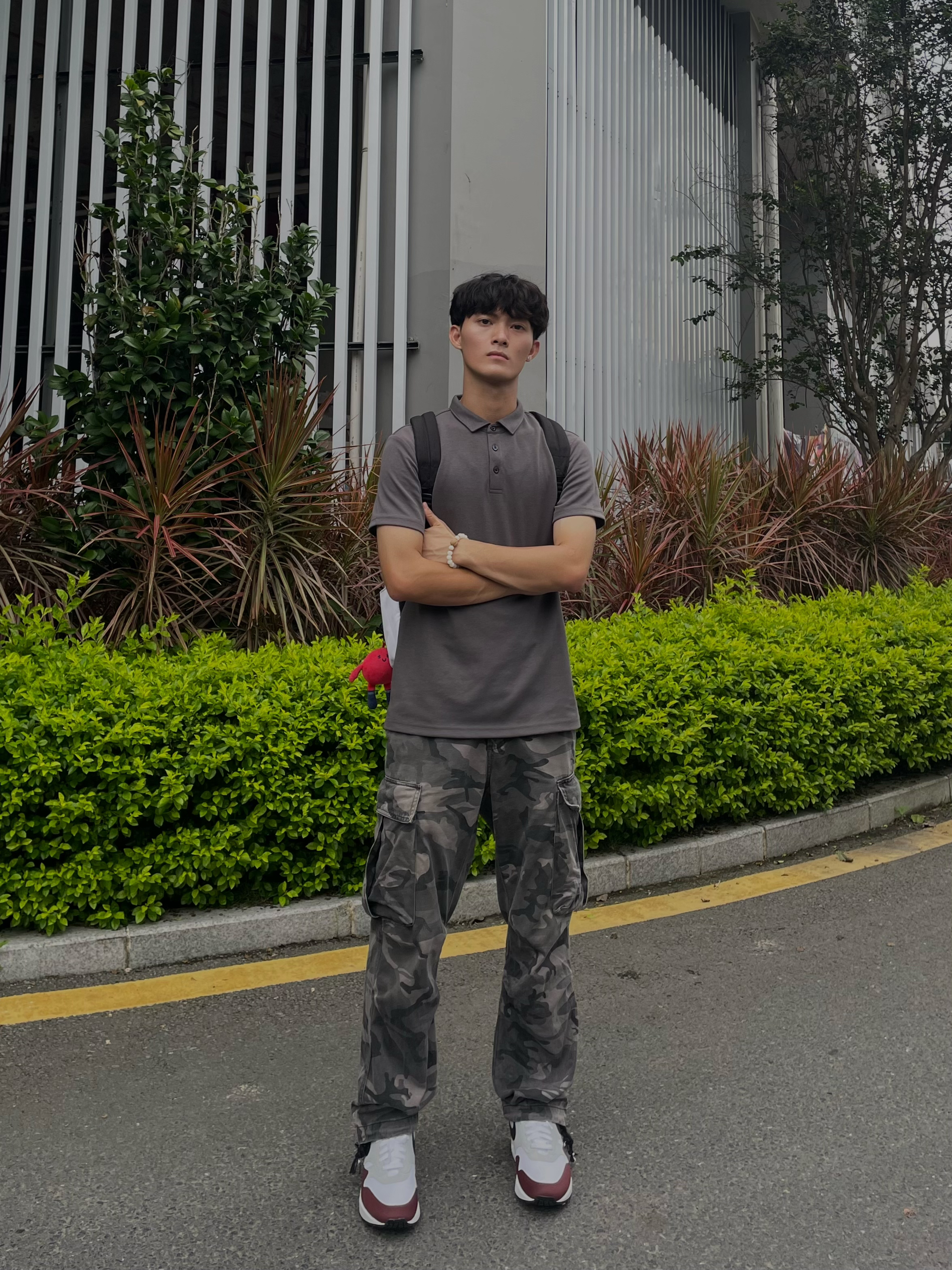 🤵分享一下今天出行穿搭吧[我美式_blue] ⏳公园长椅一坐思考,穿Polo衫戴菩提手串很板正 — — — — — — — — — — — — — — — ①OOTD 👕纯灰色polo衫,简约的工装零感,5A抗菌速干凉感面料,无痕压胶领设计免烫,日常通勤的轻熟风 — 👖复古感迷彩工装裤,宽松休闲的版型又修饰腿长,美日常通勤出门上街的百搭神裤 — ⛓️💥ins风简约菩提手串,新中式精致古典风,菩...