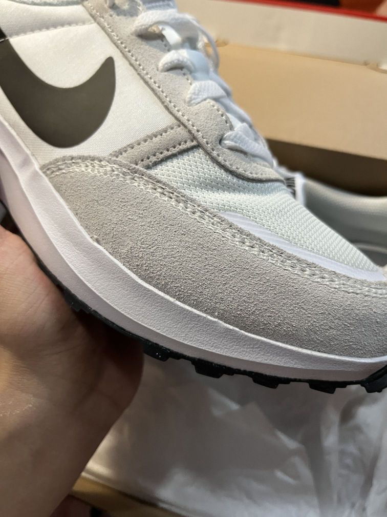 前后部分采用了类似于反绒皮的设计 中间部分以及鞋头部分采用的是网面设计 白灰配色的搭配让整个鞋子非常百搭 透气性也是还不错的 这个华夫鞋还是非常适合日常的!!!