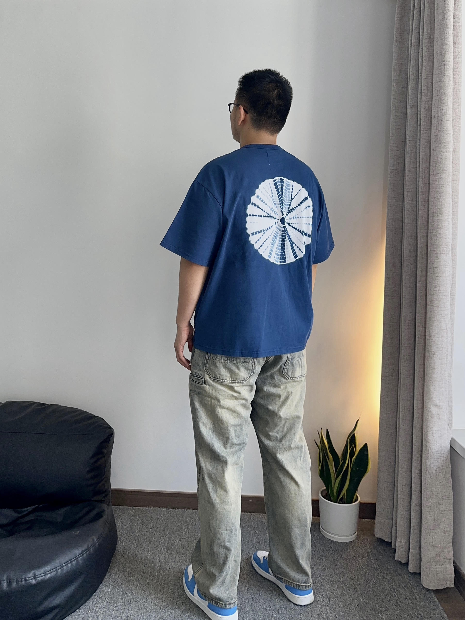 今天是休闲蓝色系穿搭 上身短袖的顔色很特殊 有种云南藍染的感觉 版型短宽 整体质感非常好 下身选择的泥染直筒牛仔裤 藍染+泥染的碰撞出乎意料述不錯 喜欢喜欢 OOTD: 👕:蓝染日系宽松廓形短袖 👖:直筒做旧黄泥染牛仔裤
