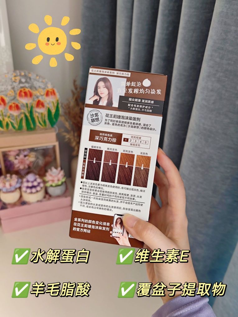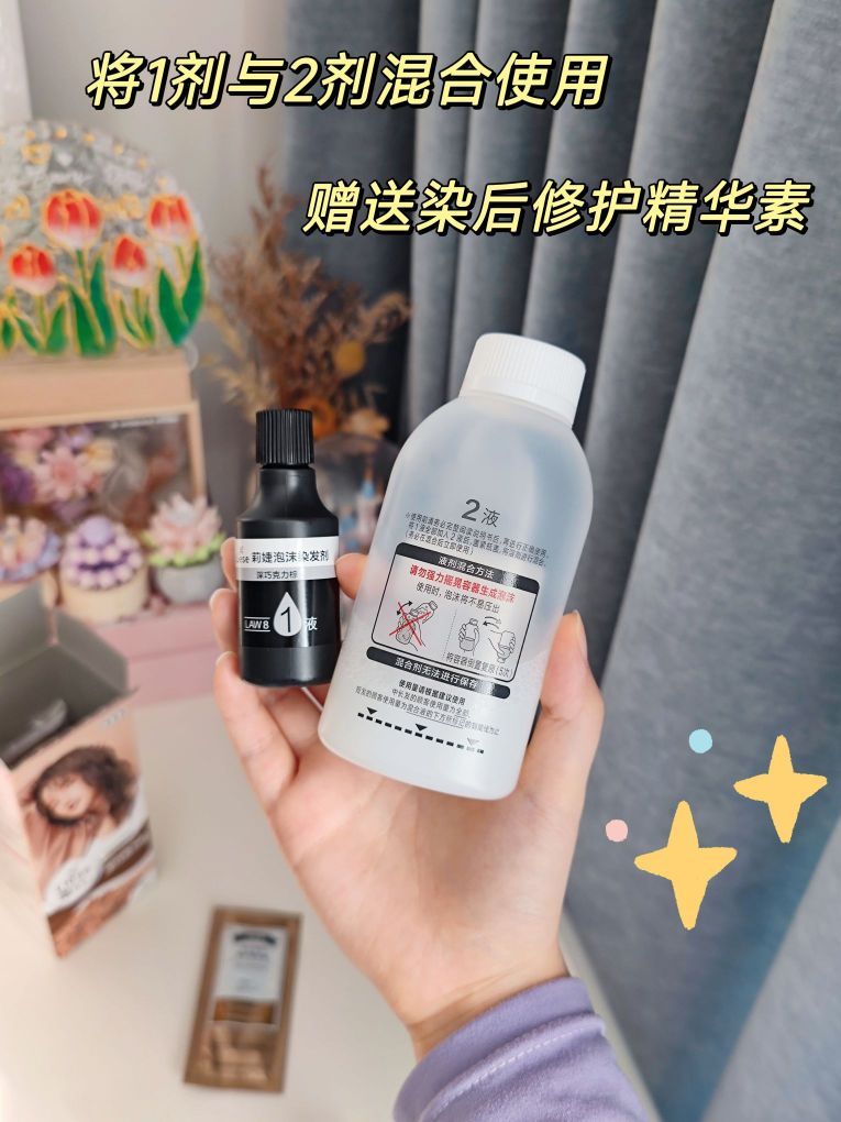 🌸以前经常去理发店,但是这几年我不太爱去了,就在家里用泡泡染发剂,感觉挺方便的,而且也不用面对理发店的一些奇葩hhh~分享这款花王莉婕泡沫染发剂,用着方便安心,是我自己用的比较多的一个牌子~ 🌸它这样一盒基本上就够染中长发了,里面有说明书、染发剂1液、中和剂2液、修护精华素、沫压嘴、手套、披肩、耳套,工具齐全操作便捷,一个人也可以完成染发~我头发长得不算快,染一次能保持三四个月~ 🌸这个染发剂...