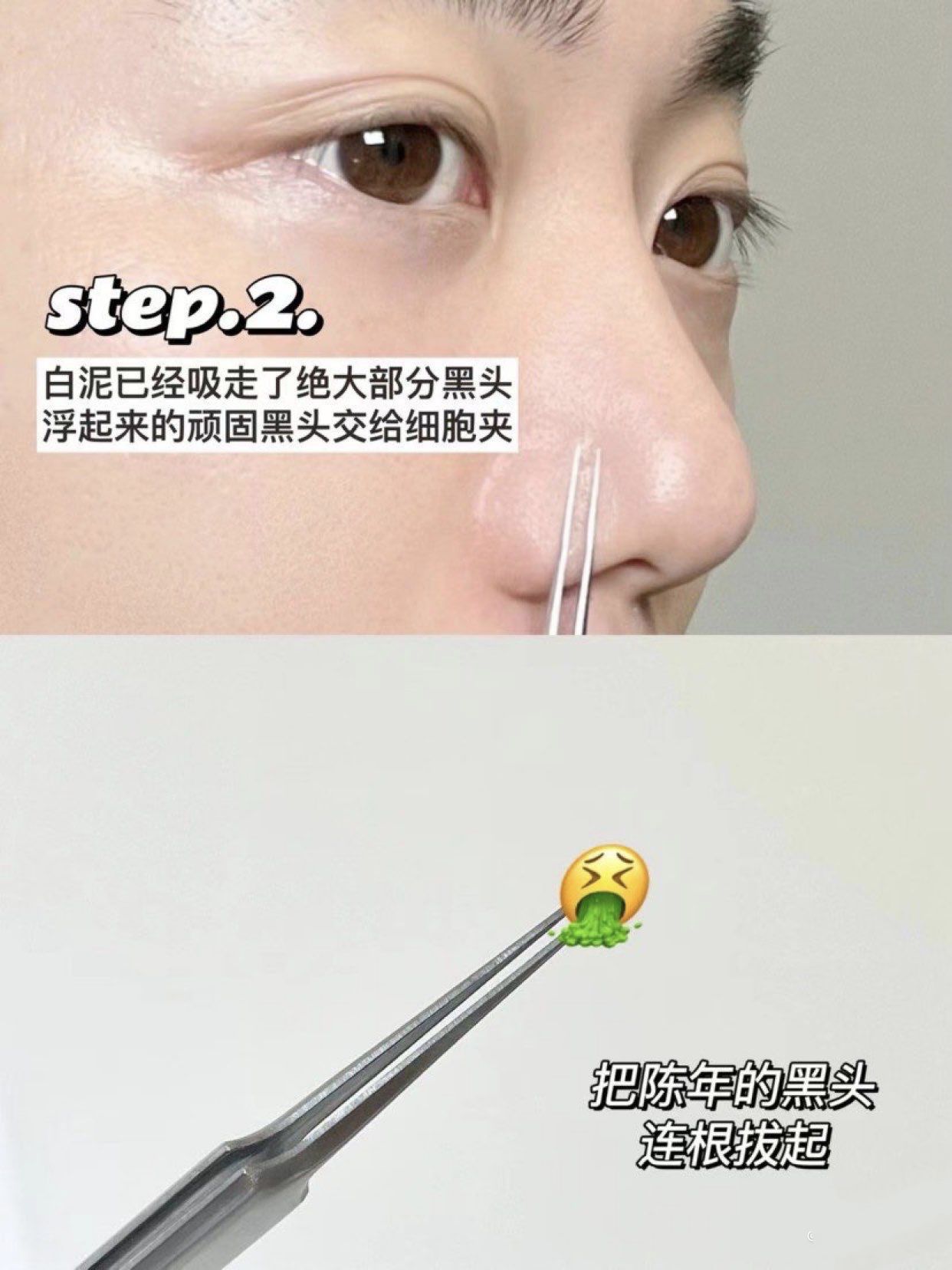 千万不要用撕拉鼻贴去黑头了 只会让毛孔越撕越大! 去黑头其实很简单 只要跟着骆王宇的教程 简单三步! 攒了10来年的黑头都能被挖出来~ ①洗干净脸用热毛巾敷一下,或者用酸类面膜敷一下,打开毛孔,软化黑头。涂上左颜右色泥膜,T区、鼻子厚敷10分钟就可以洗掉。然后你会发现绝大部分黑头油脂已经被吸走了,还有一些钉子户也已经浮出水面了 拿出细胞夹!把冒头的顽固黑头一根一根拔起 来,一定要有耐心,拔完会发现...