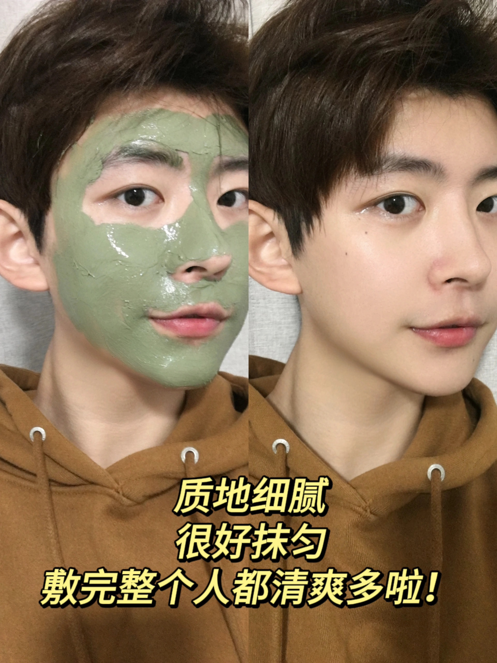 男生想要变帅,一个好的皮肤很重要! 所以皮肤的清洁一定要注意 所以日常皮肤清洁的时候,泥膜是少不了的 用了这么多款发现尊蓝家的泥膜在国货里有两把刷子 质地很细腻,能够很好的抹匀在脸上~ 味道是淡淡的绿豆香,很好闻 洗完脸之后,感觉整个人都清爽多啦 而且清洁能力很不错👍🏼毛孔都干净了 没人能拒绝皮肤好的男生吧! 开会这不妥妥氛围感帅哥