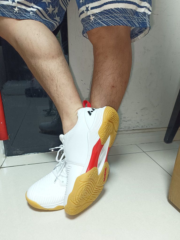 打羽毛球还是得穿羽毛球鞋,就像打篮球一样,这会增加不少体验感,业余新手很适合的这双#雷弗斯LEFUS 羽毛球鞋; ⭐颜值这块,白色鞋面加黄色牛津低,很好搭,可以适合各种年龄段去穿; ⭐上脚🦶感受,鞋子包裹感很好,支撑性很好,加上网面的设计,鞋子不会闷热; ⭐鞋底耐磨性很好,加上tpu和碳板支撑,中底抗扭,厚底柔软回弹感很好,前低偏向支撑;总之这双鞋,一张来说,性价比高的没法说,对于非高强度的球友来...