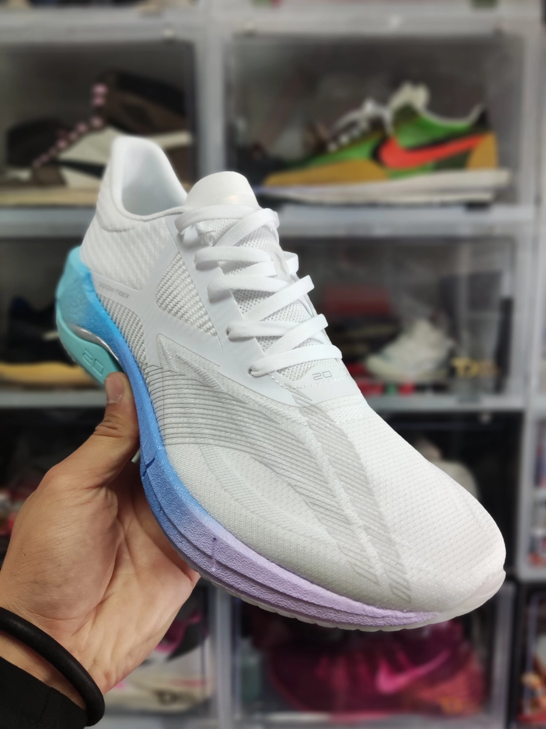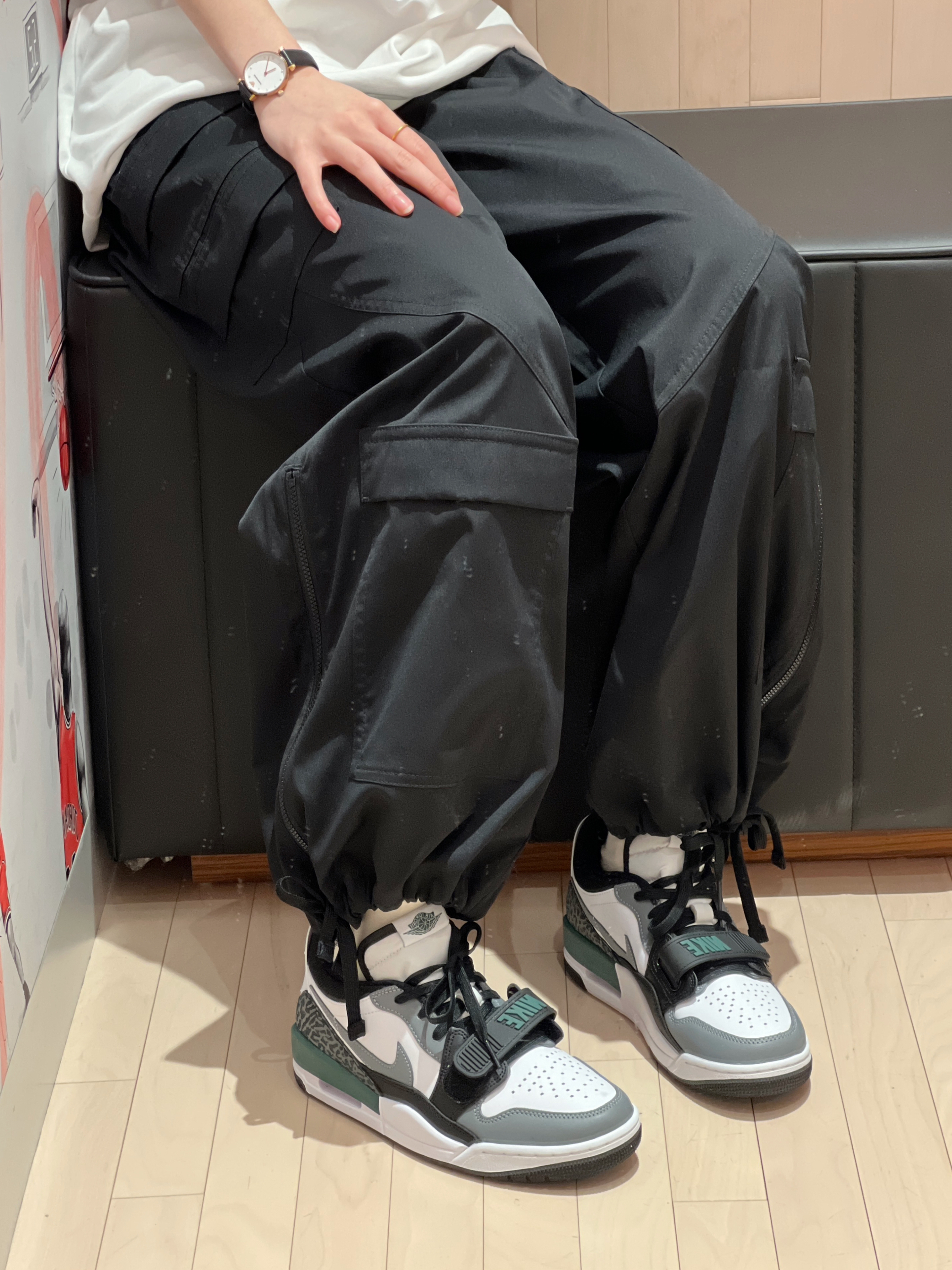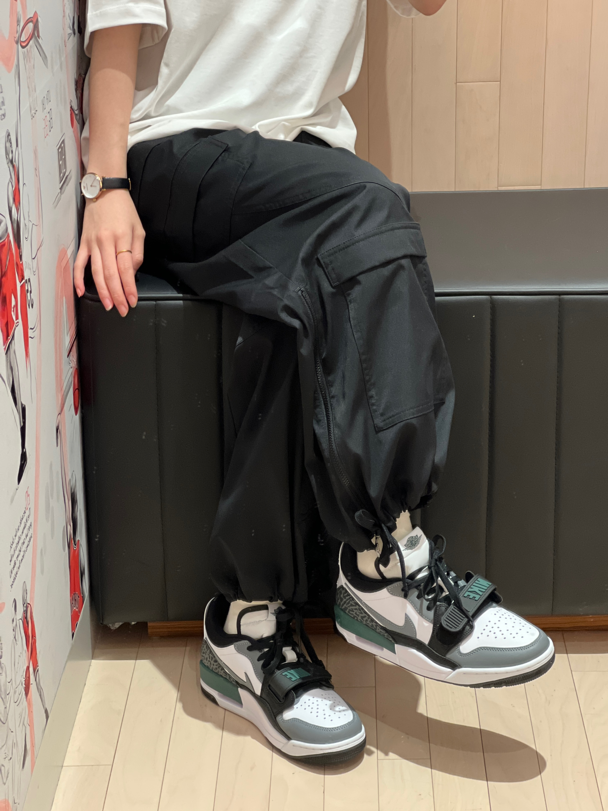 实物直接爱住✨ 鞋面为白灰为主搭配黑💚绿配色 作为点缀复古感很足呢! 不管是搭配长裤或者短裤都是很nice😎 这偏小半码😌🦶宽🉑大一码呢!