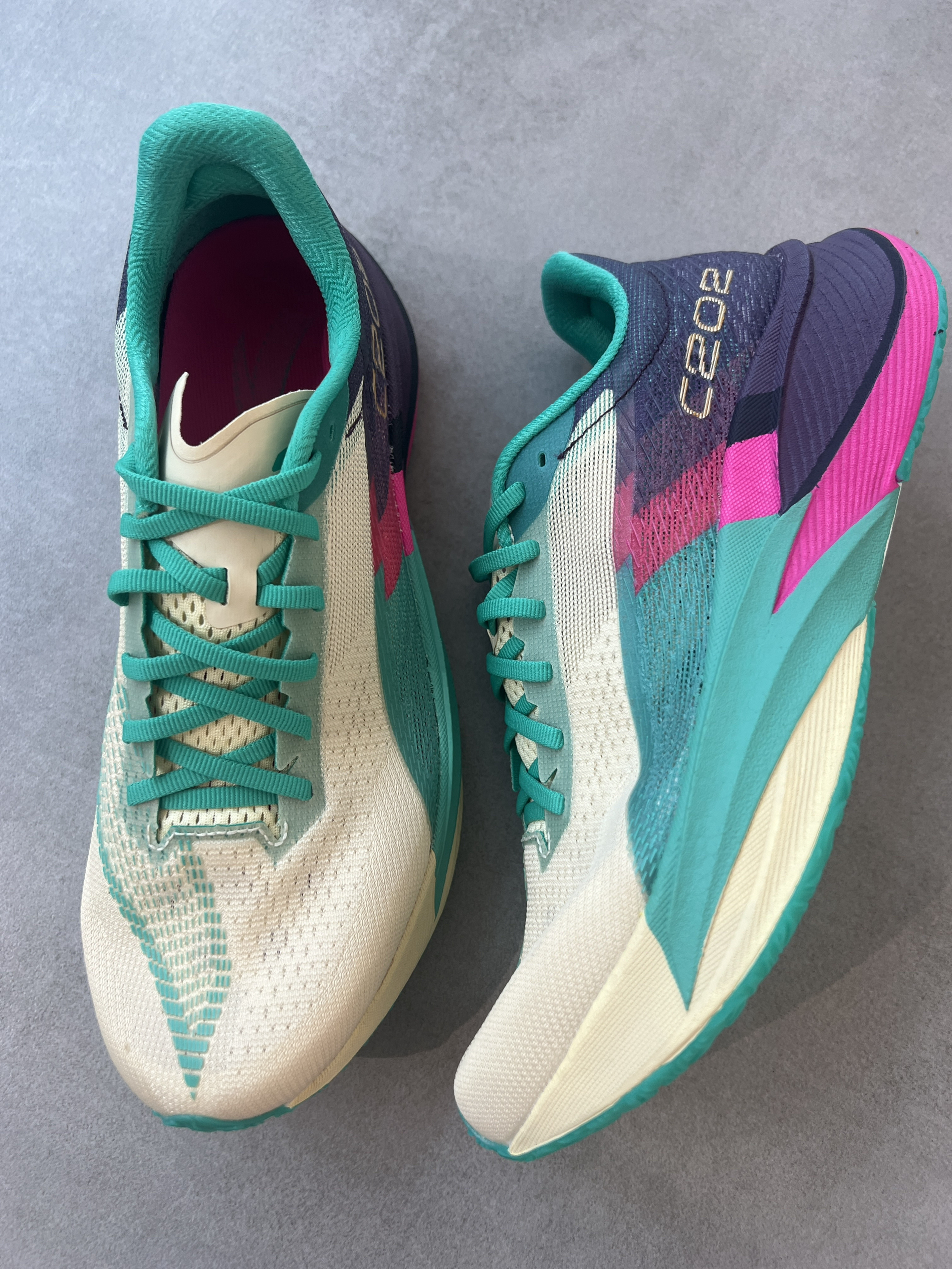 竞速跑我首选这双哦:安踏的c202五代,鞋子整体很炫酷,好搭配,上脚很轻,性能也很棒,氮科技与碳板的加持很适合竞速跑。配色很亮眼,穿出去回头率很高! 这个价位能买到这样一双实战跑鞋还是很不错的👍