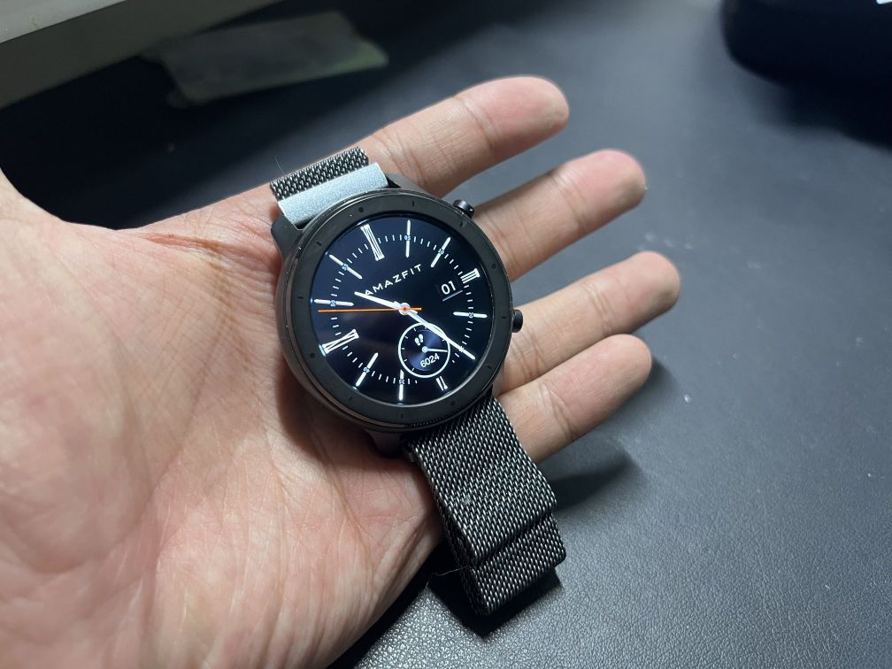 2024年,我入手了华米第一代表,华米GTR。 外观方面真的很吸引人,低调简约,狠狠的商务风。配上商务风的表盘,更好看了。而且圆形表盘本身就比Apple watch的方形表盘好看一些。 而且,作为一个大号手环,它竟然还有息屏显示,更物有所值了。不过扣分项是它的动画真的很不流畅,抛开这一点,其他都很不错。