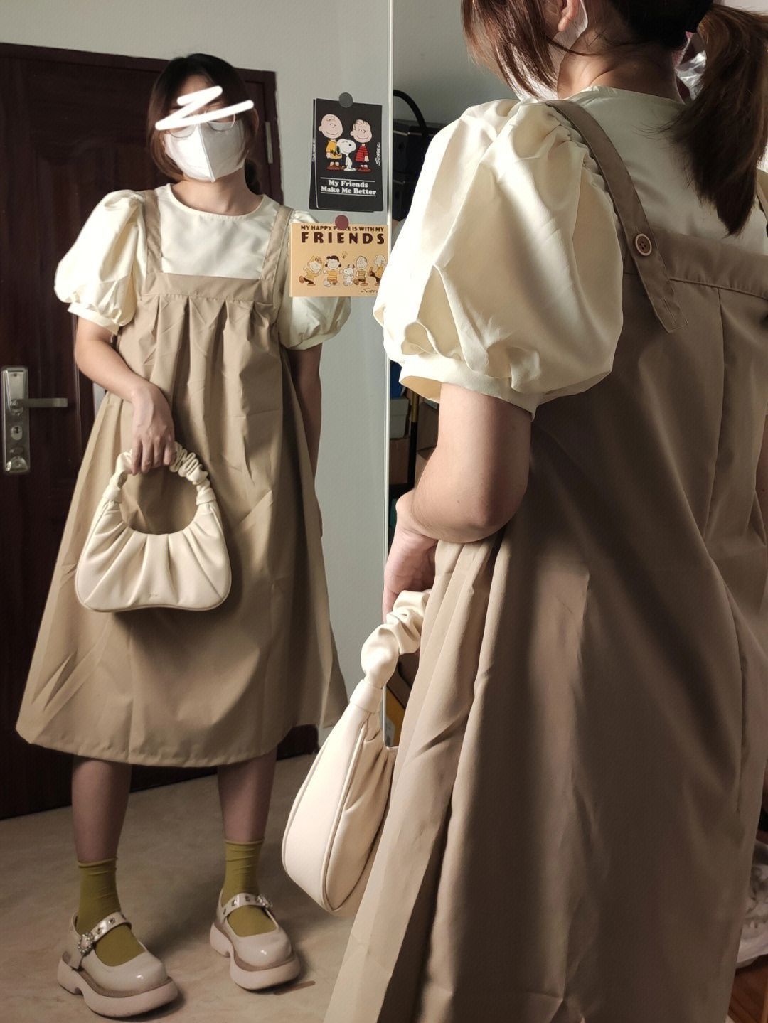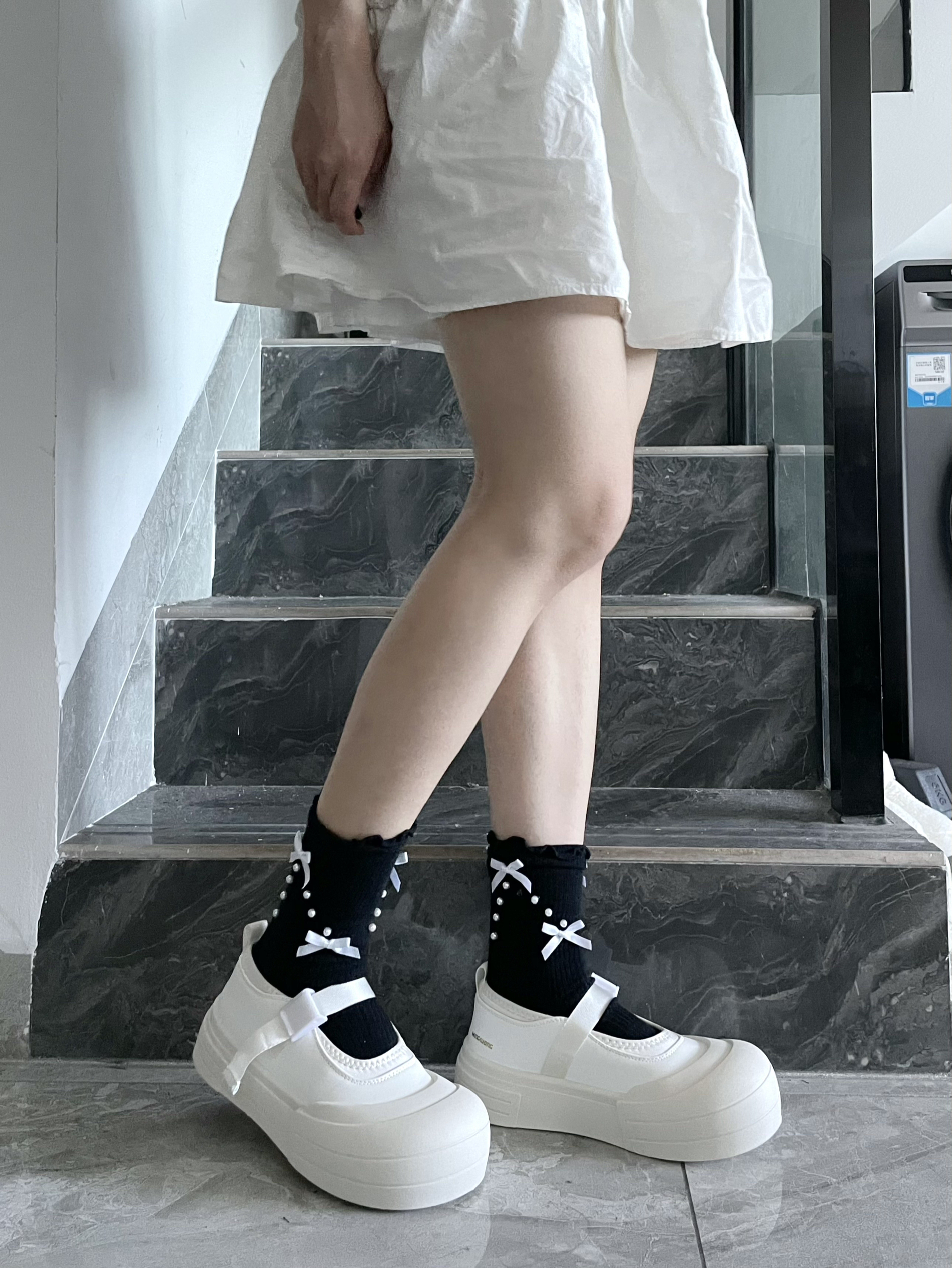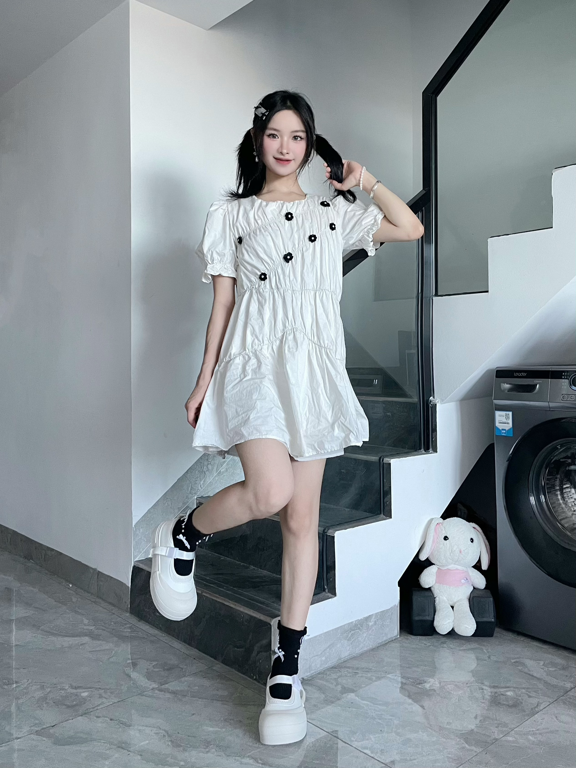 校园甜美风穿搭🎀 女孩们👧一定不能错过! 上身秒变学长学弟们的“白月光”~ 干干净净的娃娃裙👗 衣服上有小黑花装饰 整体版型是娃娃裙 可爱又俏皮🪆 搭个玛丽珍鞋🌟 和蝴蝶结珍珠元素的袜子🧦 甜味儿溢出屏幕啦!