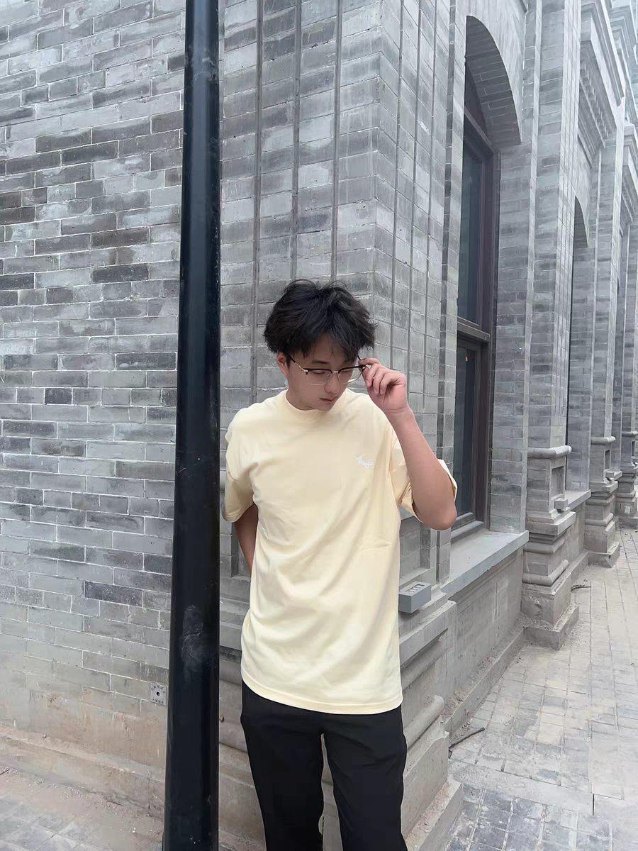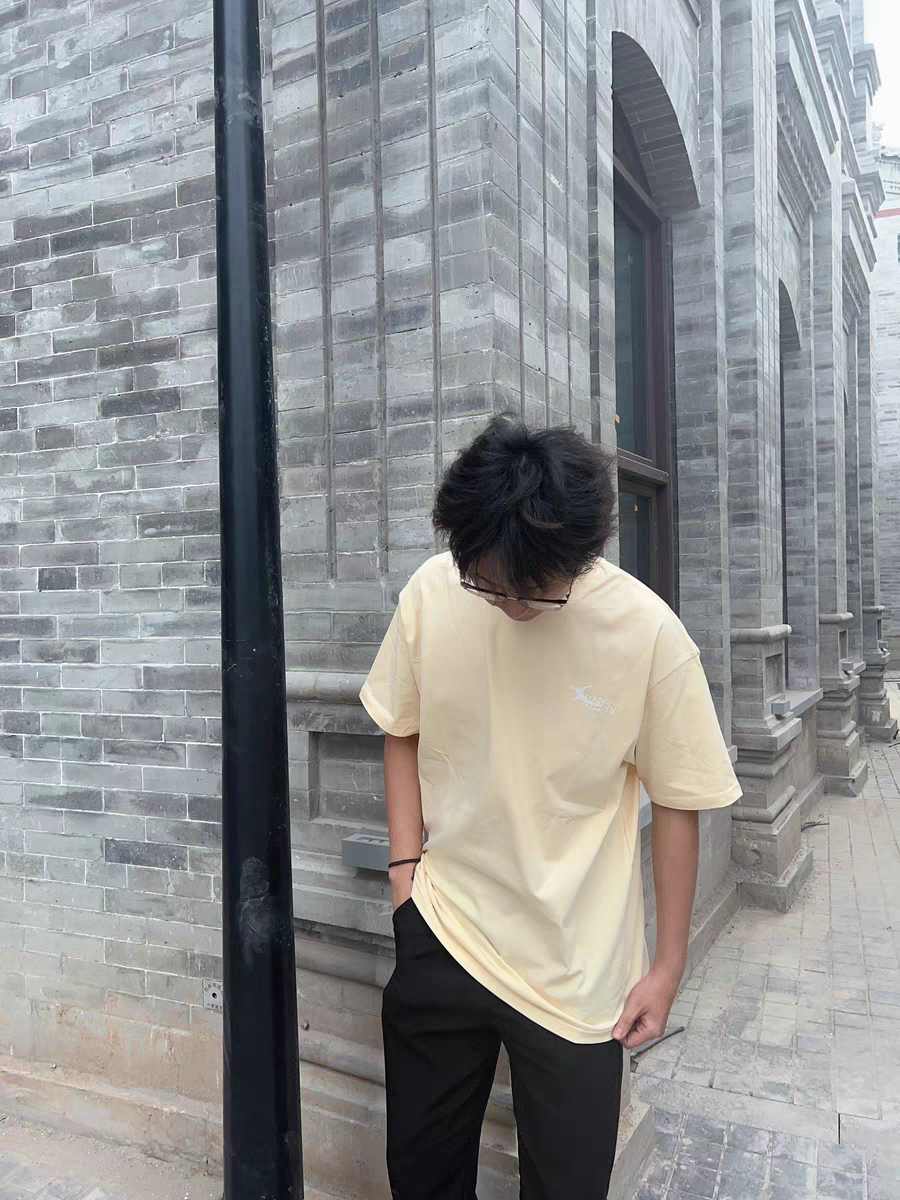 夏天T恤最爱的颜色 夏天☀对T真的没有抵抗力! 宽松版型很显瘦,时髦又耐看。 下装随意搭配就很慵懒休闲。 日常穿搭随意拍照就很好看 作为情侣装👫也是一个很不错的选择!