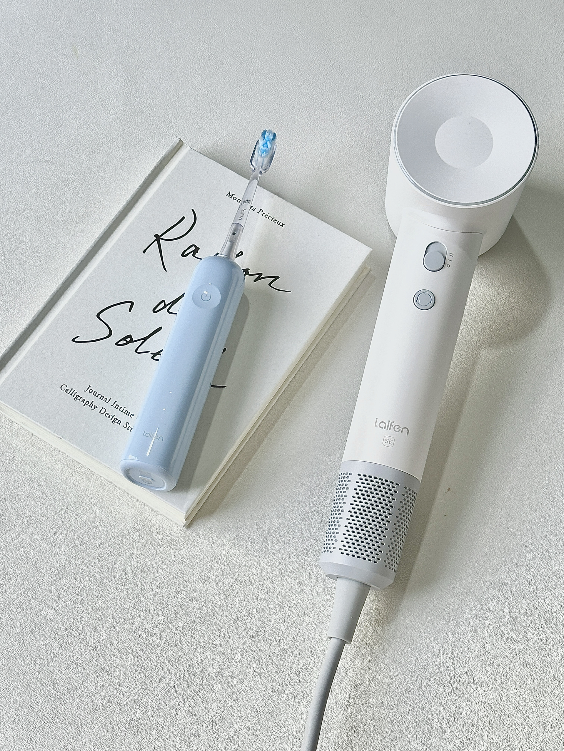 小小的晒一下新入手滴吹风机➕电动牙刷🪥 都是徕芬家滴 选了人气很高的baby蓝和奶白色 放在家里真的美😭了… 我头发很多很厚重 吹干头发是痛苦的事 入了徕芬高速吹风机SE 10分钟就能吹干头发amazing! 还能冷热切换 不伤我头皮爱了😍 还有介个电动牙刷 我也很喜欢~ 一直用着手动牙刷 刷不干净… 换了介个扫震一体的电动牙刷后 我感觉刷的很干净 我牙龈比较敏感的人也没有不适感🙂↔️ 而且光感...