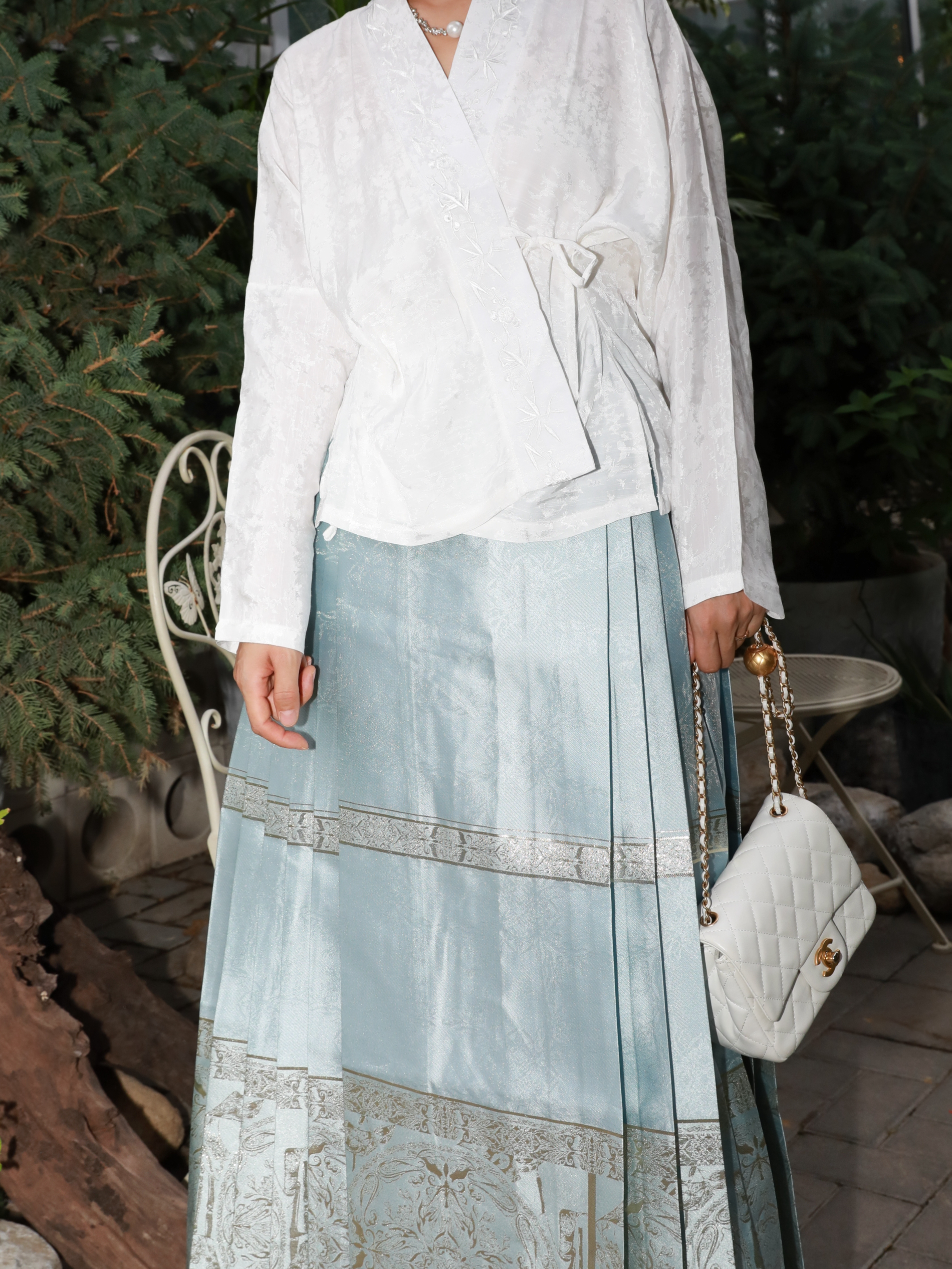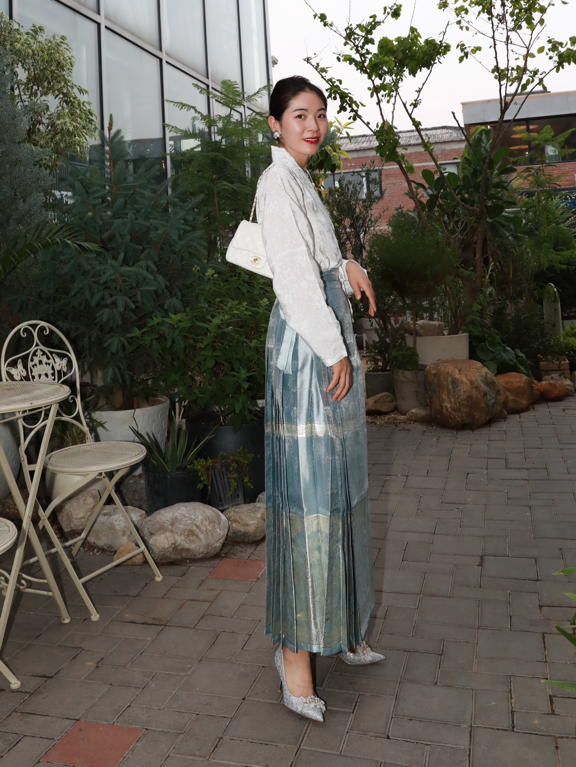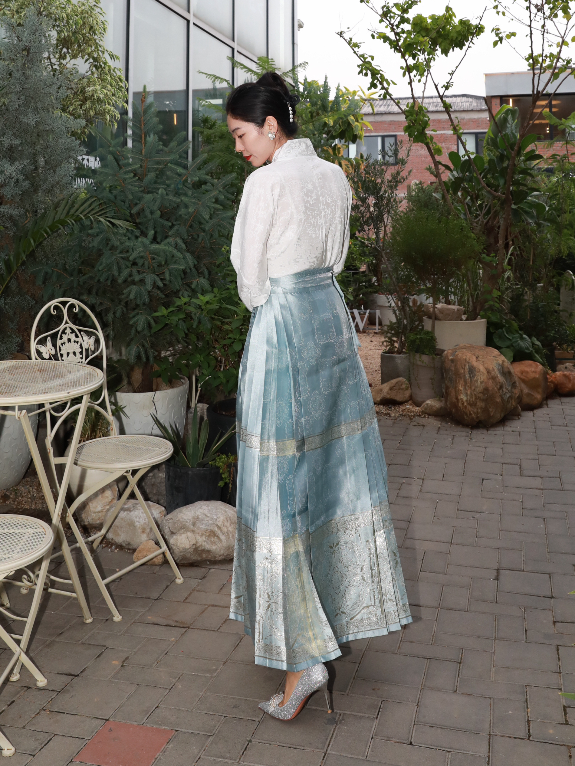 马面裙真的是行走的种草机🤗 东方美学真的是典雅隽永~ 在一个普通的下午,穿上后真的是吸引了太多路人的赞美与惊呼🤪 华服yyds~我们的传统服饰太美了 今天的这一套都是水揽星河的~ 上衣上细节太多了,提花的暗纹~ 材质柔软细腻穿着很是舒服😌 马面裙我选了蓝色的织金马面裙~ 太贵气了我只能说,穿上有种闪闪发光的感觉 今天在这个花园下午茶☕️ 好多店内的小姐姐盯着看😂 好看哦,穿着上也没想象中那么复杂 ...