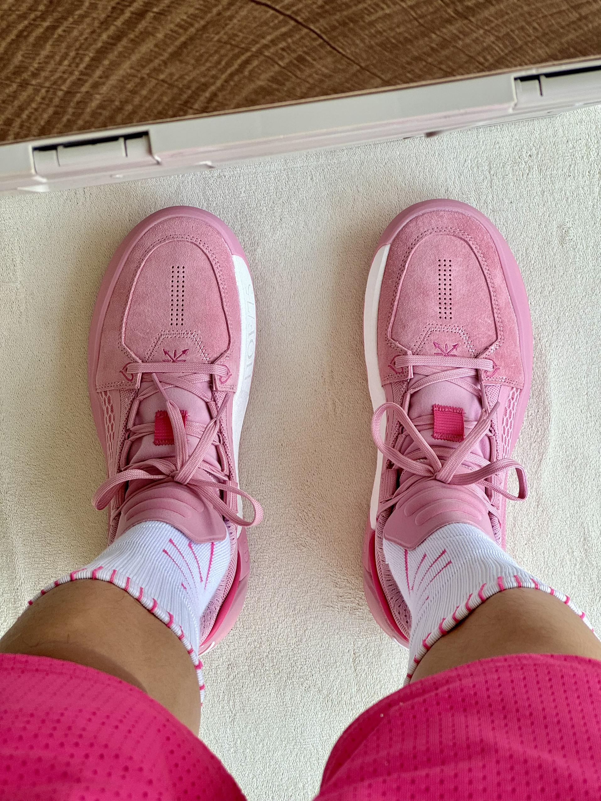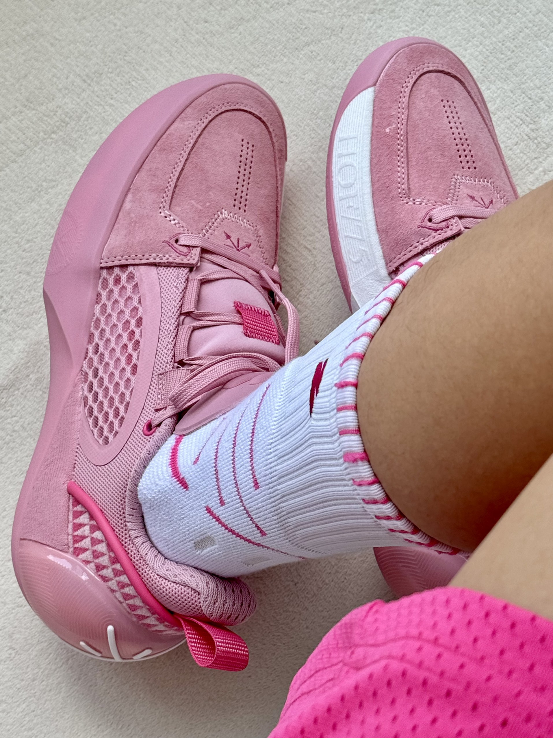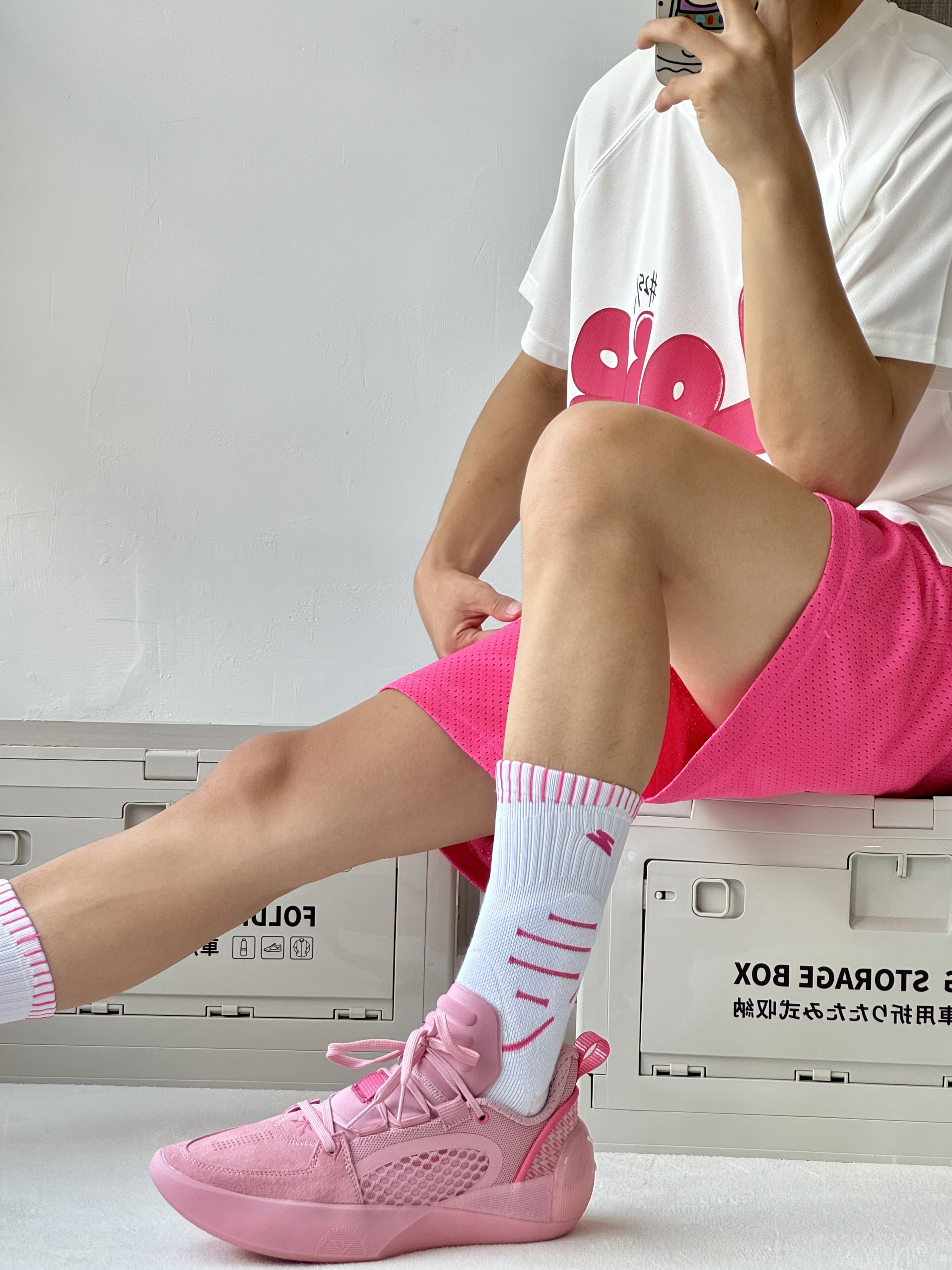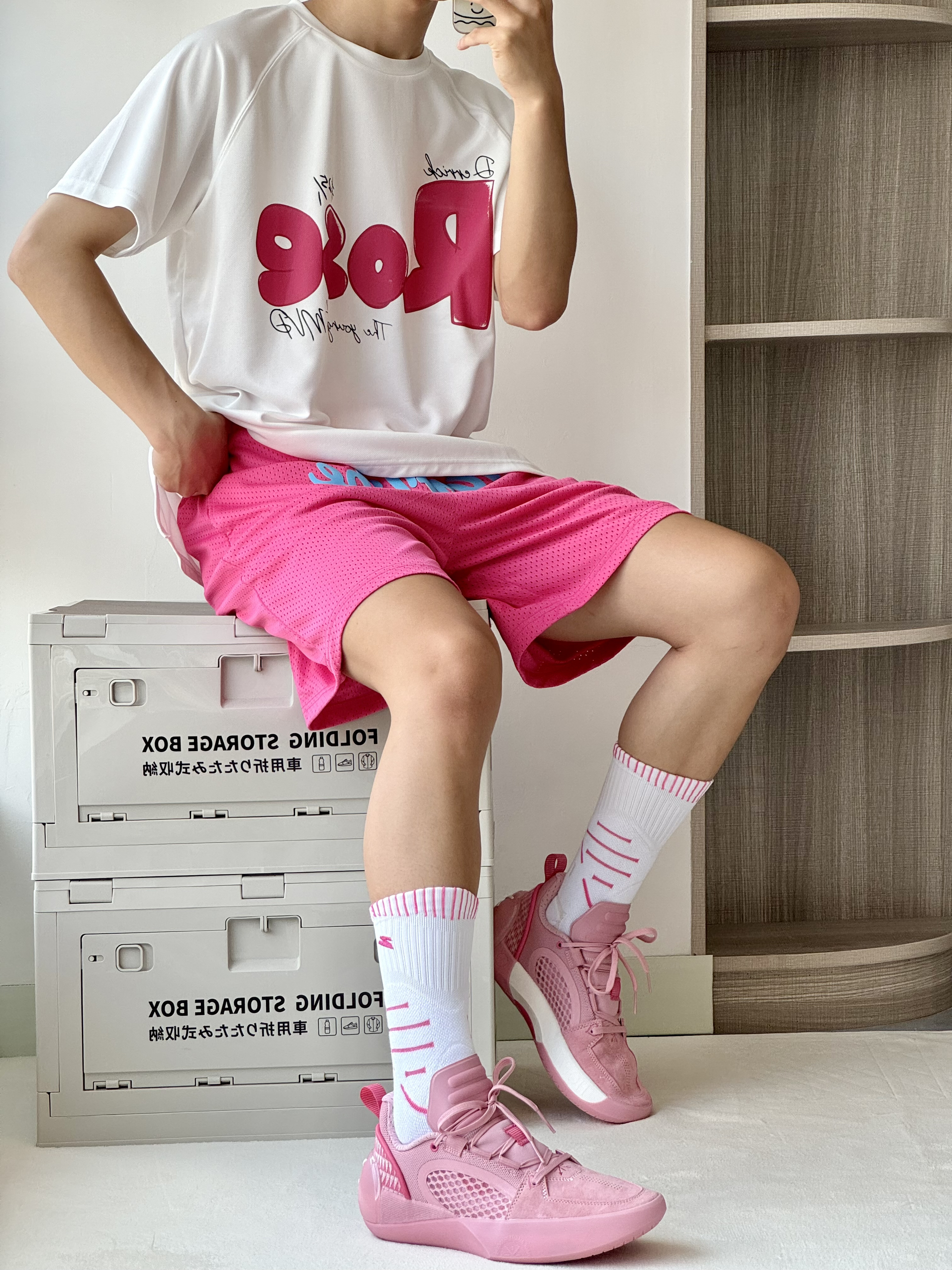 oi夏天爱打篮球的男生穿粉色系列美式穿搭颜值很不错是真心很帅呀 👔 一件白粉色的短袖美式的复古大印花颜值蛮高速干很适合打球穿 🩳 一条粉色美式短裤上身宽松舒适非常好看打球运动穿它毫无问题 👟 全城12 Encore慈爱配色修长复古的鞋身搭配粉粉嫩嫩的颜色是尊嘟很帅呀上脚蛮不错