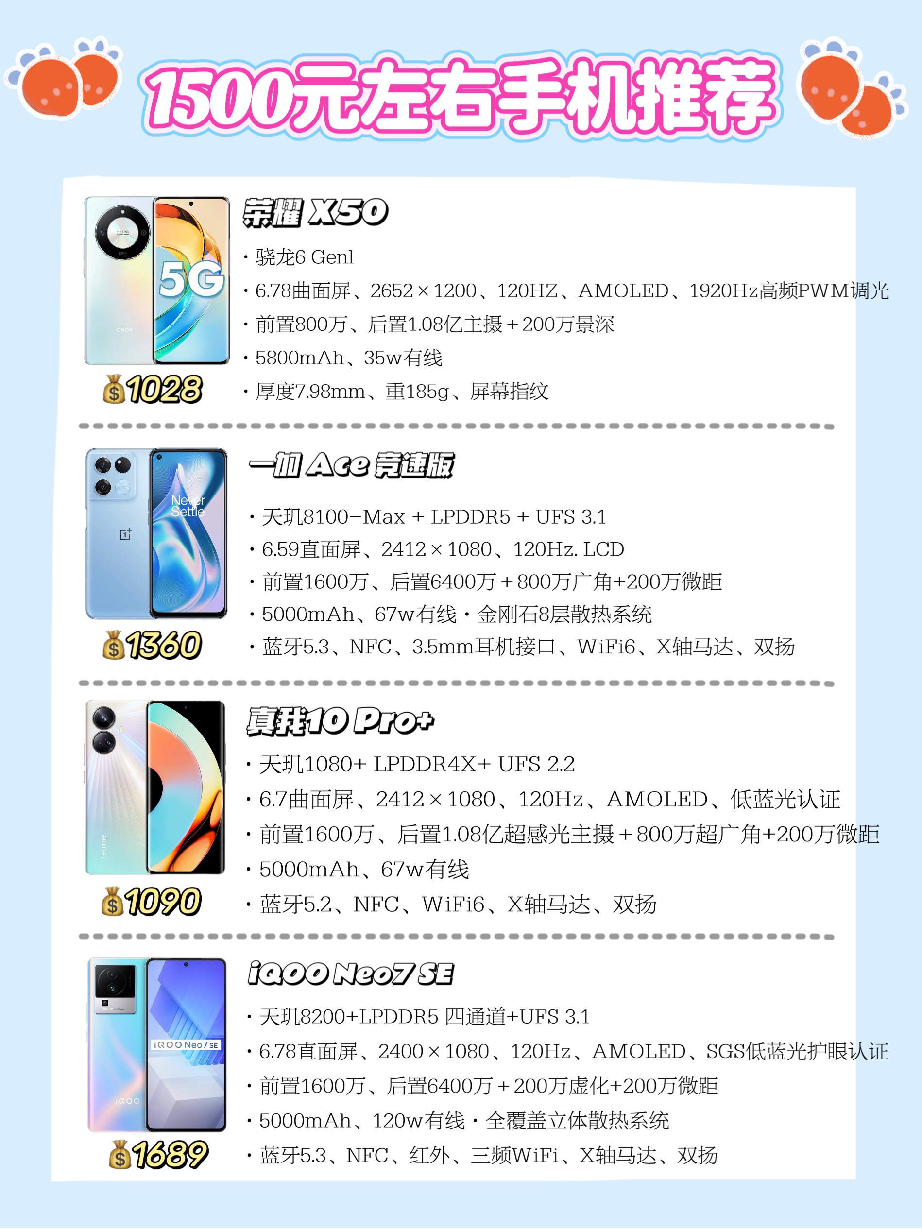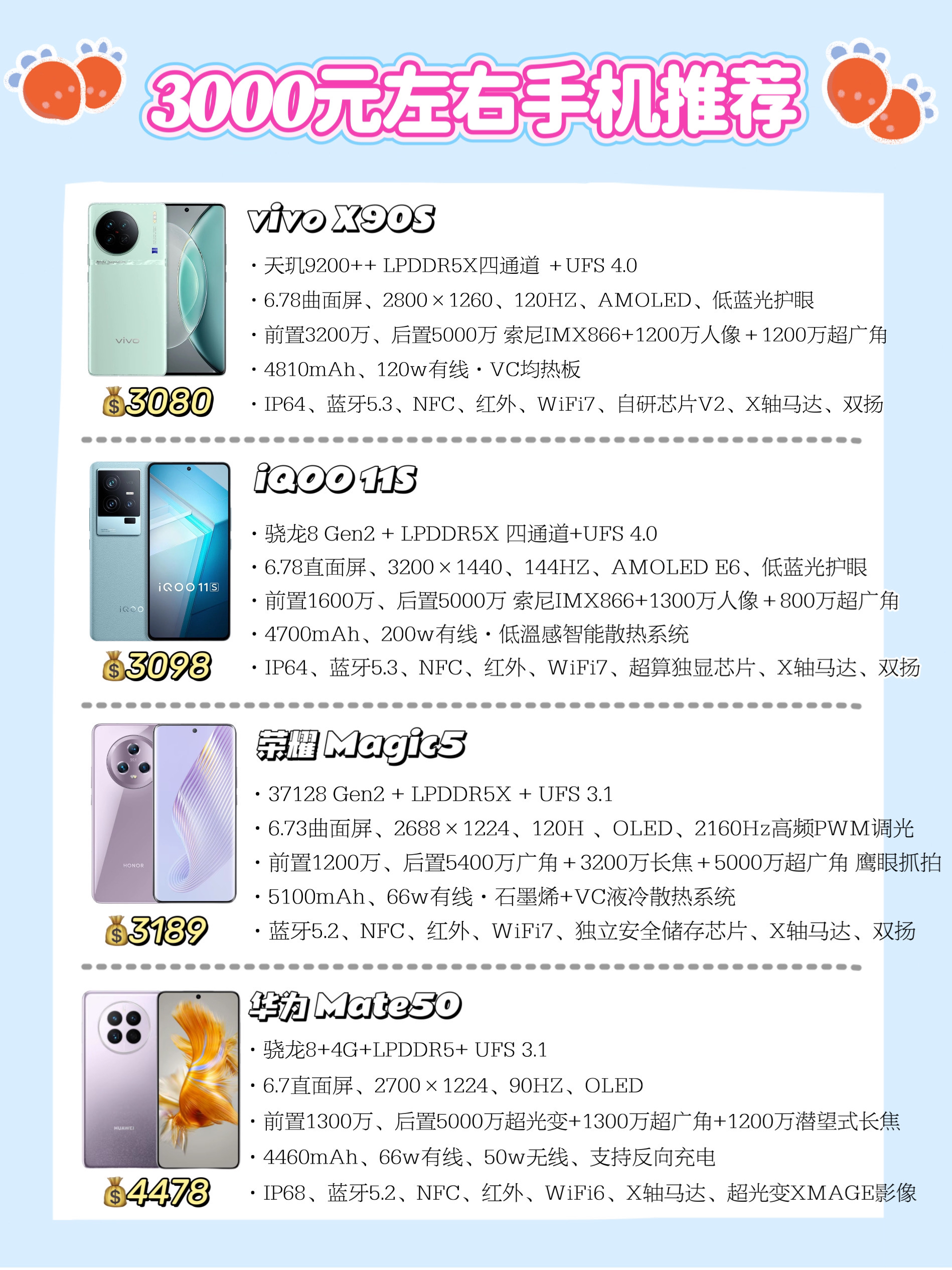 ⭕️很多高考生毕业以后都有换新机的需求 ✅今天出一篇从1500-8000元左右的全价位手机推荐,一起看看叭👀 ⚠️学生党如何挑选合适自己的手机呢❓ 学生党对手机需求大概就是颜值高,玩游戏,拍照好看,续航久: ✅性能强,流畅耐用,3.4年不用换新机 ✅拍照好,清晰不模糊,拍风景拍人像 ✅玩游戏,希望流畅不卡顿,不易发热 ✅续航长,需要大电池容量和充电速度快 ✅看网课、追剧、刷视频,要求屏幕大 ✅颜值...