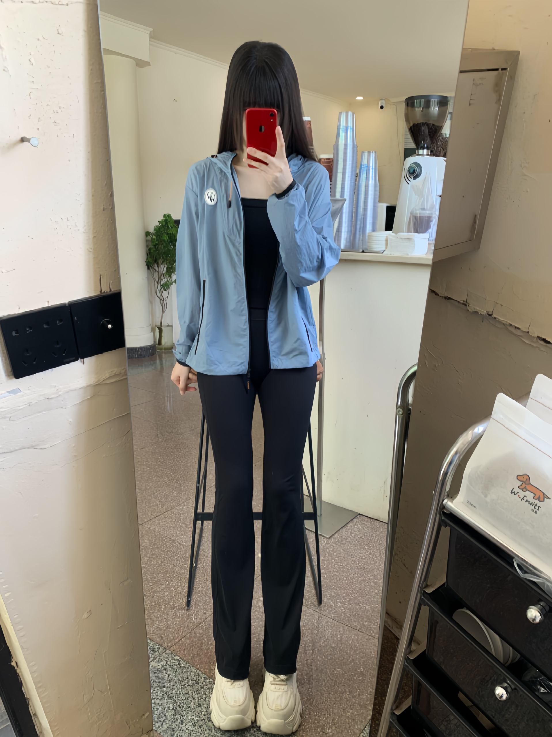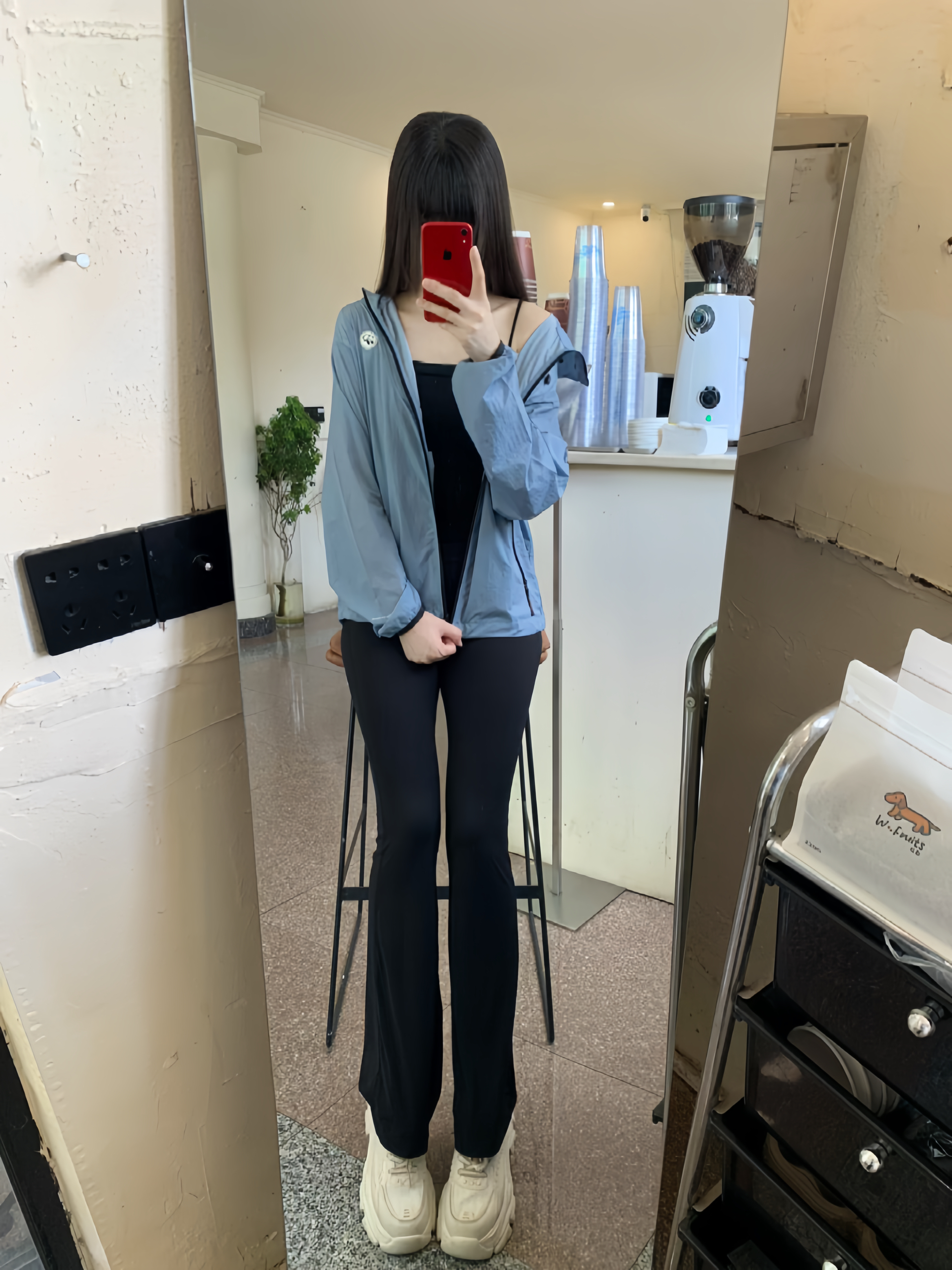 168|52 舒服很重要漂亮我也要😜 吊带➕熊猫防晒衣➕瑜伽裤 轻薄凉凉的皮肤防晒衣 又透气 出门在外 妈妈再也不怕我晒黑了~