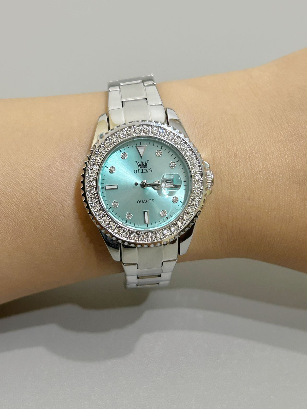 本篇笔记关联了OLEVS/欧利时 时尚小巧钢带镶钻夜光简约气质日历防水电子石英女表 银色、OLEVS/欧利时 轻奢华钢带时尚简约满钻镶钻防水小巧小绿表石英女士手表 钢带浅蓝等商品,为用户提供真实的使用体验和购买参考。