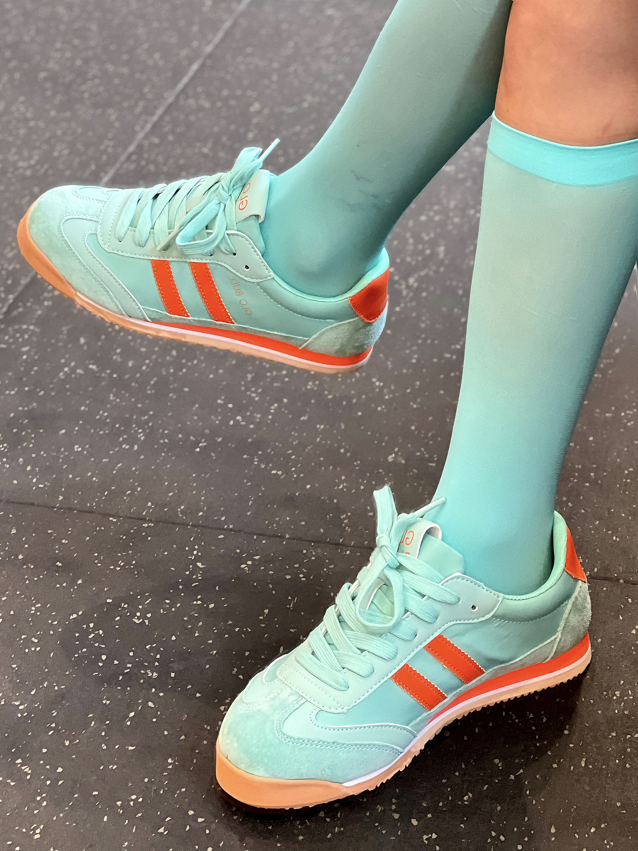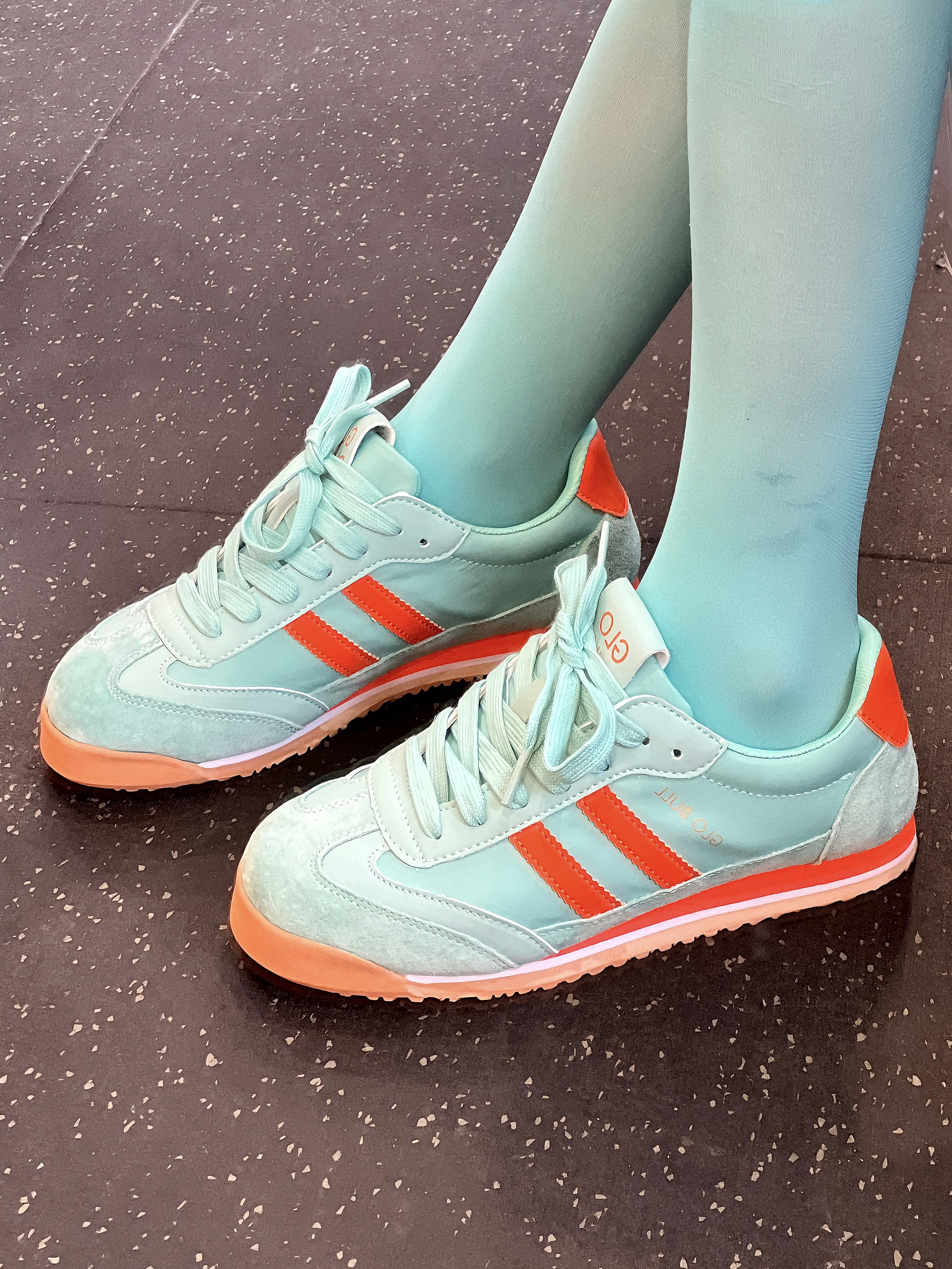 今日臀训结束 保加利亚单腿真的能让人失去活力😭 💗今日穿搭 白➕绿 真的好有夏天的感觉!!! 一套简约干净 经典耐看 👟 #GLO BULL 超级好看的一双德训鞋上脚很轻,舒适感很好 平底橡胶鞋底,抓地感很好,很适合咱们女生宝宝健身练臀,找到发力感很easy!! 绿➕桔撞色设计,很有复古感,耐看百搭又吸睛 平时作为搭配点缀也非常不错哦~