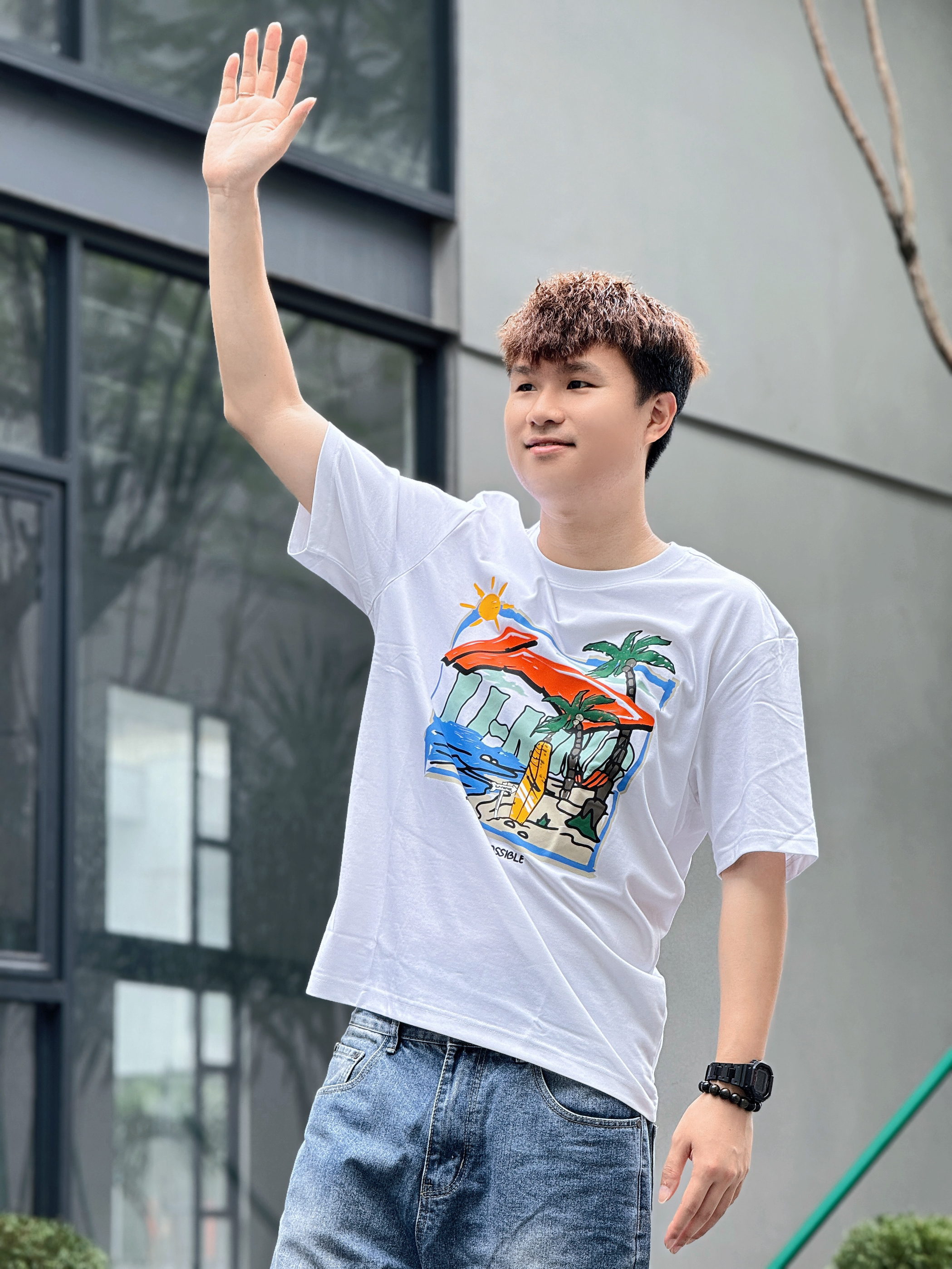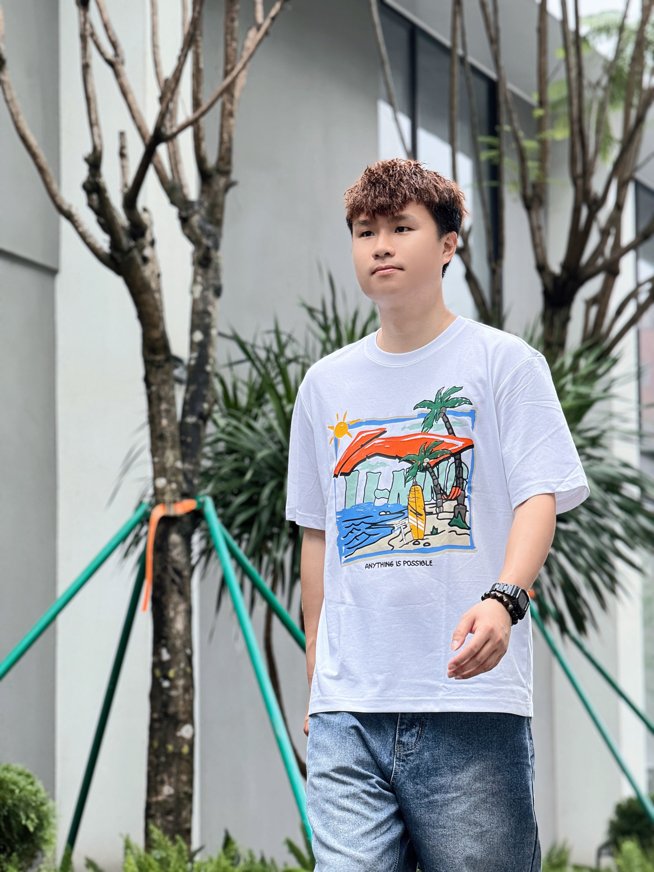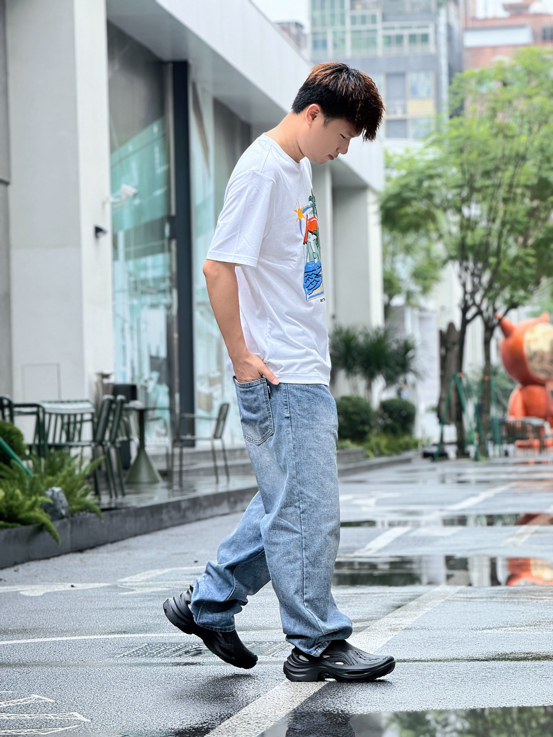 转眼间周末就要结束了 但我的心依然还在度假⛱️ 好在雨量终于有减少的迹象 期待不久就能迎来了久违的阳光☀️ 正好约了朋友去创意园区逛逛拍照📷 那就换上一套超级适合度假的穿搭吧 上衣是国潮李宁Lining的度假系列 简单的白T印有趣味的涂鸦✍️ 以椰树🌴海浪🌊沙滩🏄为设计灵感 加上凉感舒适的材质和宽松版型 真的太适合夏季出游穿着啦 下身搭配上清爽的牛仔蓝阔腿裤 再穿一双适合玩水的潮流凉拖 妥妥的...