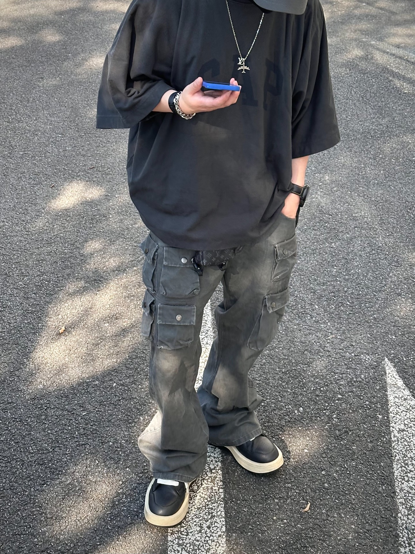 今天穿的这条裤子真是氛围感max🔝 多口袋设计不管是层次感还是立体感都非常强💯 做旧水洗灰工装布复古感满满 ✨微喇裤型很符合现在的潮流审美 关键这条裤子不到2张就能拿下💰 确实低于我的预算,就很值👏🏻 #又挖到宝藏工装裤了 #vibe穿搭 #我的Cleanfit衣橱 #穿搭博主ootd #不限穿搭合伙人 #去班味穿搭 #很难不爱的工装裤 #男生穿搭夏季OOTD