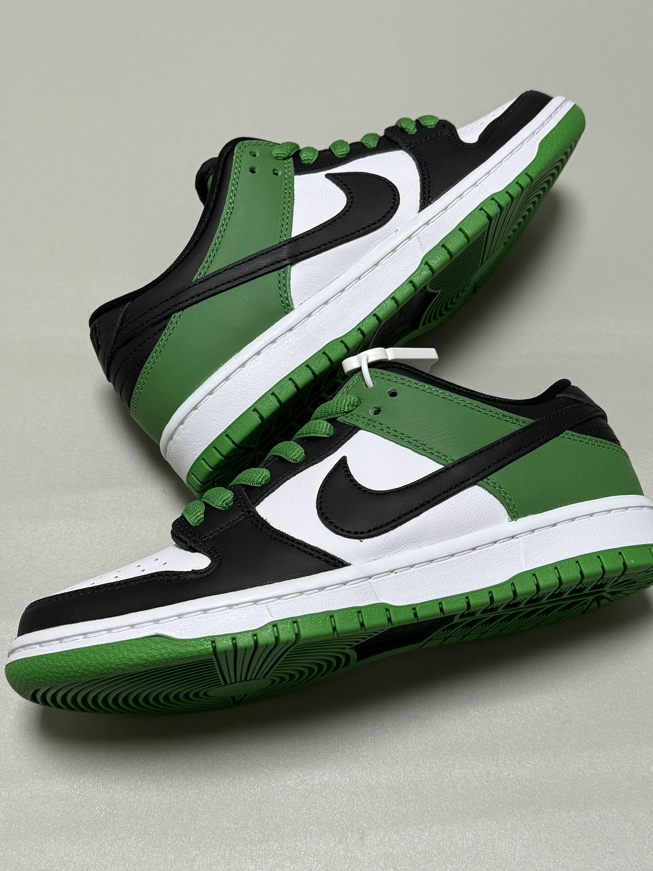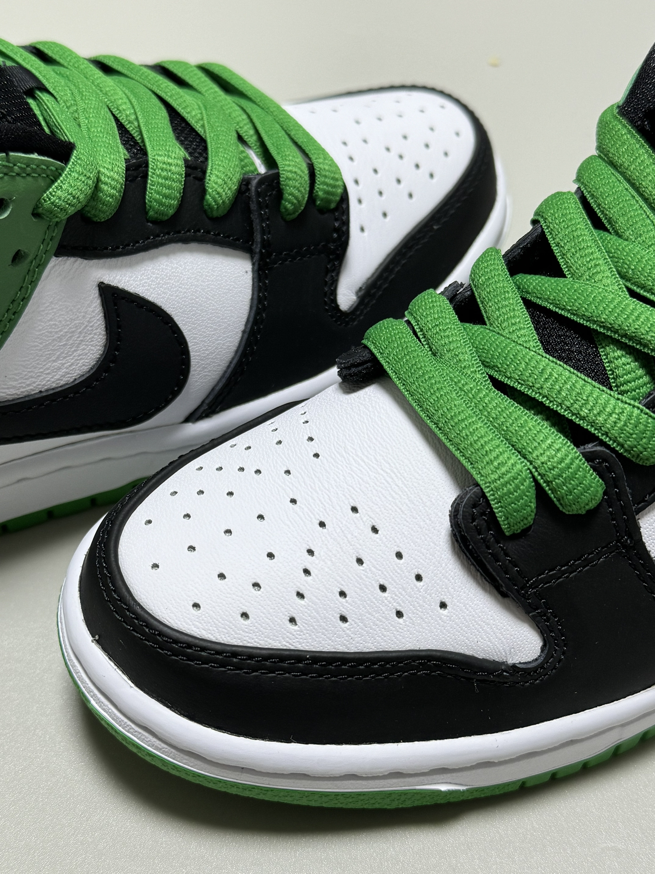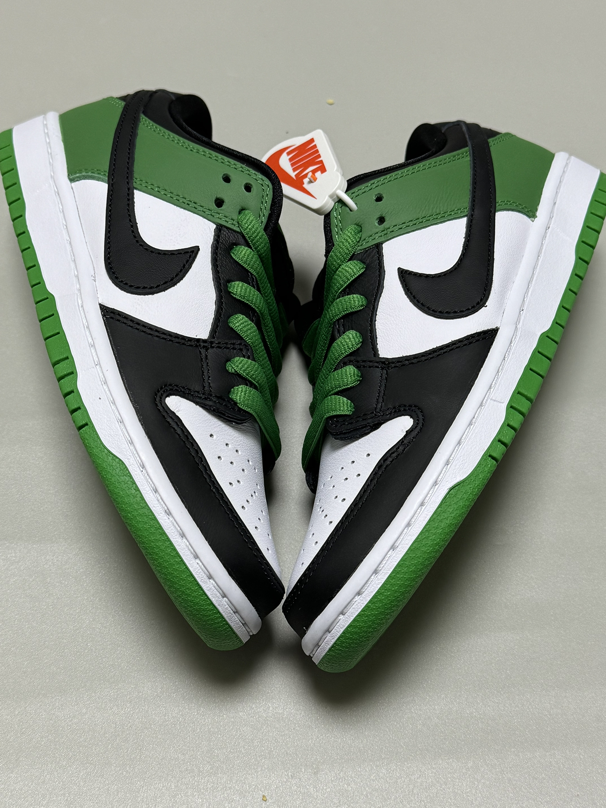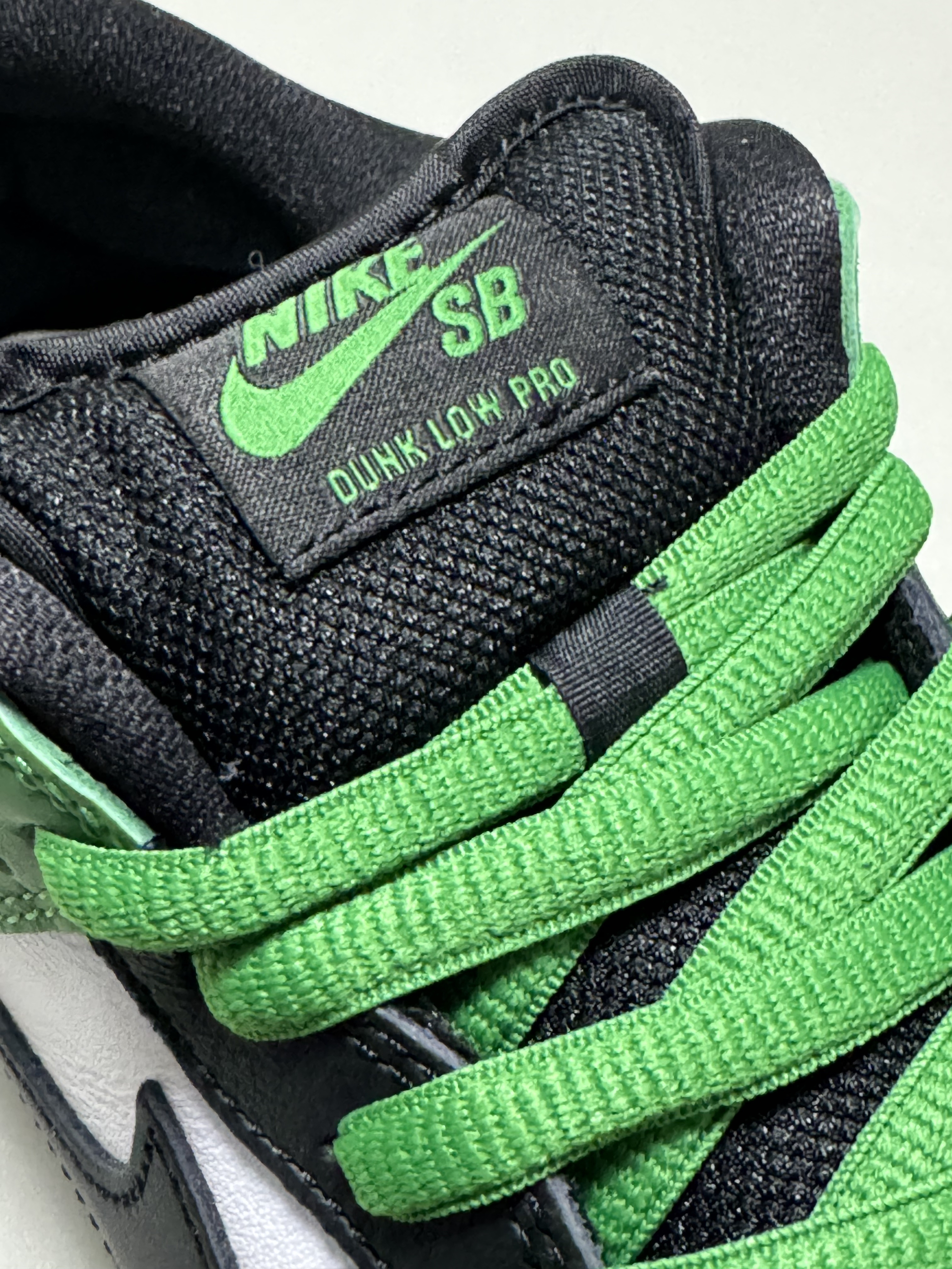 halo 阿迪来了,本期分享的潮鞋是这双Dunk sb Pro “黑绿脚趾”! 整双鞋的细节,是以黑脚趾的调色板进行打造,同时在后跟位置改为绿色呈现, 使用的是Air Jordan 1经典的脚趾设计风格替换为了绿色,搭配上厚鞋舌和低帮鞋型也非常好看。 鞋舌上的 Nike 标签以黑底绿字打造,呼应鞋身造型。 最后以白色中底搭配绿色外底收尾,完善整体造型设计。 总的来说,这双dunk sb low “...