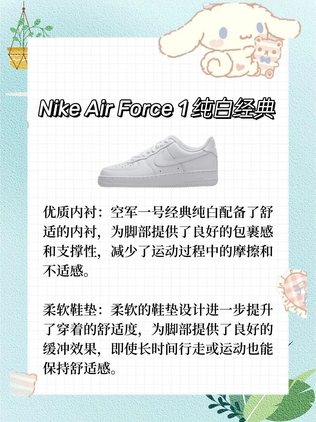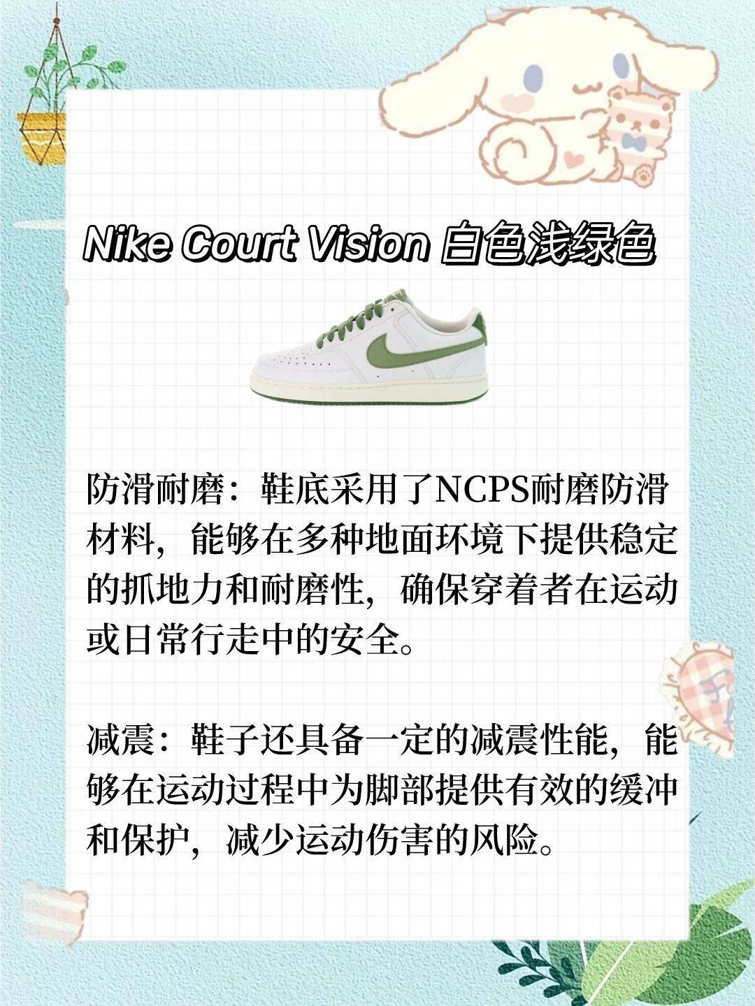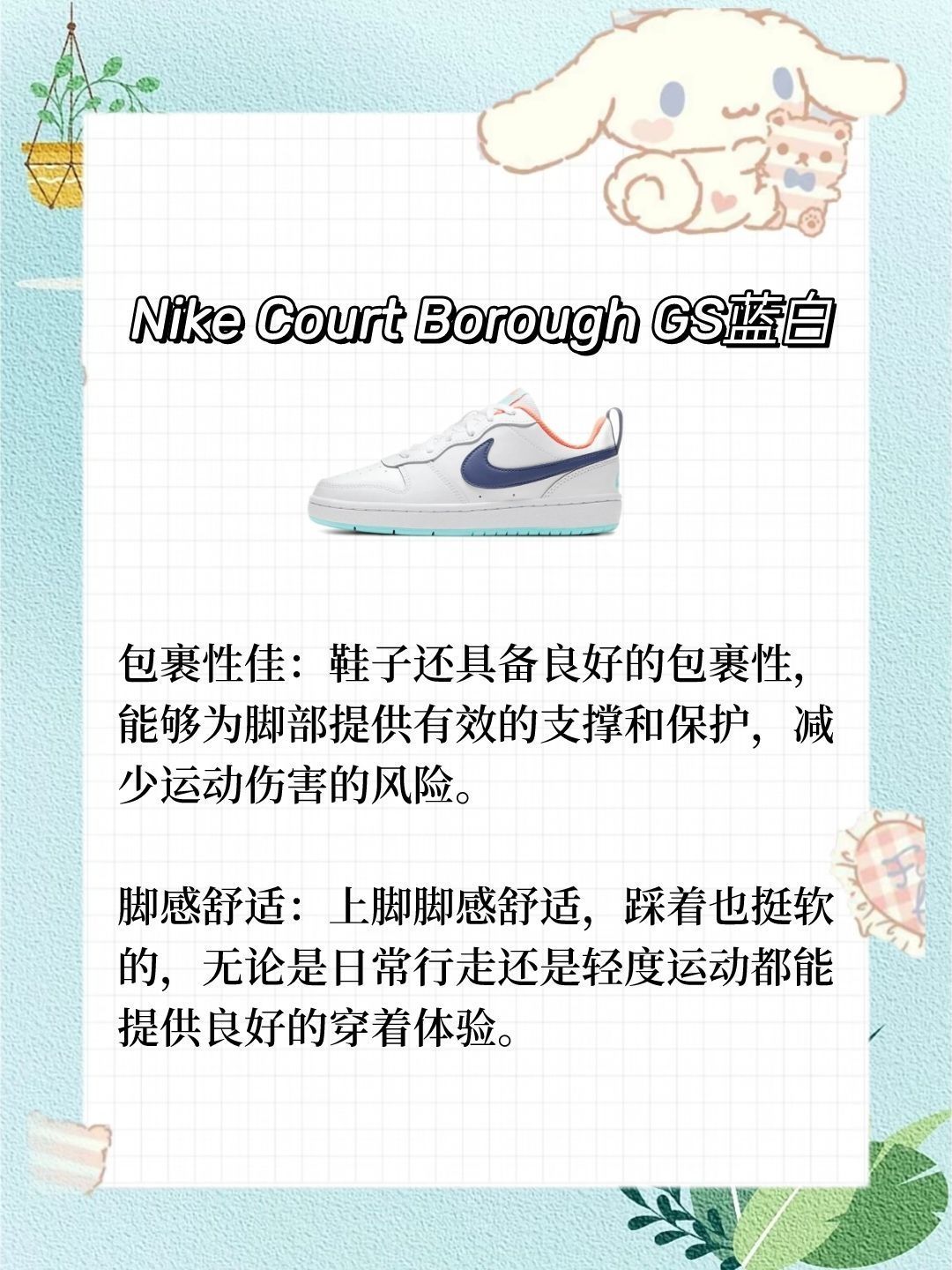 本篇笔记关联了Nike Air Force 1 空军一号 板鞋 轻便舒适百搭耐磨 纯白经典、Nike Court Borough 2 板鞋 复古时尚支撑舒适百搭 GS/蓝白、Nike Court Vision 板鞋 复古缓震抓地 低帮/白色/浅绿色等商品,为用户提供真实的使用体验和购买参考。