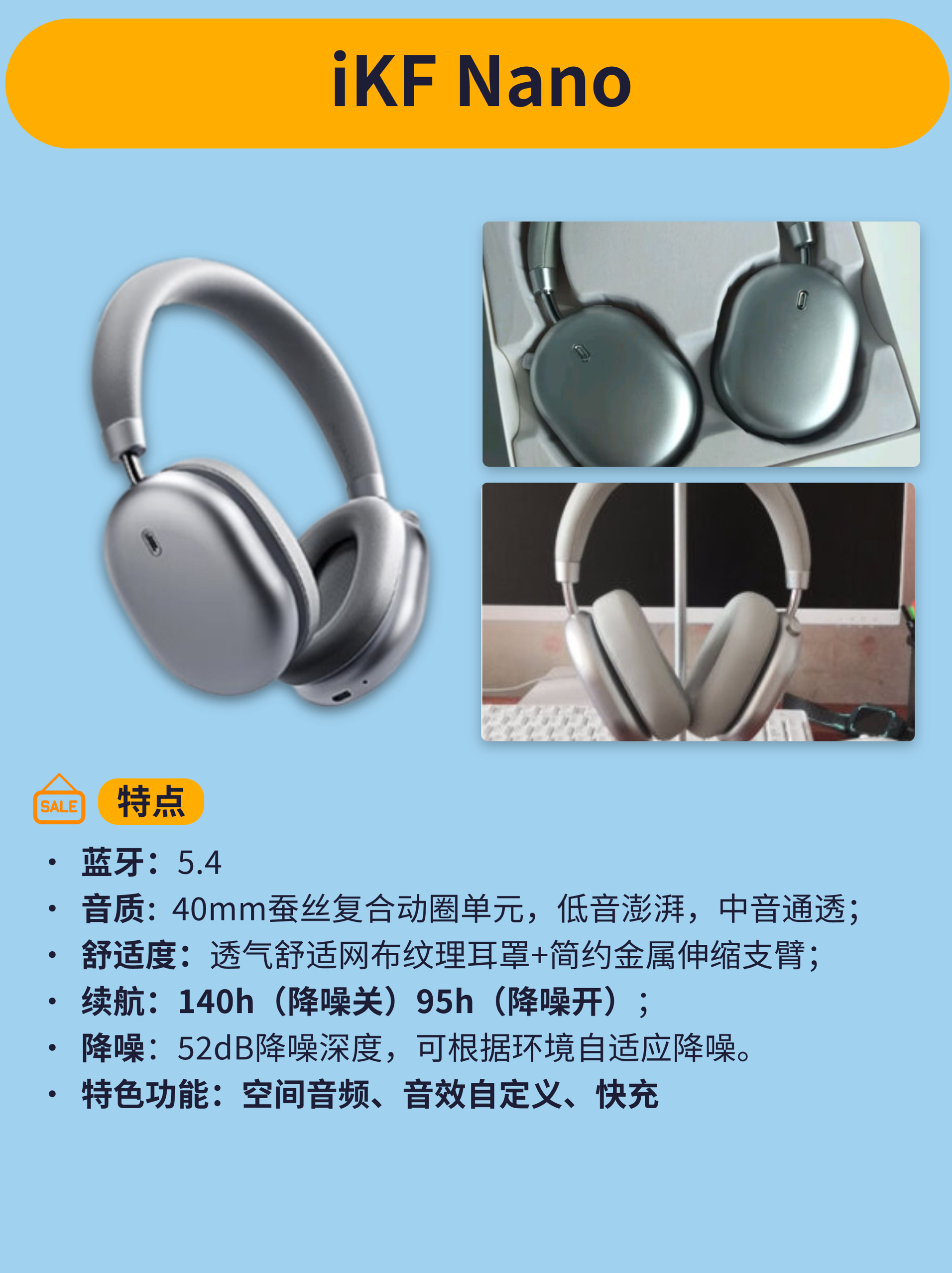 本篇笔记关联了Sony/索尼 WH-CH520 头戴式 无线 耳机 超长续航 网课 通话降噪 舒适佩戴 英语学习 重低音 立体声 日常能手 高舒适 黑色、JBL/杰宝 TUNE720BT 头戴式 蓝牙 耳机 免提通话 降噪 长效续航 网课 纯正低频音效 深空黑、IKF Nano 头戴式 蓝牙 耳机 主动降噪 自适应 音频版 长续航 高音质 空间音效 极光银等商品,为用户提供真实的使用体验和购买参考。