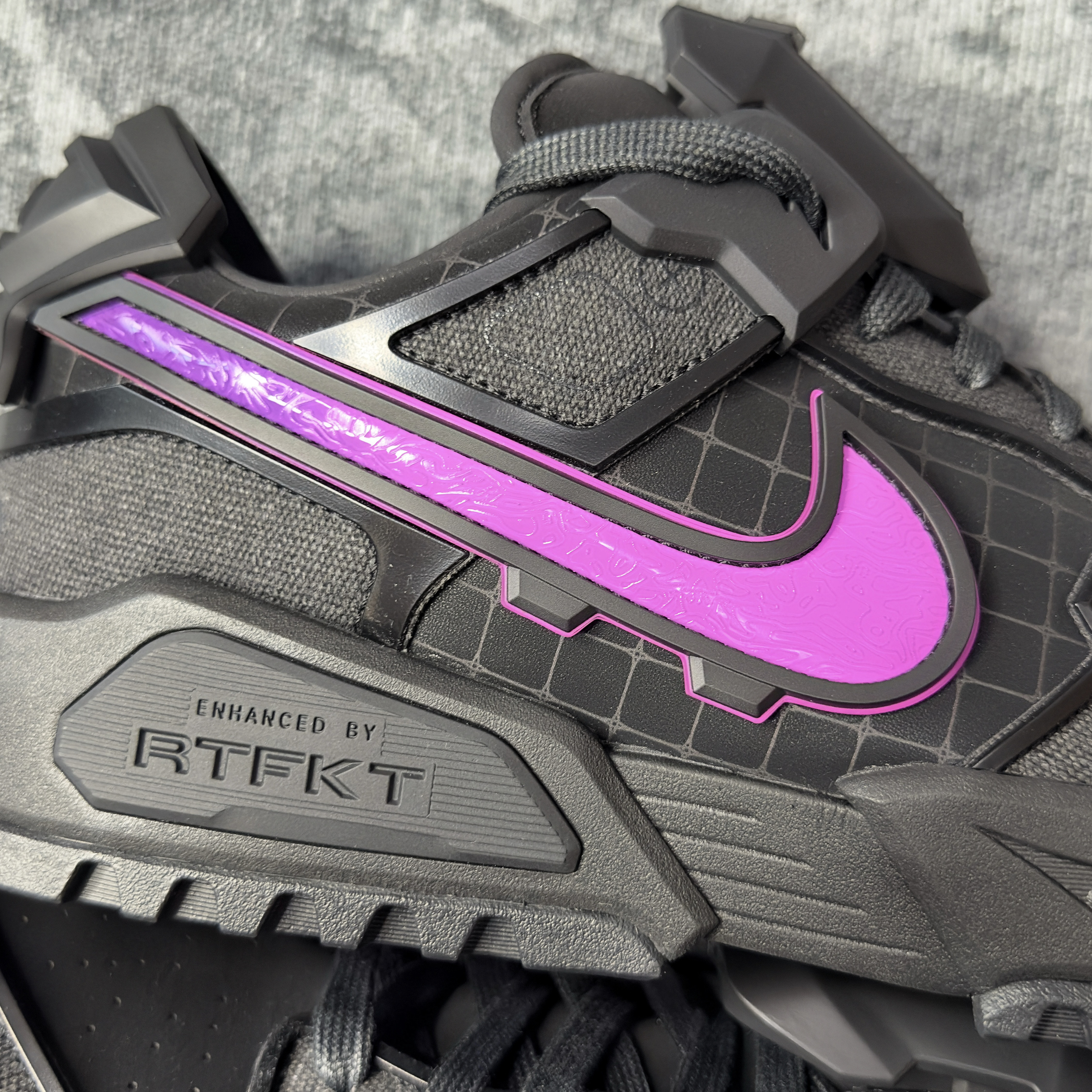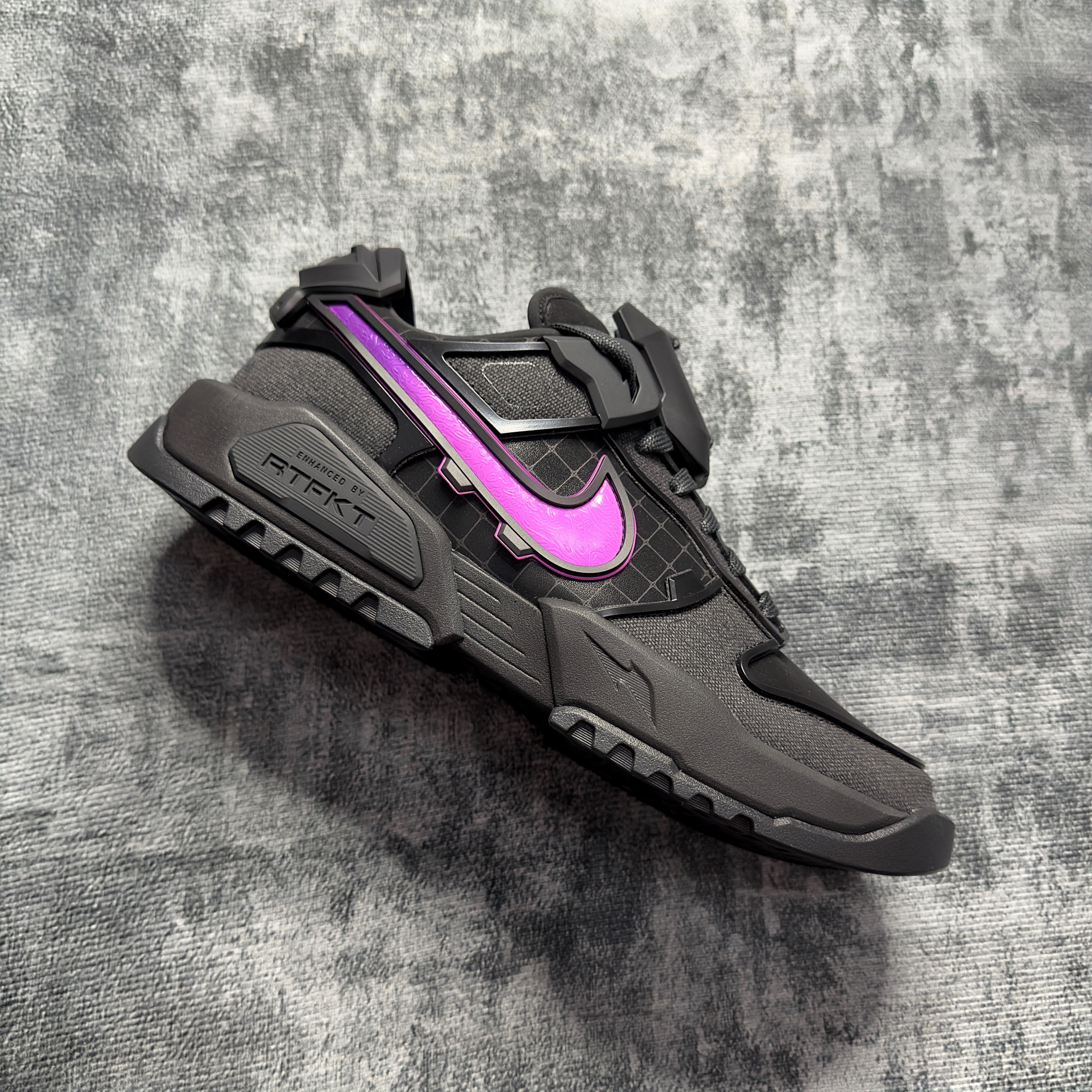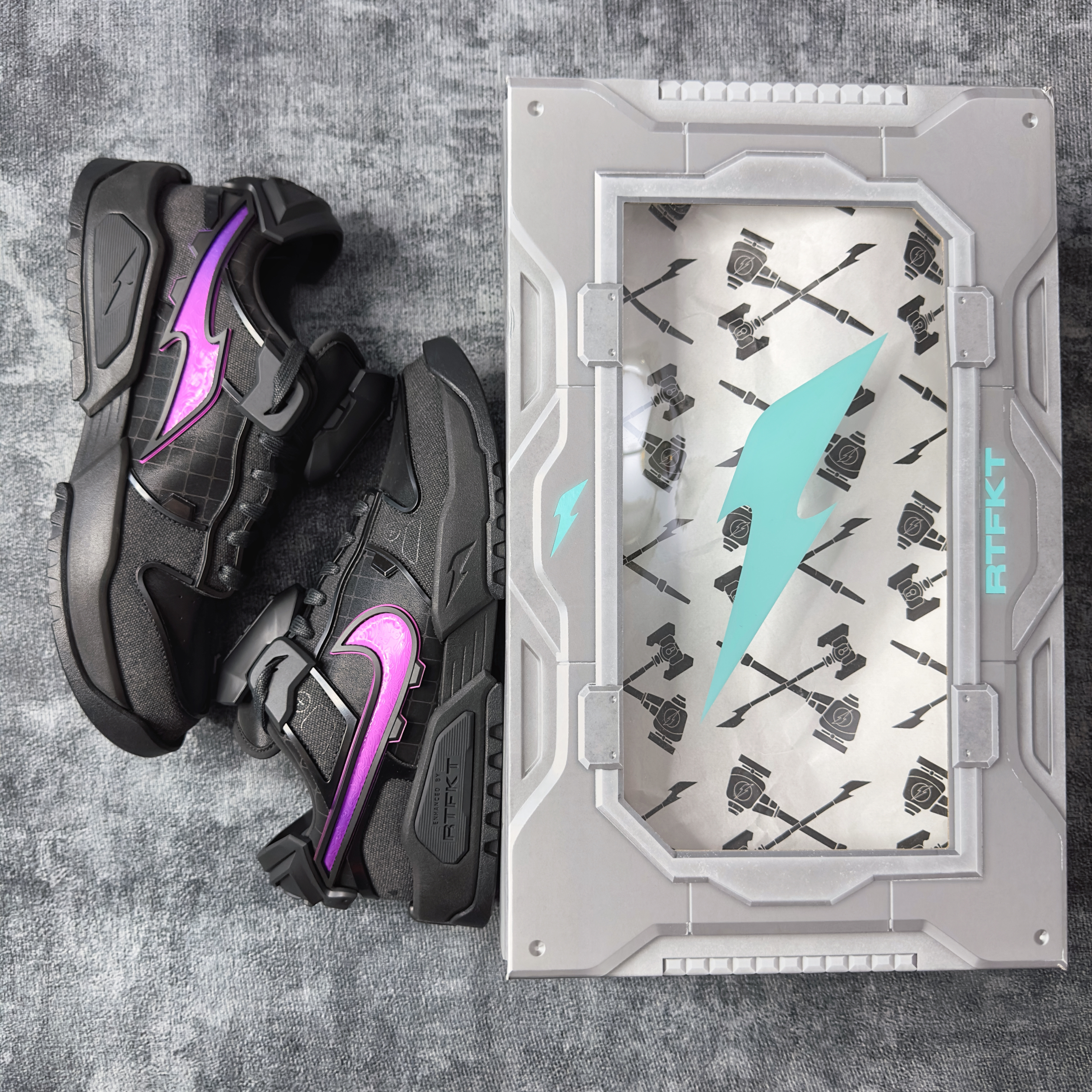 今日开箱,NIKE x RTFKT dunk 虚拟照进现实即视感,超过细节设计,鞋舌后跟两块挡板可以根据个人需求自行拆卸和安装。鞋舌上还可以按安装附带的胶囊~ 超有设计感的一双dunk。帅惨了!!!