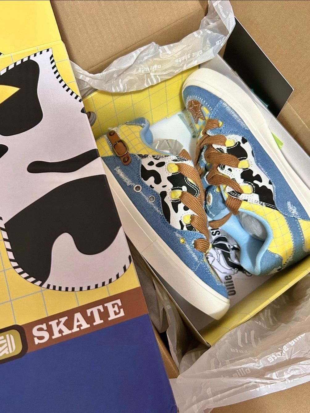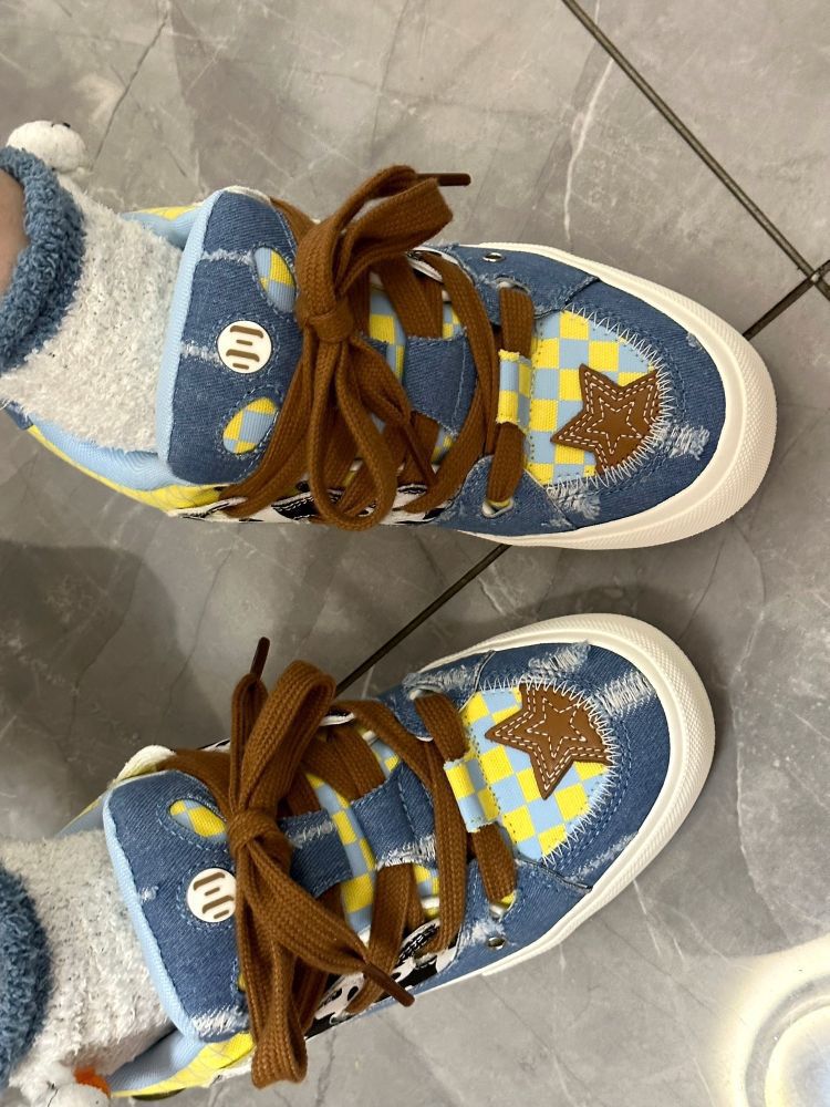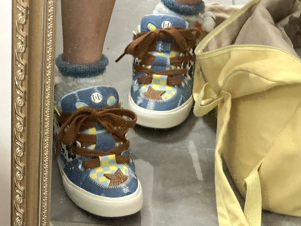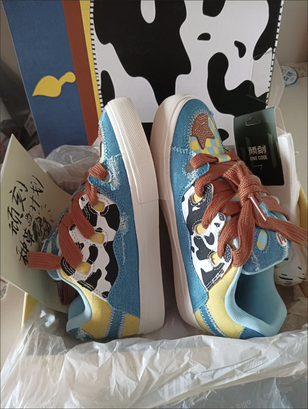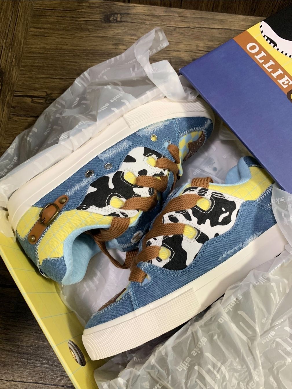 🛒好物名称:顽刻ollieskate面包鞋奶牛纹牛仔帆布拼接复古BAKE男女休闲滑板鞋 🤔推荐理由:奶牛纹牛仔帆布拼接的设计,为这款鞋子增添了独特的复古感,同时保持了现代的时尚元素。鞋面采用牛仔帆布材质,这种材质耐磨且透气,适合休闲穿着。