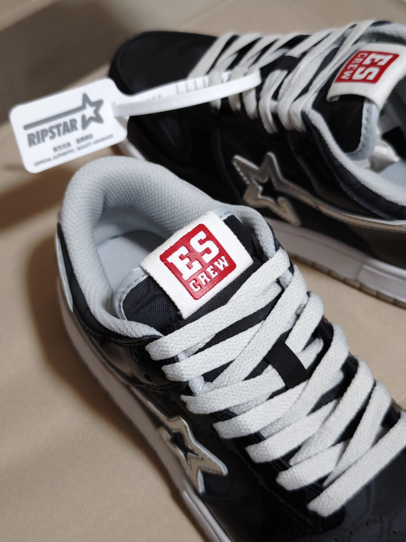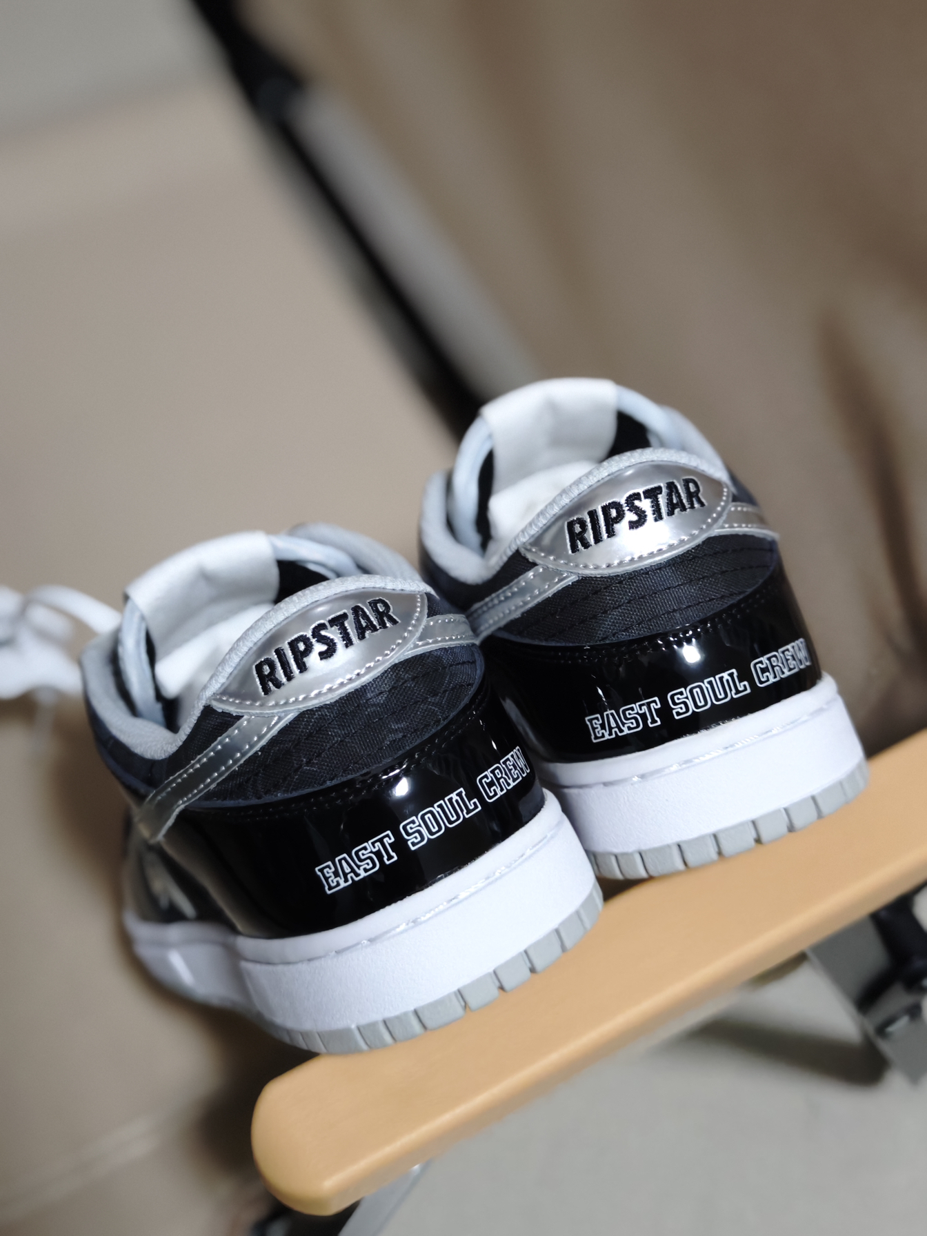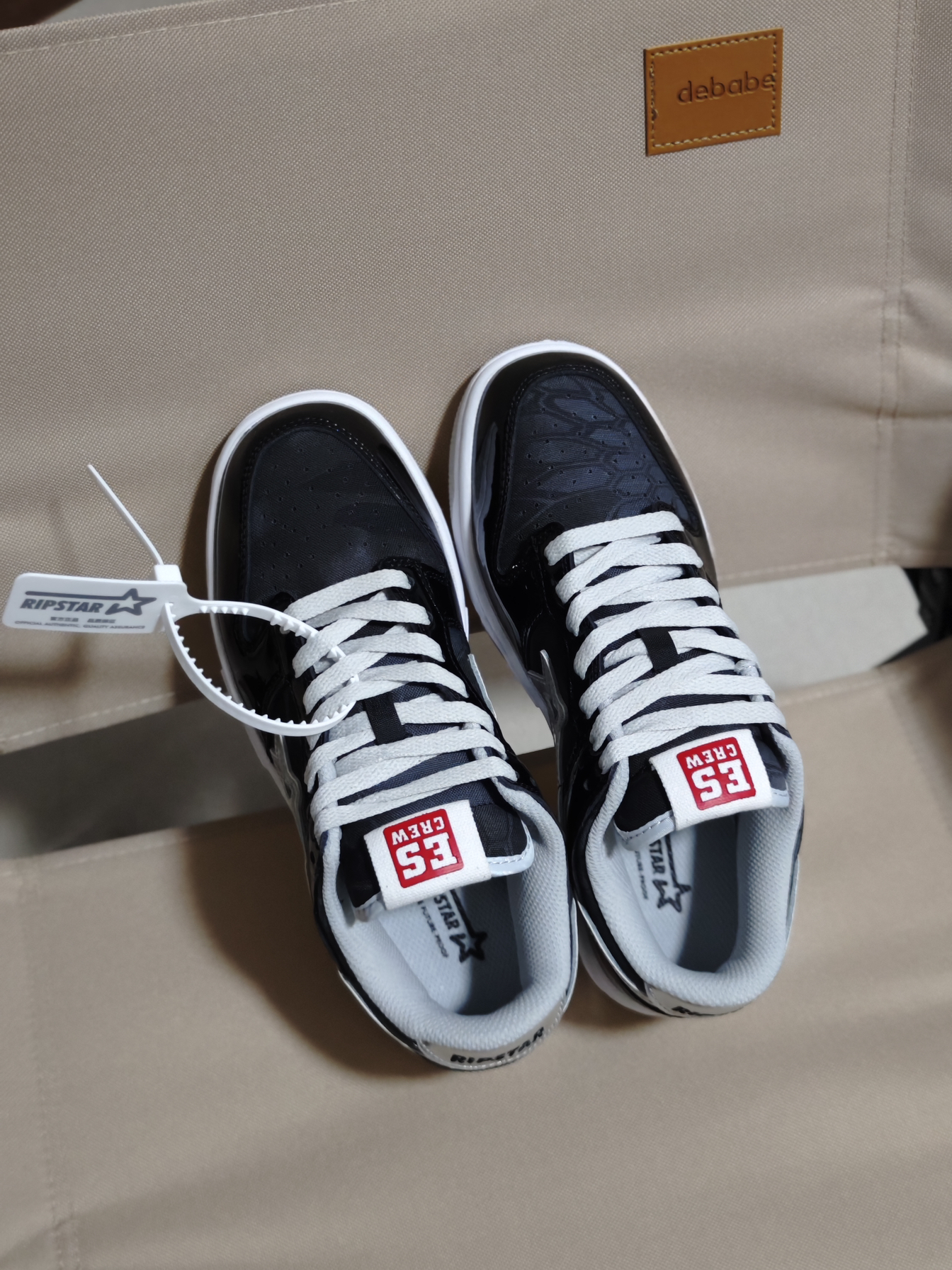 夏日通勤,百搭的板鞋还是一定要的,小白鞋又不耐脏,那么来一双黑白灰的就对了!这双RIPSTAR爆炸星「东魂」配色就很适合。 鞋面漆皮➕龙鳞暗纹,黑色为主看着低调又不失个性,充满联名印花的鞋带和侧面流星logo,整体颜值不错。 最特别的还是内层是CORDURA防水面料,应对现在不稳定的天气真是太实用啦!