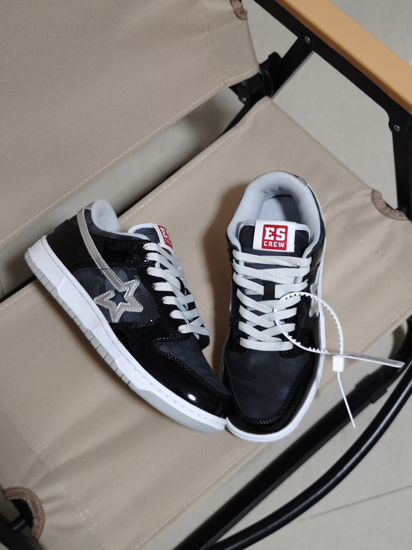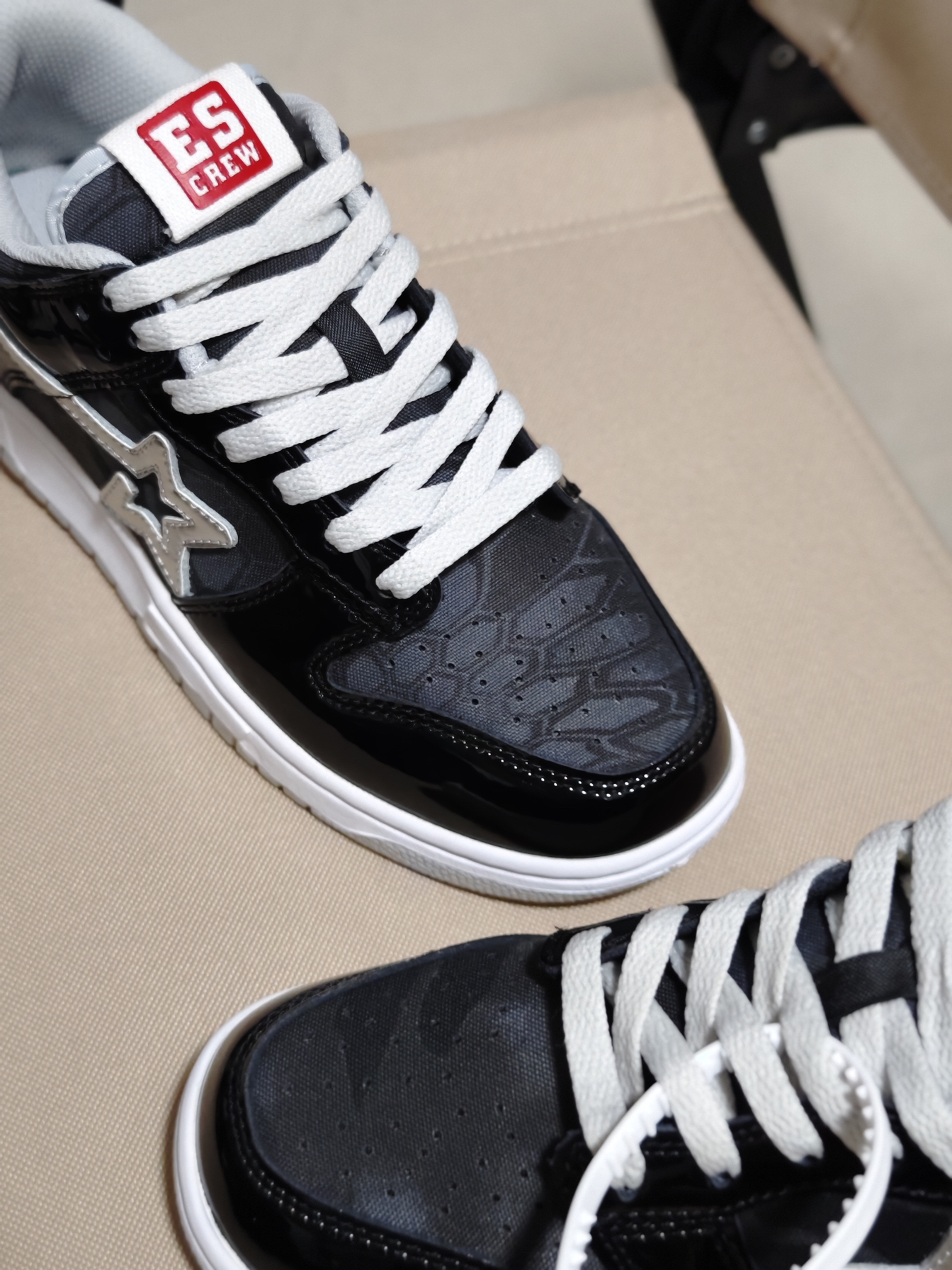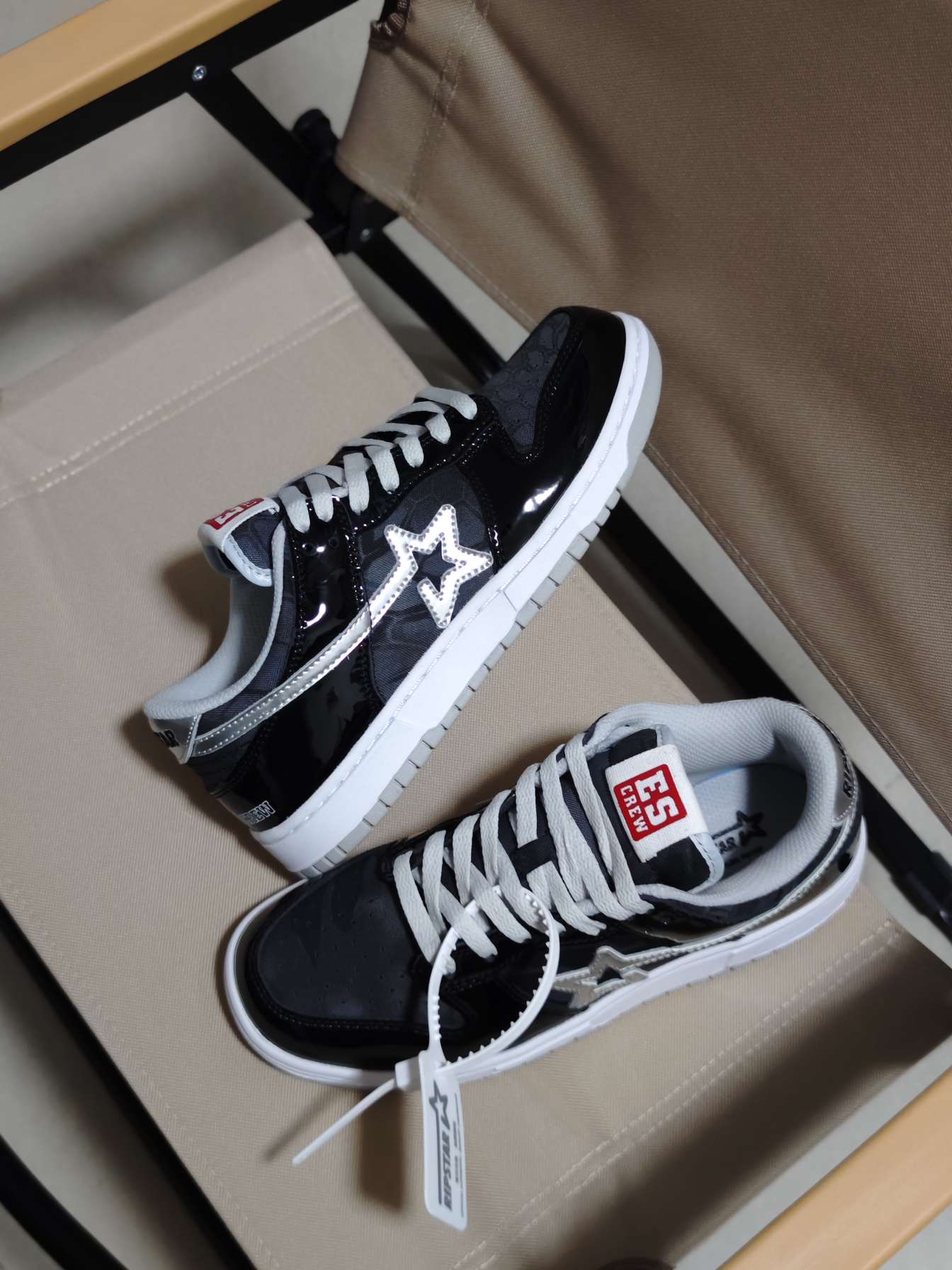 夏日通勤,百搭的板鞋还是一定要的,小白鞋又不耐脏,那么来一双黑白灰的就对了!这双RIPSTAR爆炸星「东魂」配色就很适合。 鞋面漆皮➕龙鳞暗纹,黑色为主看着低调又不失个性,充满联名印花的鞋带和侧面流星logo,整体颜值不错。 最特别的还是内层是CORDURA防水面料,应对现在不稳定的天气真是太实用啦!