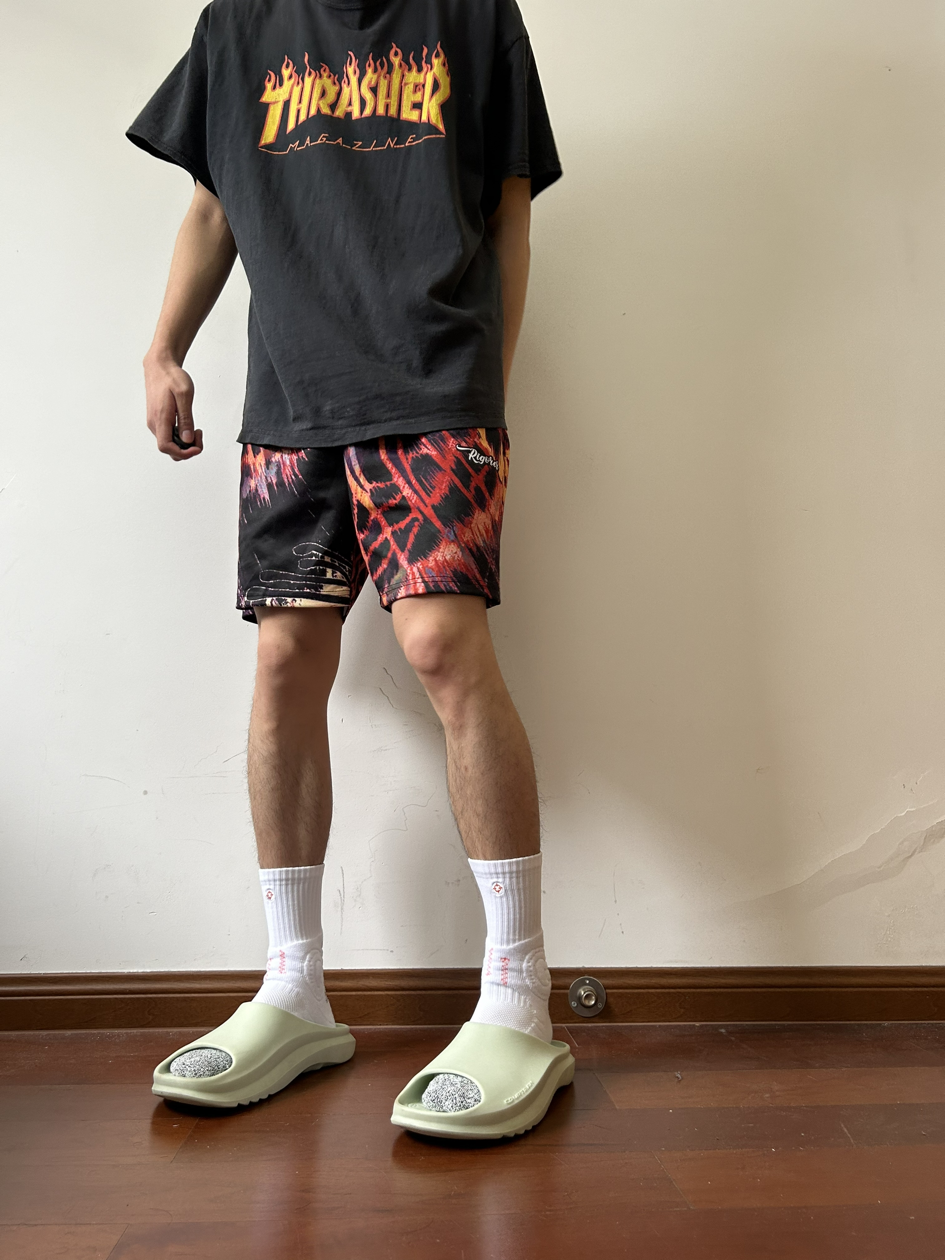 本篇笔记关联了【杨舒予同款】 Thrasher 字母热浪滑板火焰印花大LOGO圆领短袖T恤 黑/黄火焰、【超级草根同款】准者 数码丛林法则花透气直筒四分裤冰丝运动短裤 Z124213120 帝王蝶等商品,为用户提供真实的使用体验和购买参考。