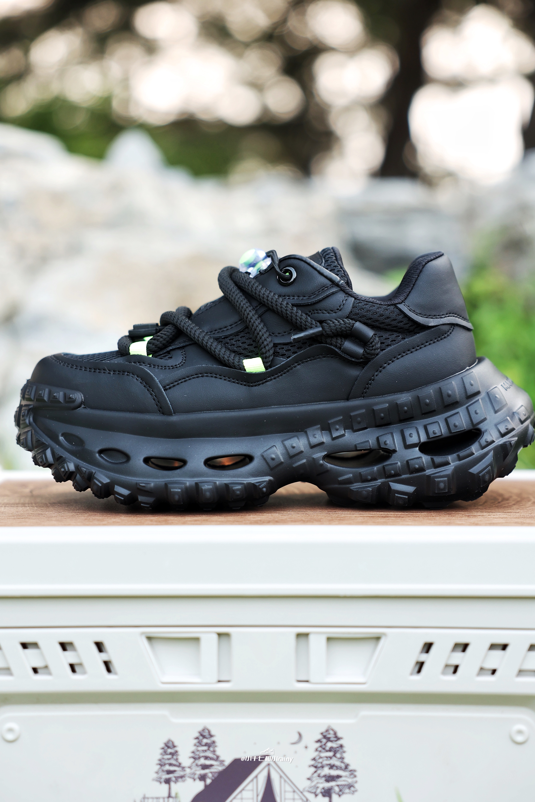 黑色的老爹鞋真的太太上头了!机甲增高风谁能不爱呢?! 推荐理由 有一说一!今天带来的这双老爹鞋!应该没人能拒绝它!真的太帅了!无论是设计还是脚感!都是特别不错! 实物质感 马克华菲真的太会了!这样设计的老爹鞋,也就走在潮流一线的品牌可以设计出来!从来没想过老爹鞋可以这么有风格!首先整体鞋型的设计,很是动感!区别于市面上千篇一律的鞋子!材质选用皮革和网布拼接,透气性没得说!鞋带也选用结构风的设...