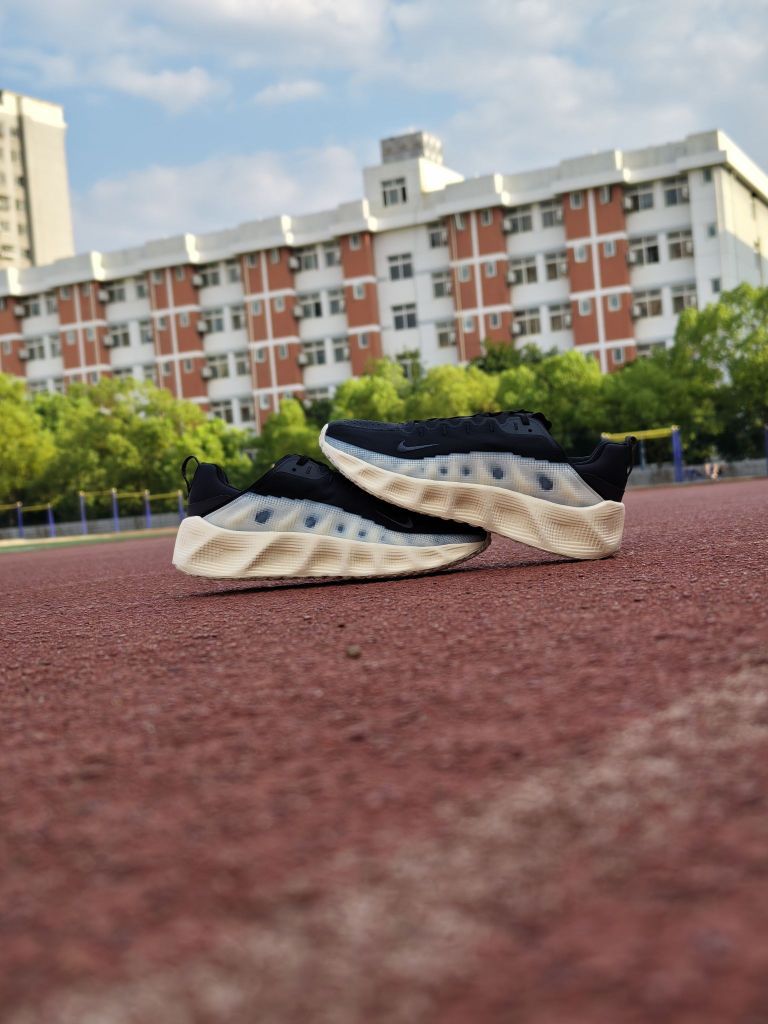 看起来很像一双网面跑鞋,但实际上在鞋头网格下面还有一层,而侧墙看起来像网面一样的地方,其实是印花,只能说这些设计主打一个特立独行,很有风格🤣