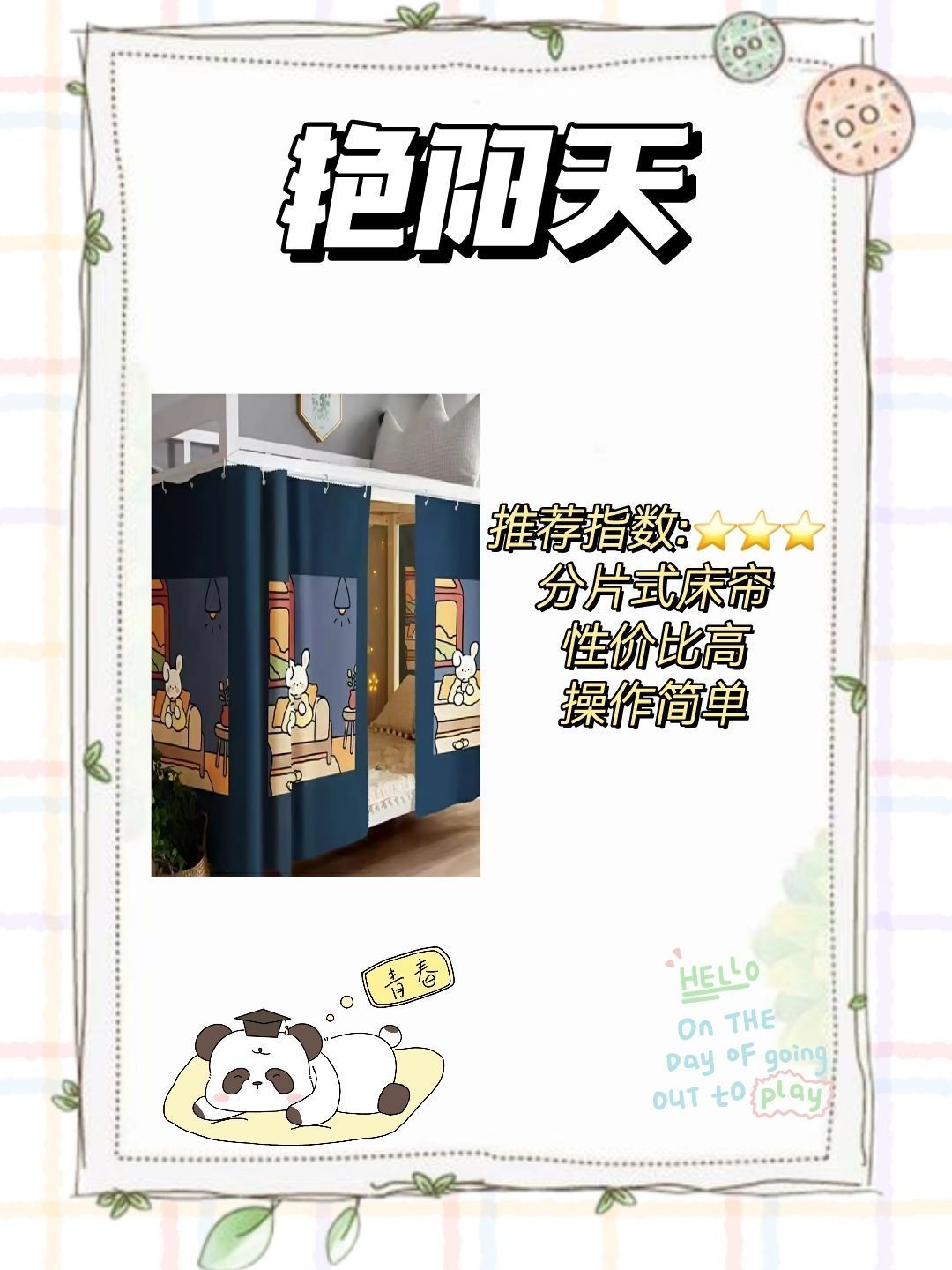 🌼高考过后,各位准大学生们是不是开始准备挑选开学的新装备了?而其中,床帘是必不可少。在这里,我推荐以下四种品牌的床帘。来看看,它们有什么不同吧。 🌸艳阳天床帘 优点: 材质优良:艳阳天的床帘通常采用优质面料,触感丝滑,不起球,耐磨耐用。 遮光性强:全封闭设计,遮光效果佳,适合对光线敏感或需要良好睡眠环境的人群。 设计人性化:部分款式带有储物袋或支架,方便储物和安装,提升使用便捷性。 性价比高:价格...