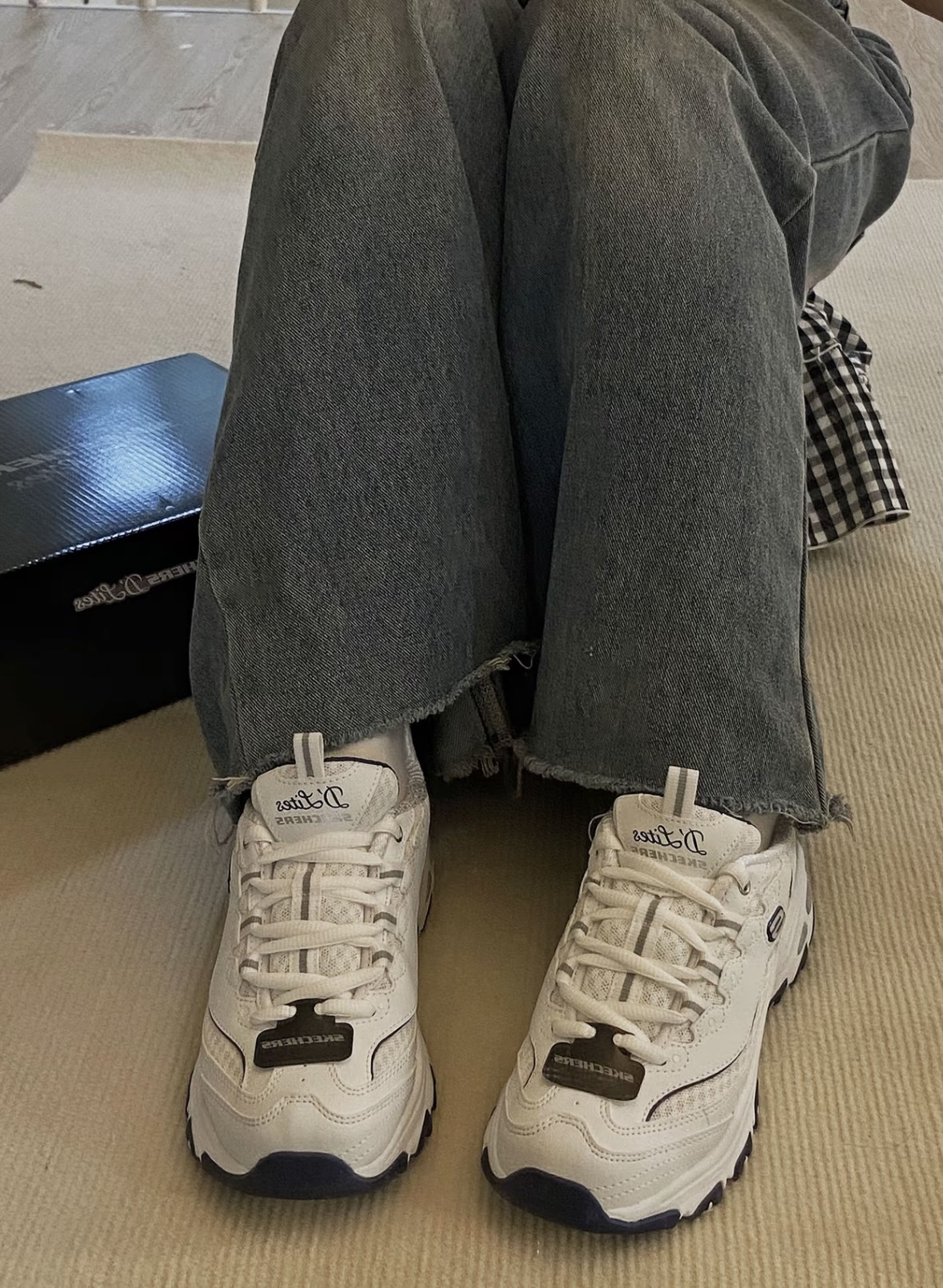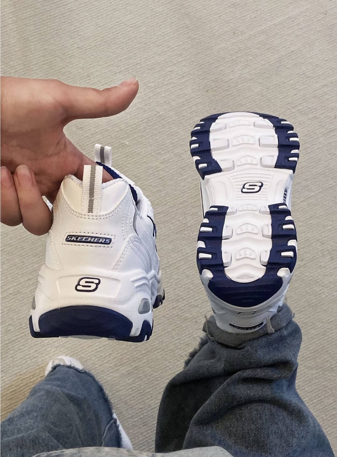 本篇笔记关联了Skechers/斯凯奇 D'Lites 1.0 奶茶熊 熊猫鞋 老爹鞋 闪穿鞋 厚底增高复古缓震百搭 低帮/女款/白色/海军蓝等商品,为用户提供真实的使用体验和购买参考。