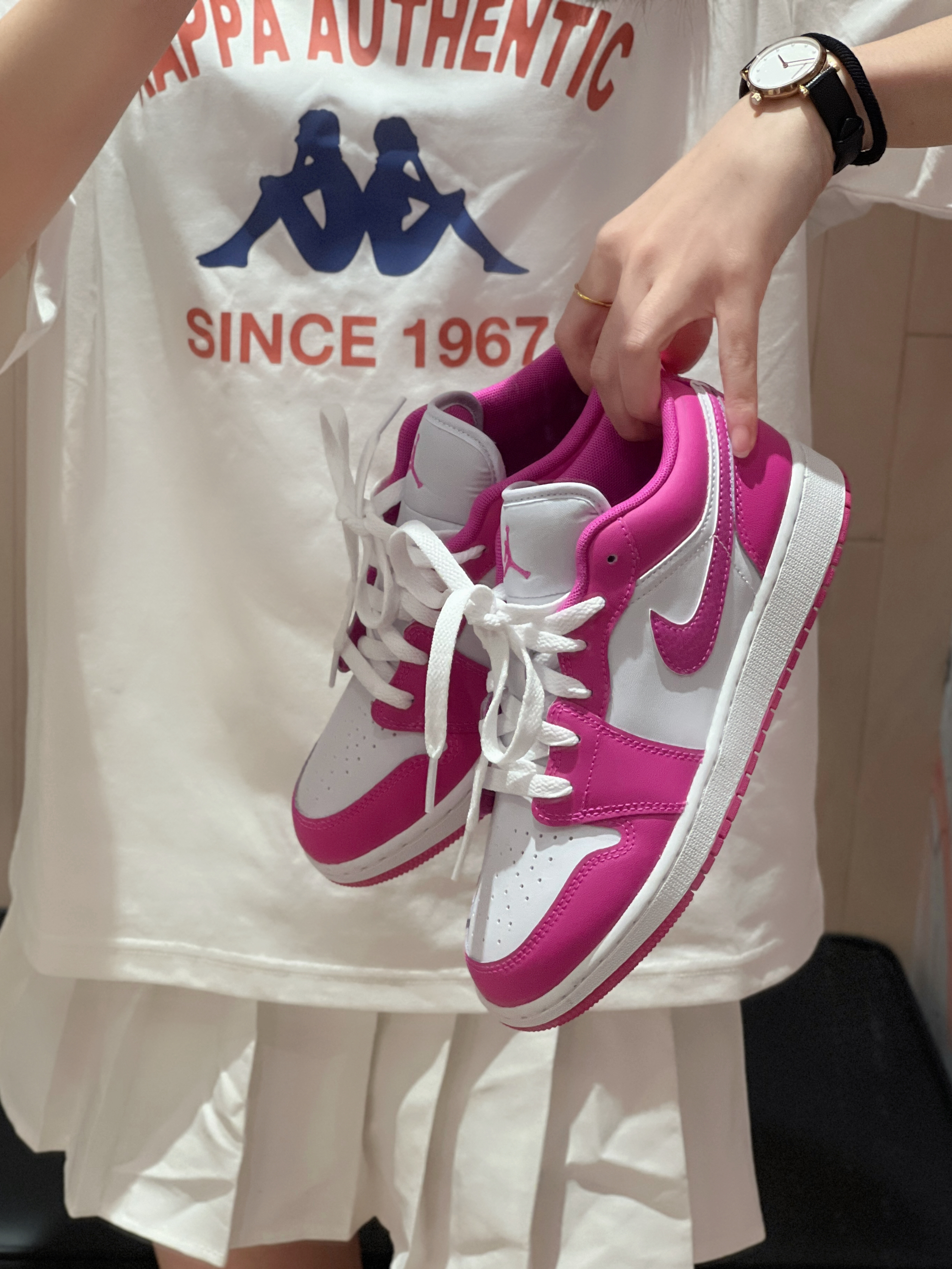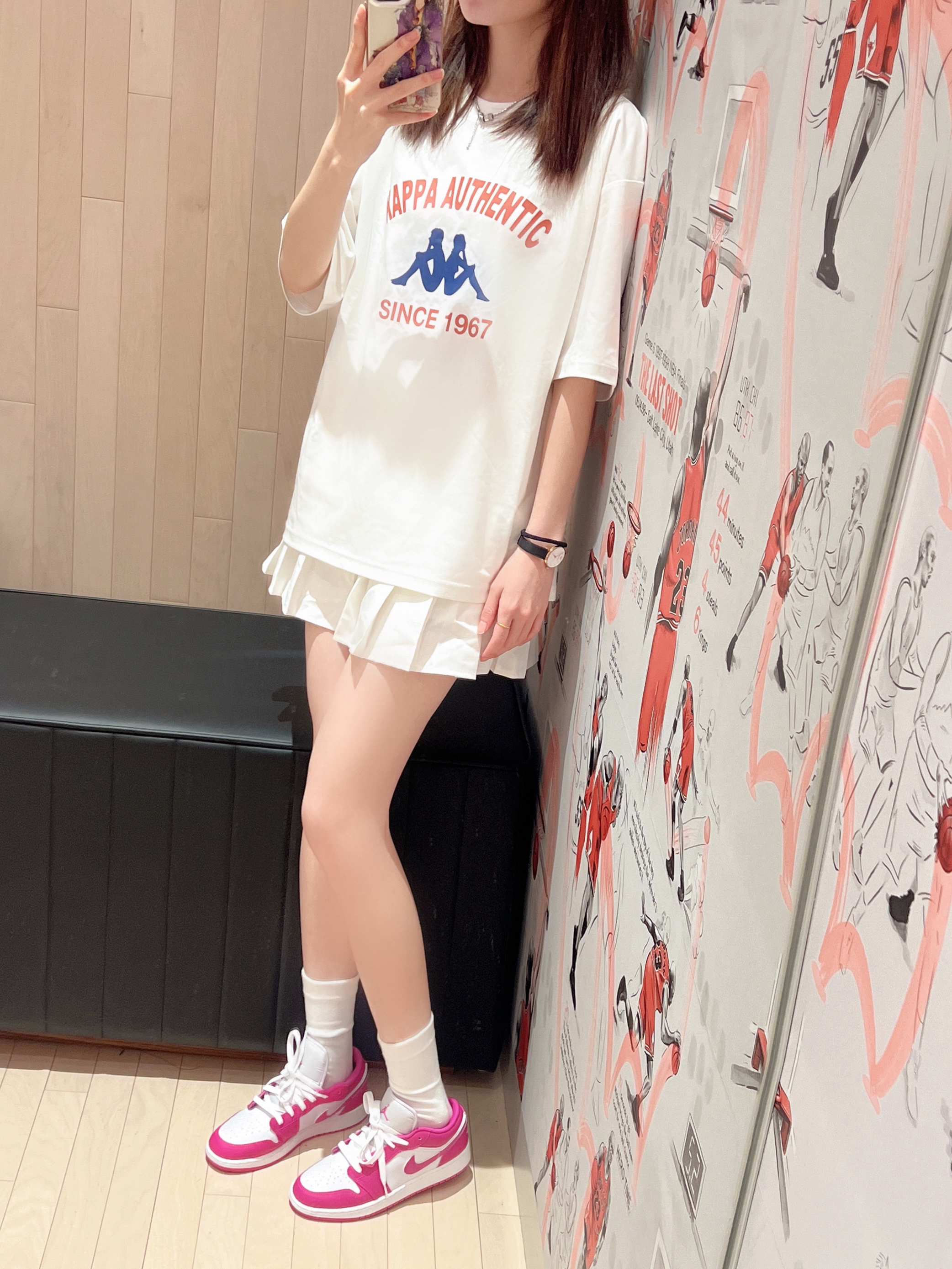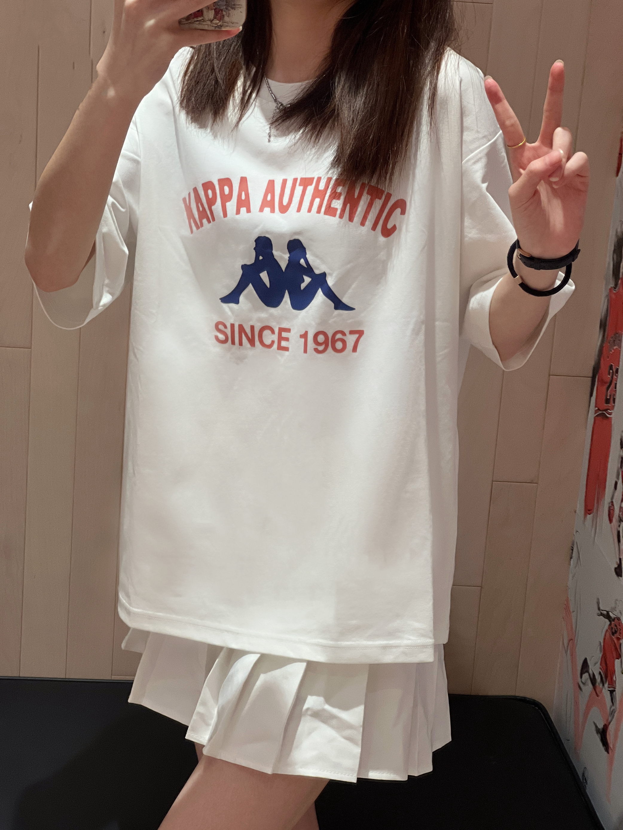 干净的穿搭真的太爱啦~ 今日上衣是 Kappa 🏠滴 简单经典款式T恤 果然好搭✌️ 版型不错宽松版的 也不会特宽呢 面料主动个舒服 不错👍 👧166/43kg M码 搭配简单的白裙好喜欢😍 再搭配AJ1低帮火龙果配色💗 整体就不会太多白色啦! 简单又不简约🥰