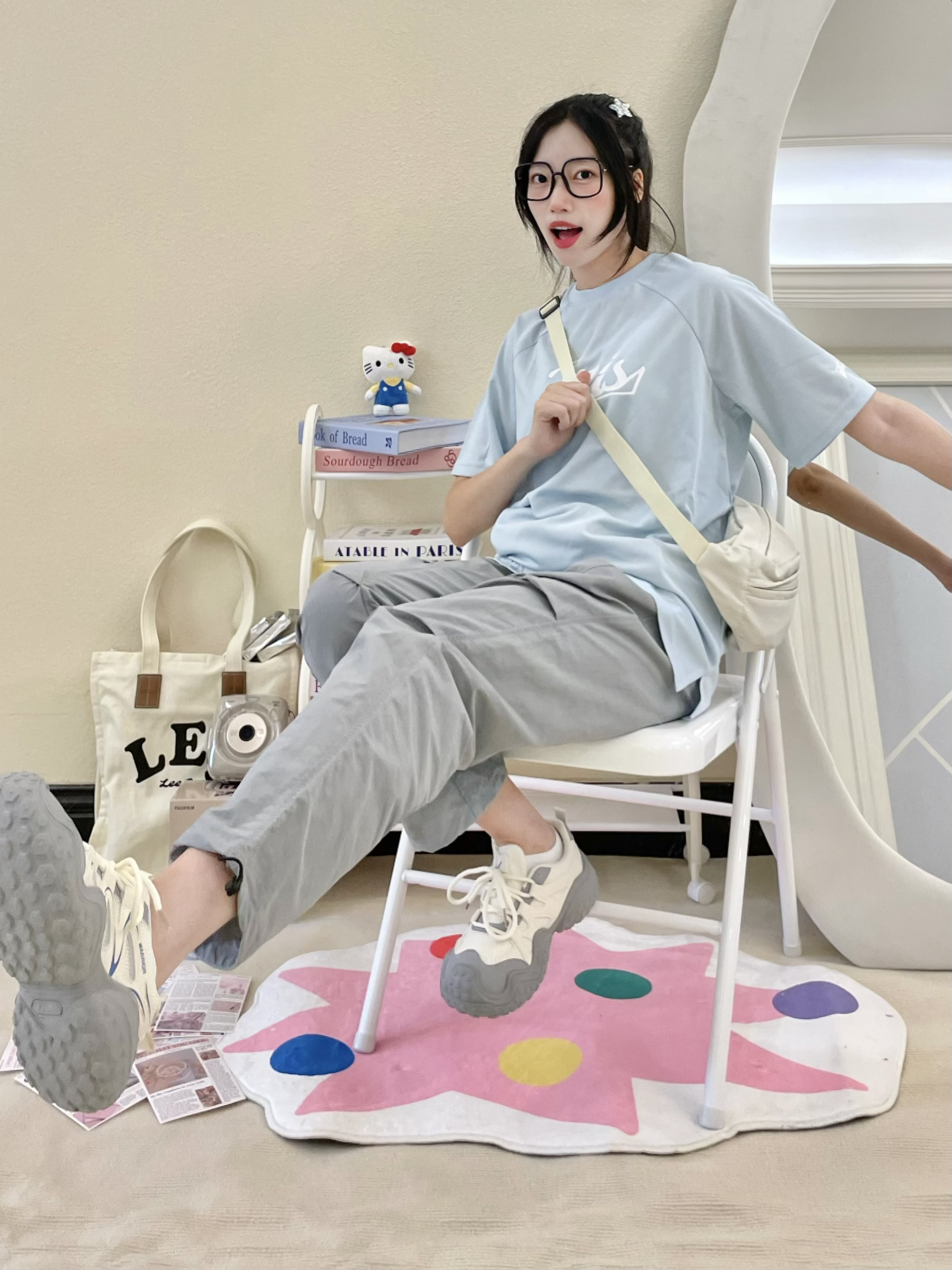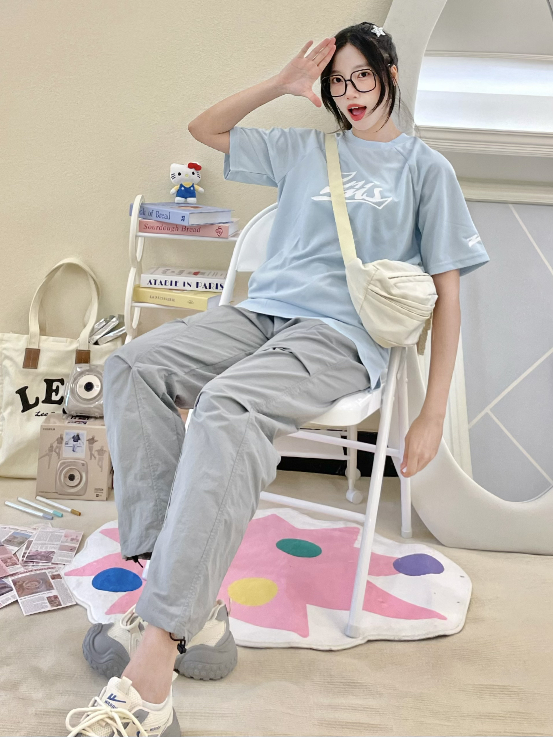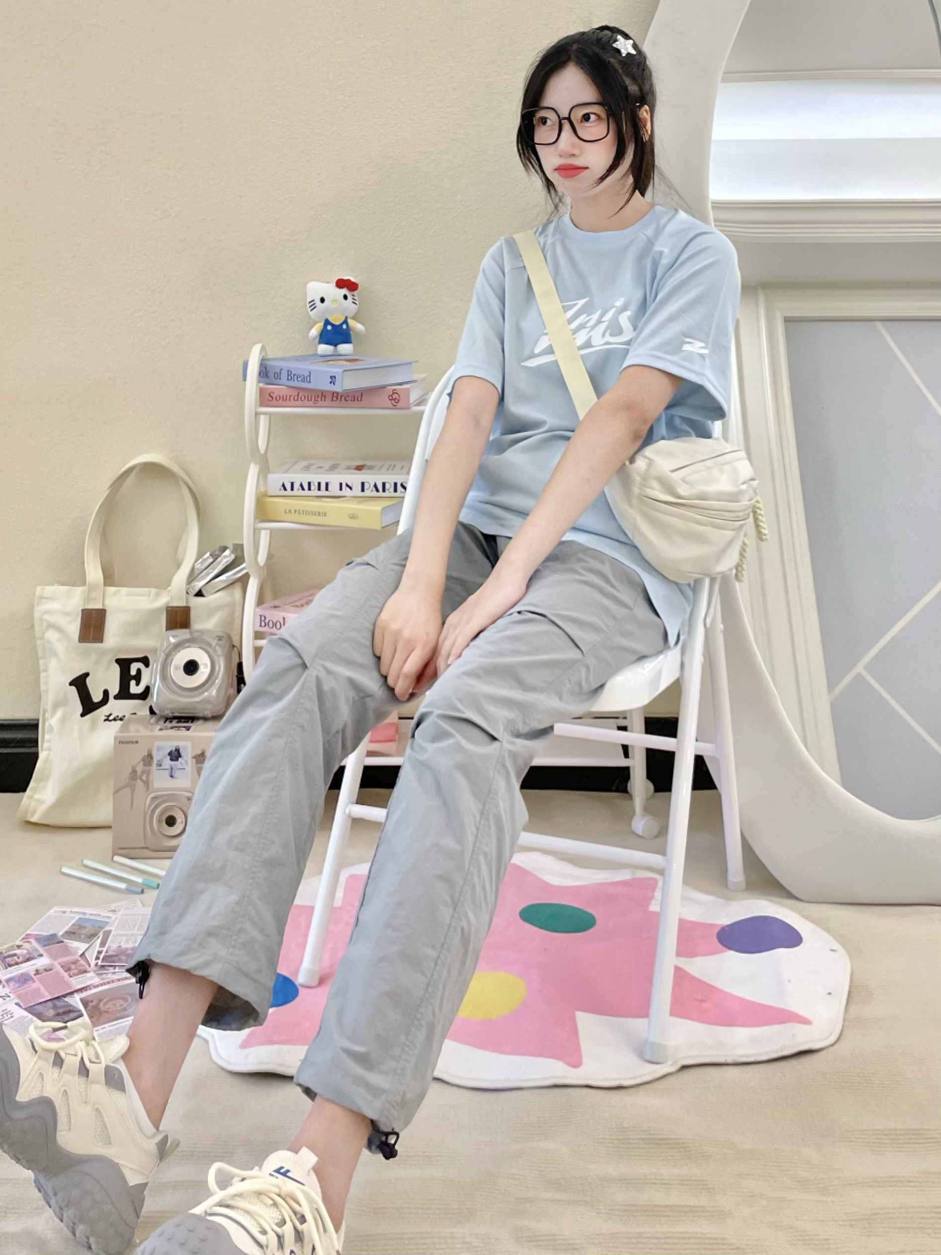 大家好吖૮ •𖥦• აᐝ我是可颂 欢迎点击今日份穿搭日记♡ᵕ̈ 速干面料短袖 真的太适合夏天啦!!! - 一到7月气温直线飙升 身上这一件短袖真的超适合夏天 浅蓝色的款式 - 🔍 参考:168cm 50kg ▪️ 短袖:有志者 ▫️ 裤子:真维斯 ▪️ 鞋子:回力 ▫️ 配饰:GF胸包