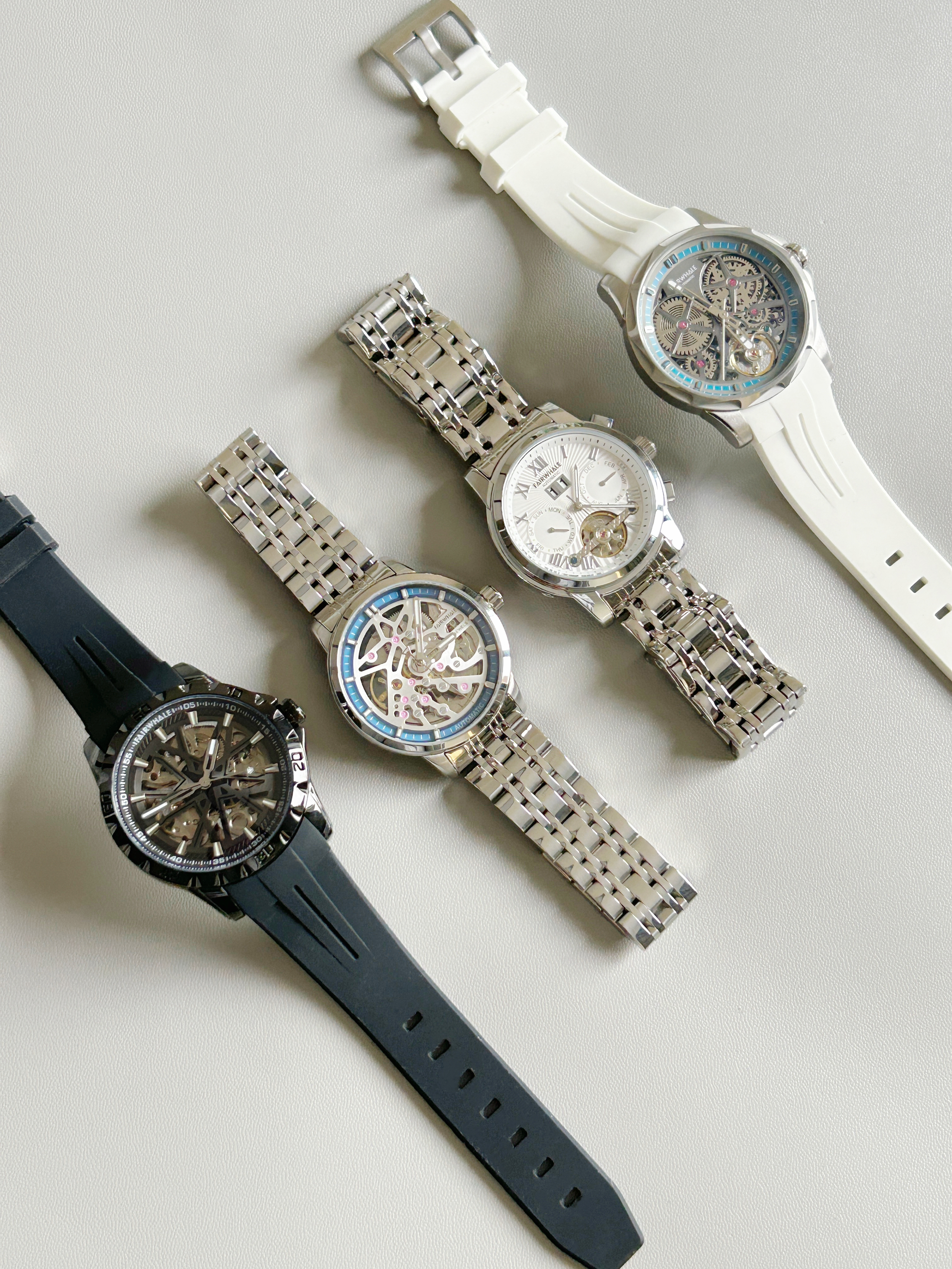 03年的弟弟马上就要工作啦我决定送他几款腕表戴~ 挖到了马克华菲家的这几款腕表 两款硅胶的和两款钢带的 每一款都是不同的风格 沉甸甸的蛮有质感呢 我个人感觉银色钢表带的比较适合商务或者正式场合佩戴 戴在手腕上高级显气质~也蛮适合弟弟工作戴 我觉得硅胶的比较休闲日常一点 弟弟平时佩戴也比较合适 四款各有各的特点 日常搭配衣服蛮好搭配的