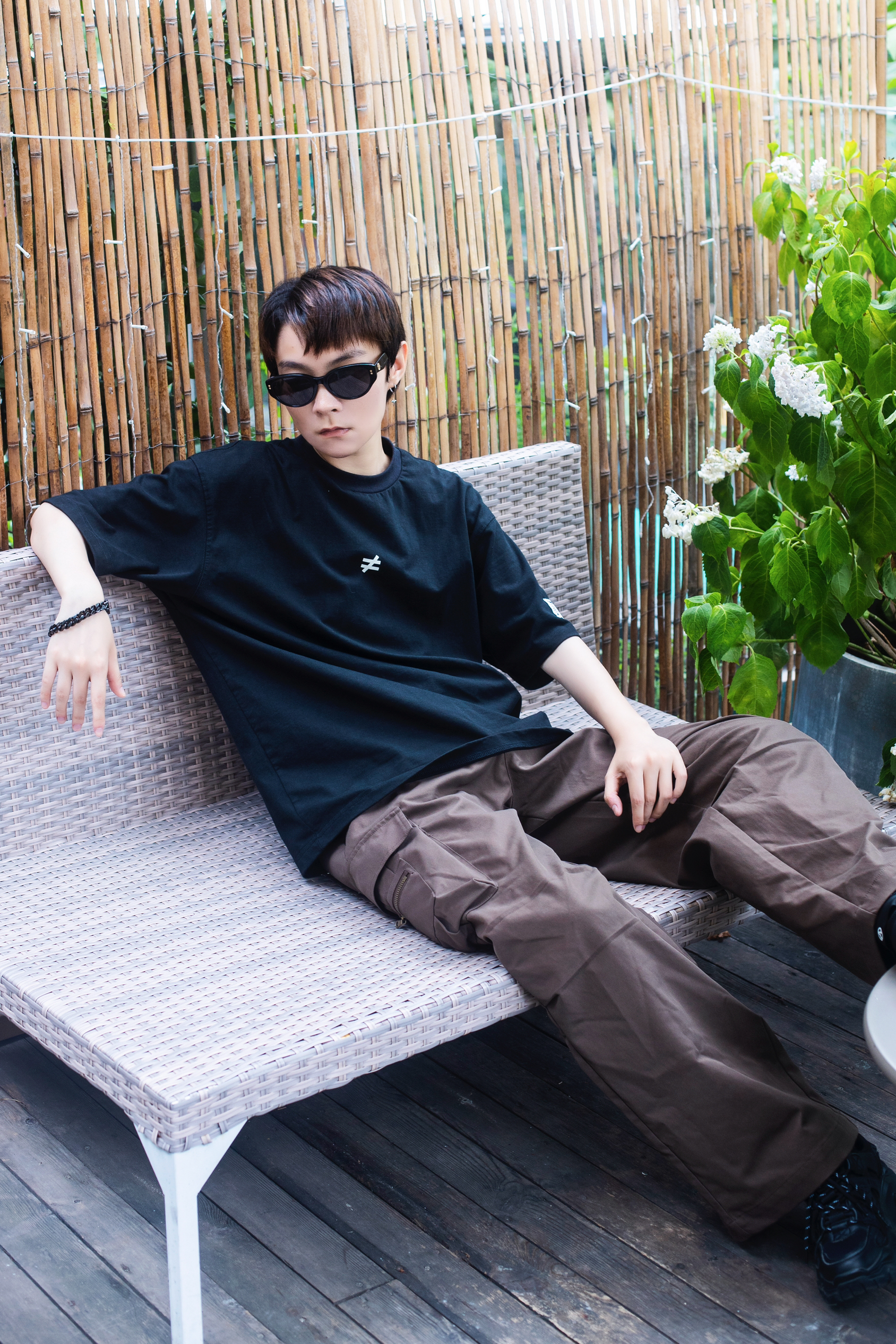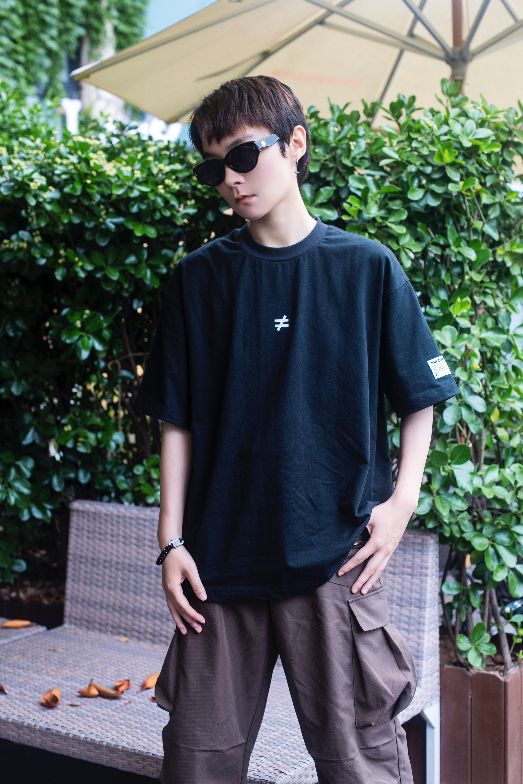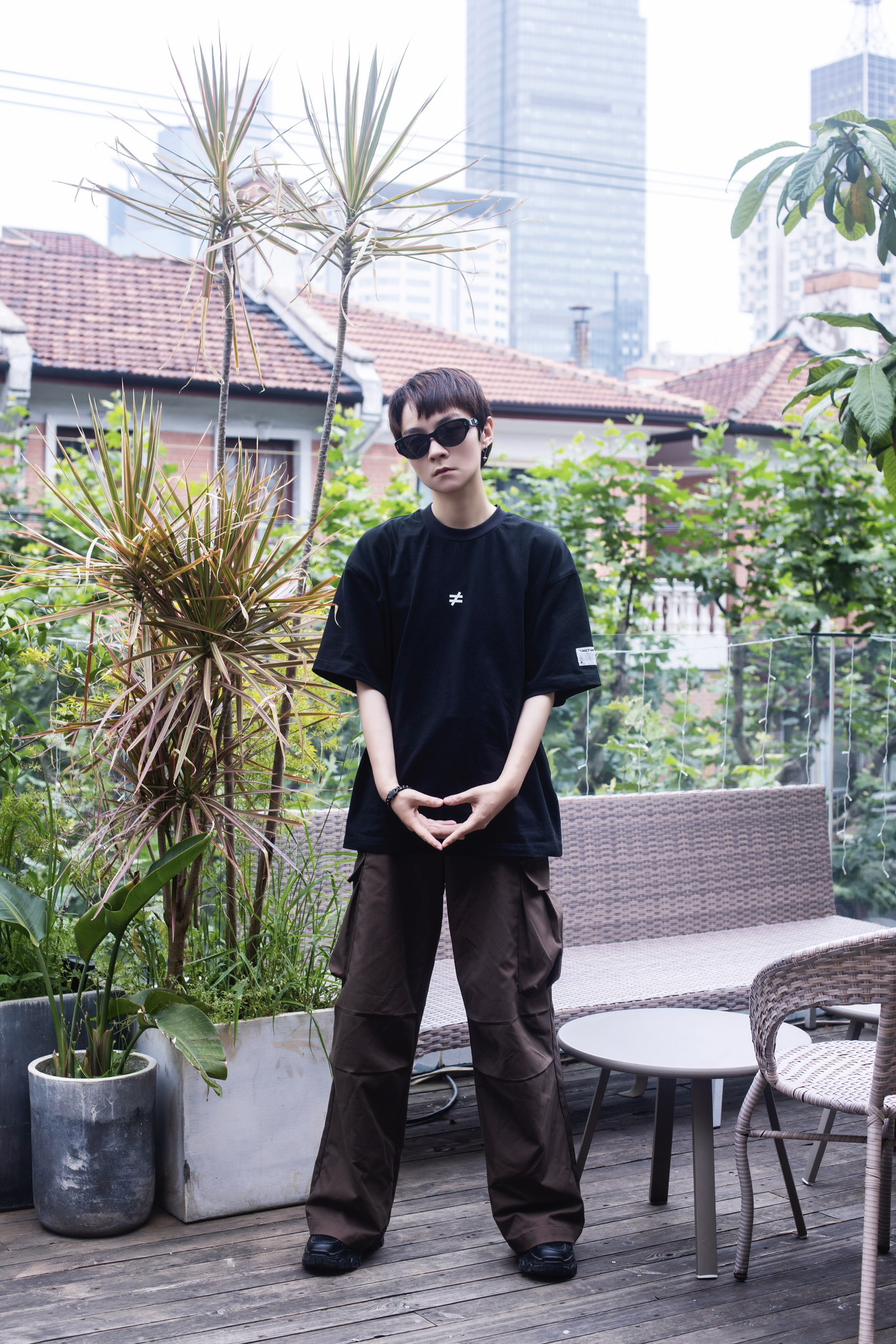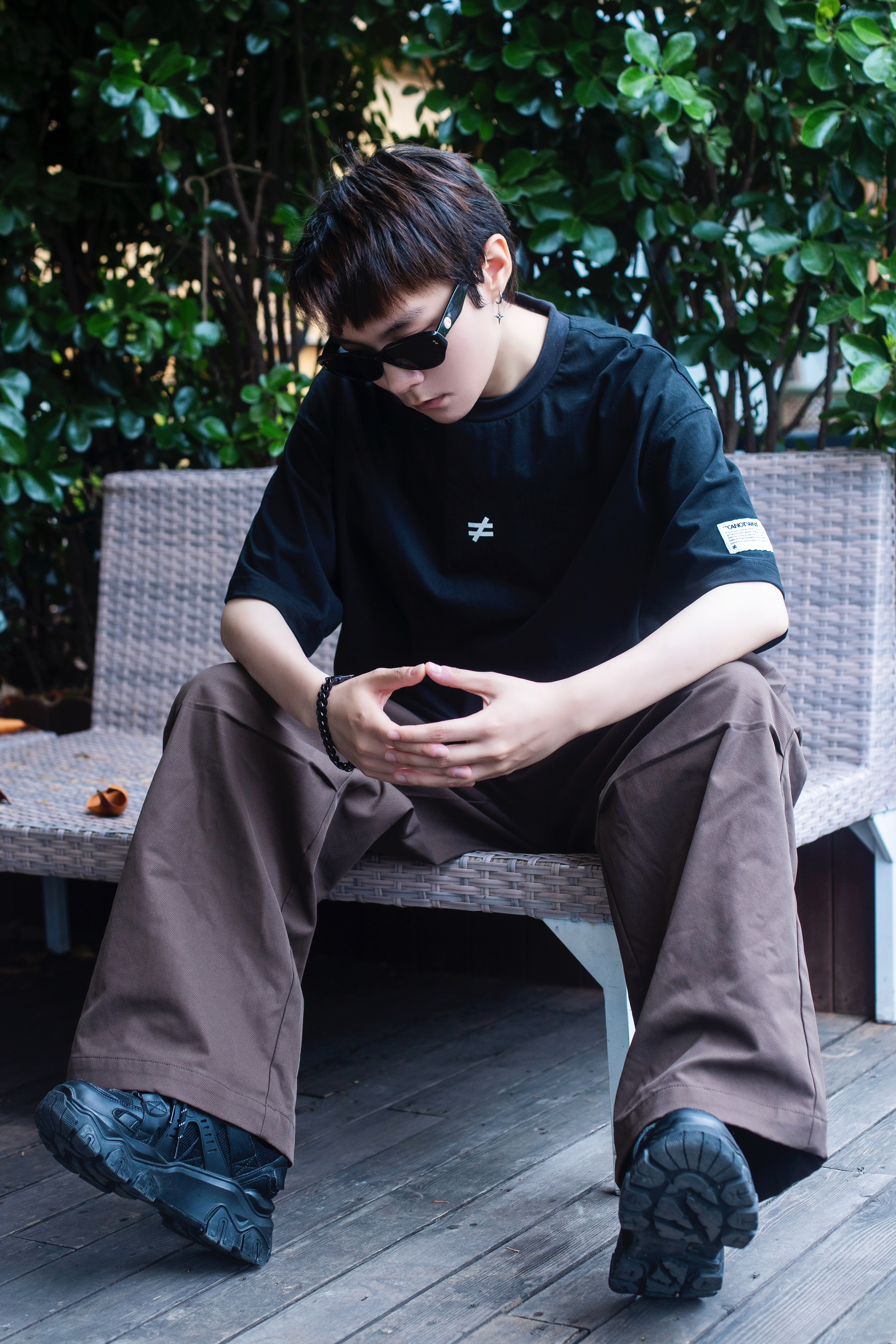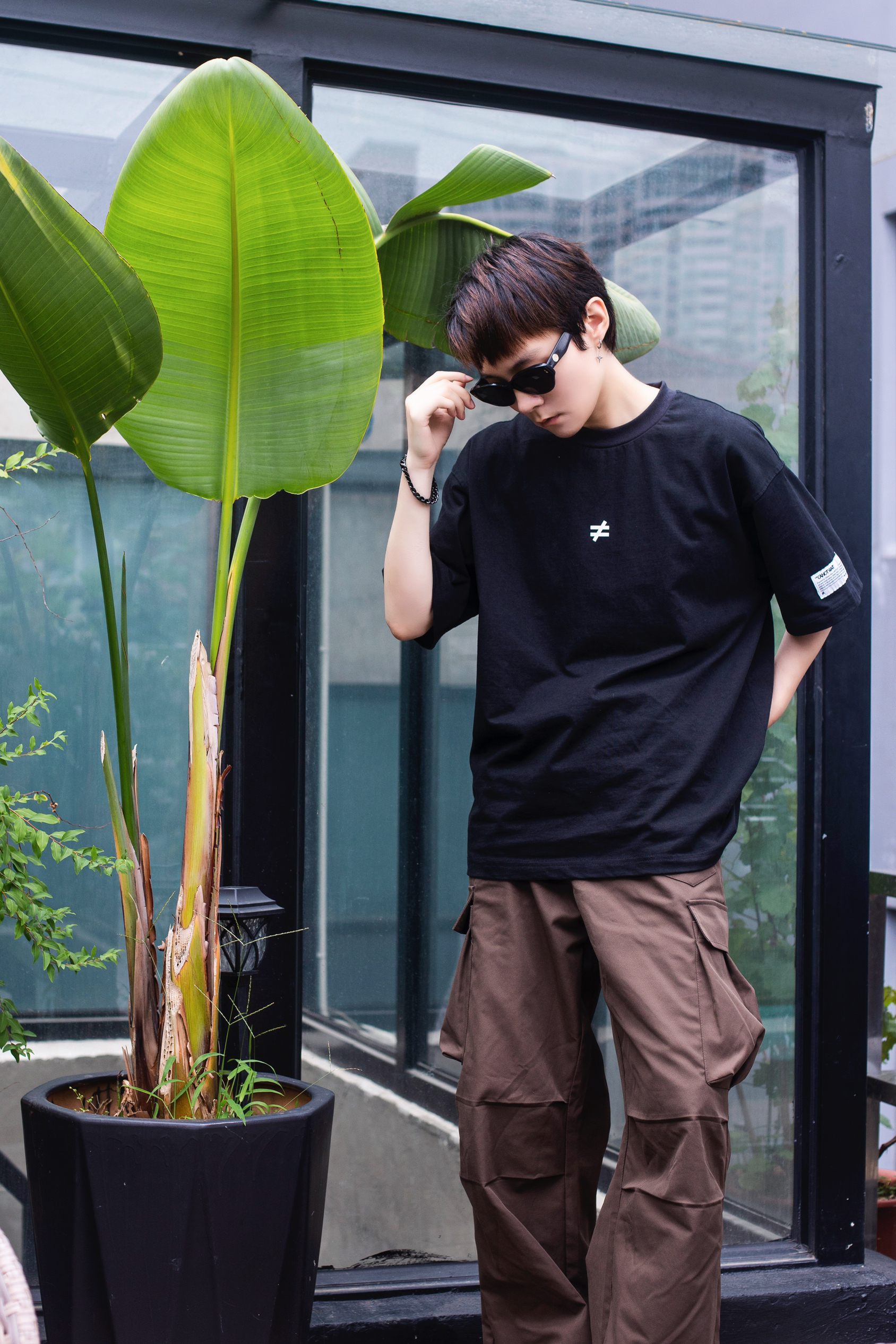 夏日炎炎 好看又松弛感的穿搭真的很重要 分享一套简约时髦的无性别穿搭 穿搭指南: 上身一件黑色短袖T恤 宽松oversize的版型 视觉上就很chill 后背玫瑰字母印花 时髦中藏着浪漫 下身一条棕色休闲工装裤 大口袋和阔腿设计 很显身型和高级感 搭配一双黑色休闲鞋 首尾呼应 这一套让你感受自由和浪漫