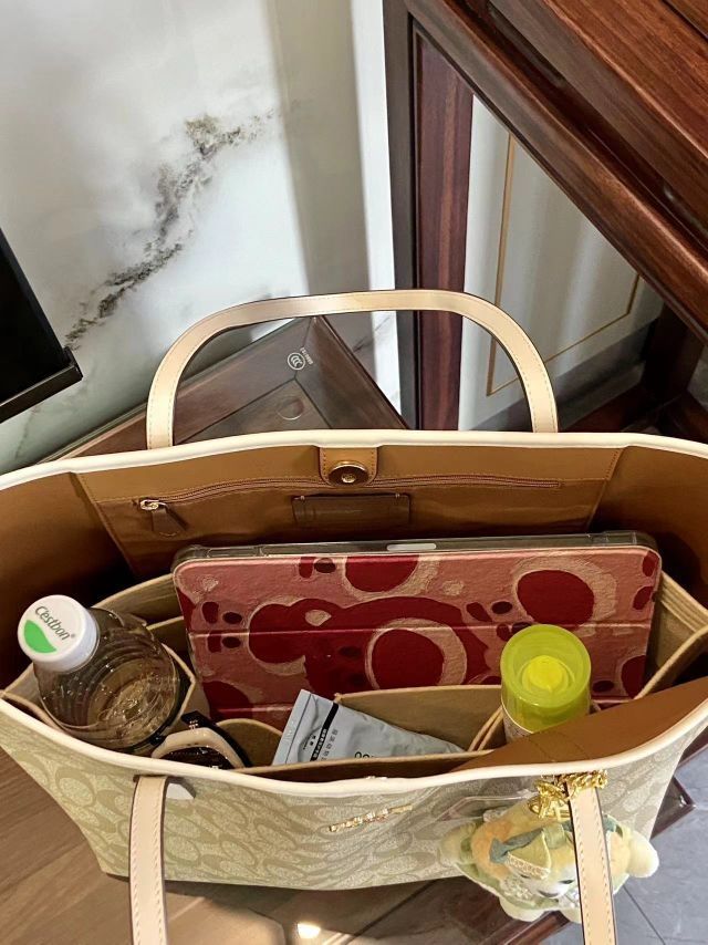 谁懂啊,coach city33包包容量超大 很适合背出门旅行,但是不放内胆实在又塌又空 做了好久的功课,包包终于不塌了 更加立体有型咯😎 入手了包包的内胆配件以及肩托 真的!早买早享受,包包变得整洁有序 不仅看起来更精致了 而且内胆包很多小隔层,更好分类了 奢护匠心坊的配件简直不要太实用!