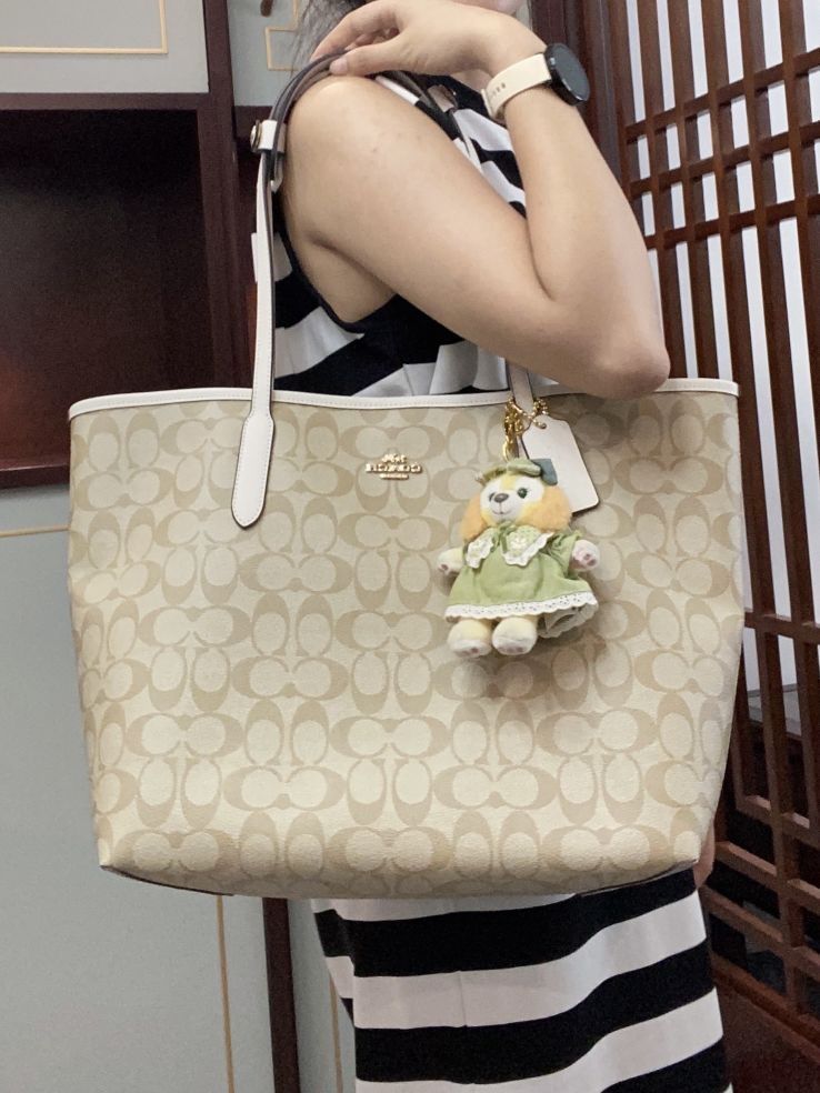 本篇笔记关联了Coach City Tote 33系列 大号 大容量PVC老花敞口撞色涂层帆布配皮按扣开合托特单肩手提包 米色粉笔白 等商品,为用户提供真实的使用体验和购买参考。