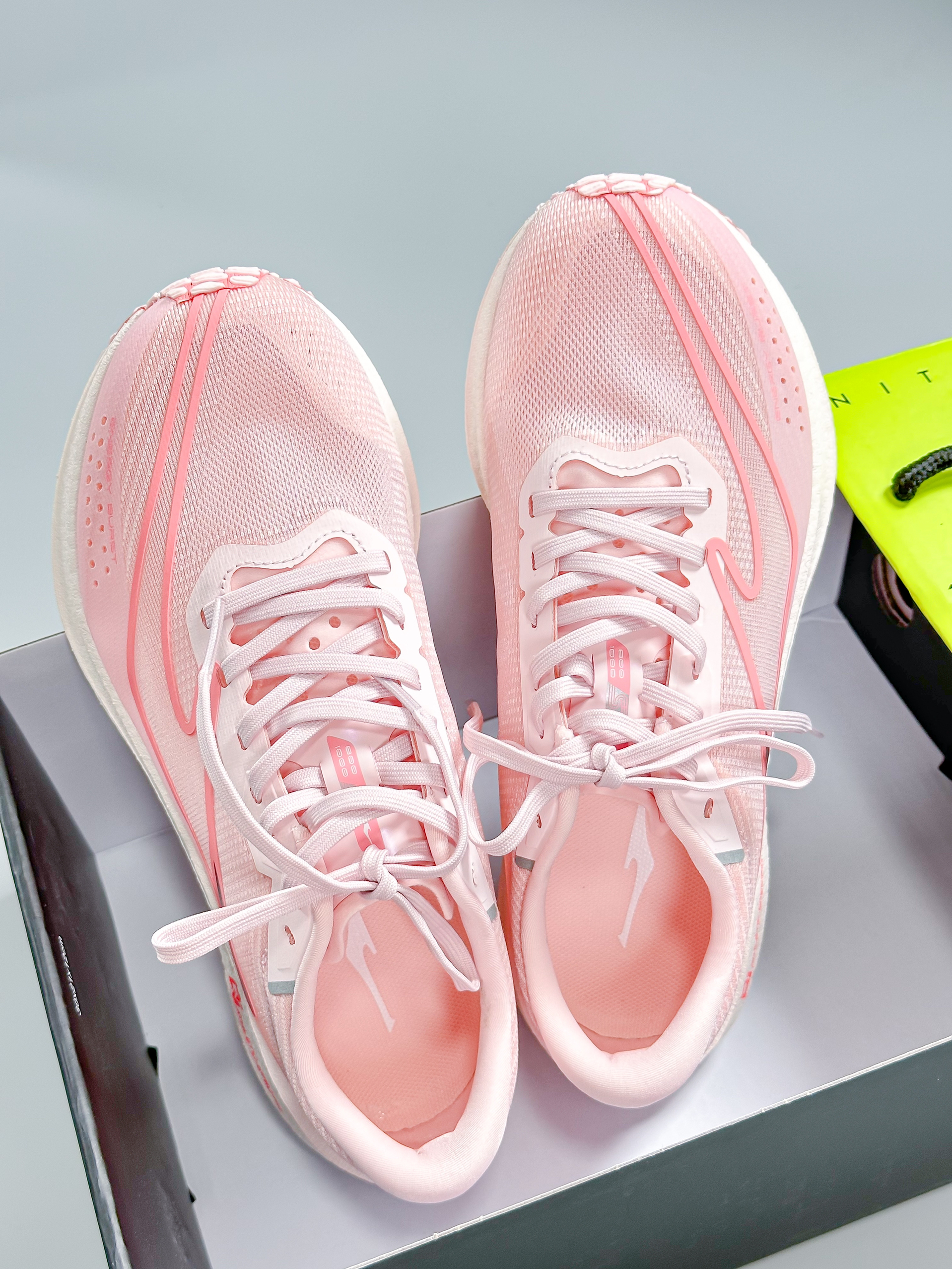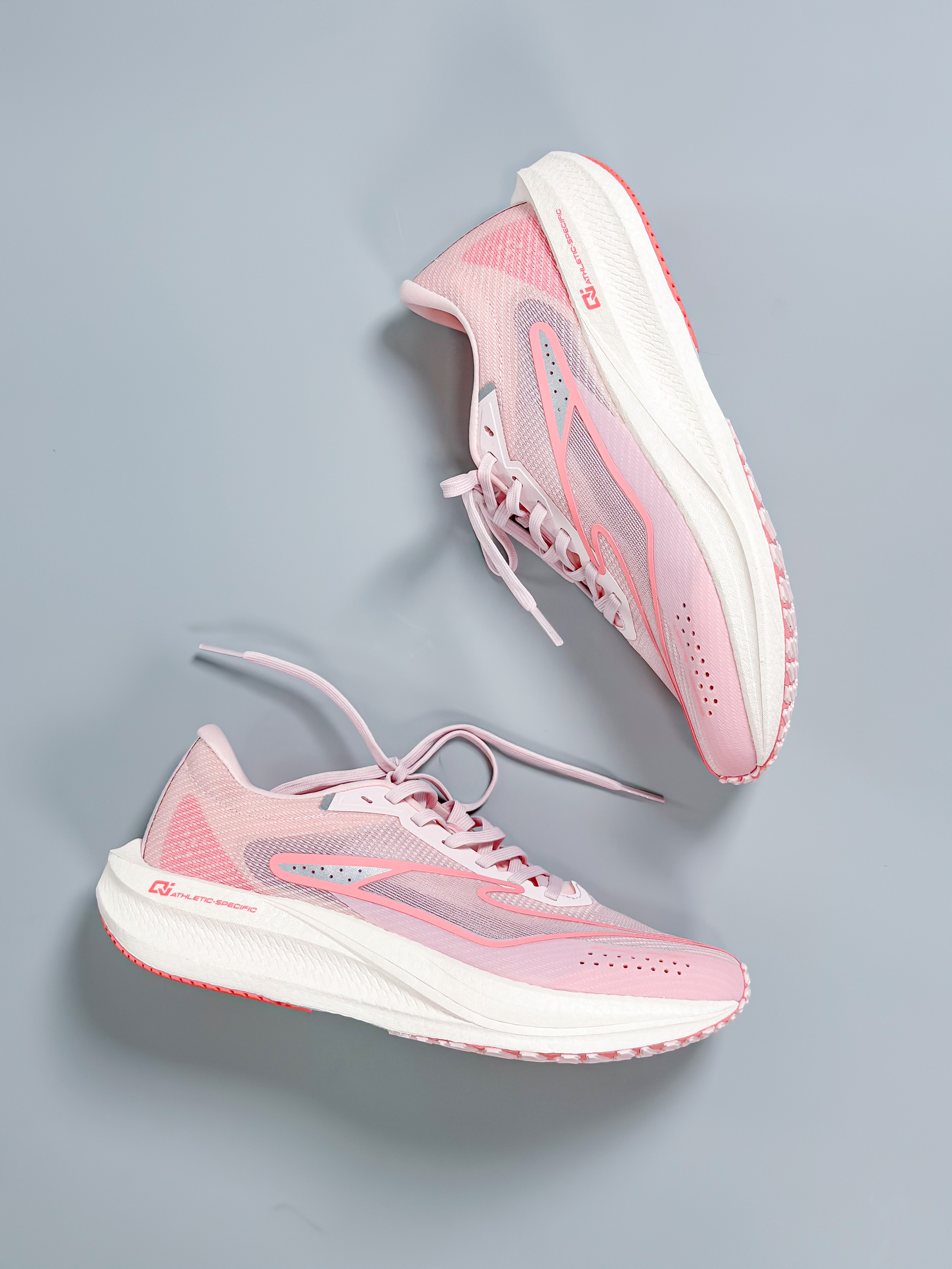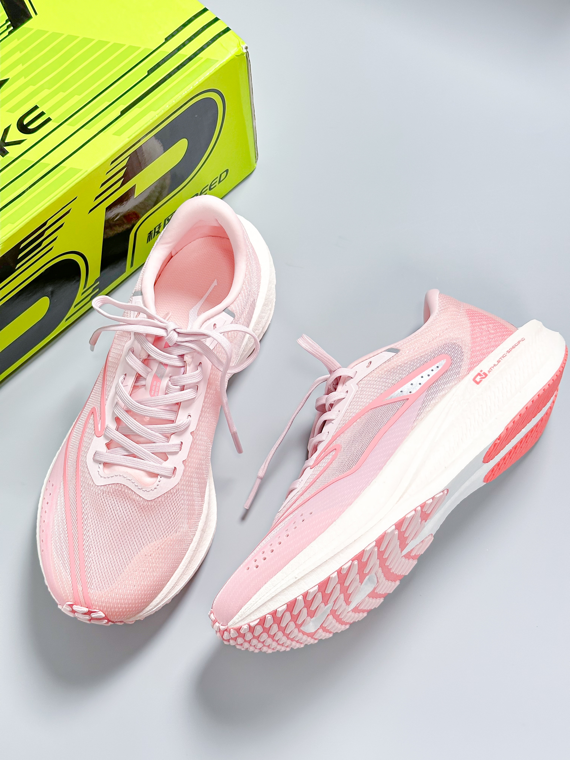 啊啊啊,尊滴一眼爱上这双山茶粉配色跑鞋🌸 网纱鞋面hin薄hin透气,夏天跑步也不怕闷🦶 上jio非常轻盈软弹,回弹效果杠杠滴👍 夏天穿出门运动,尊滴亮眼敲喜欢🥰
